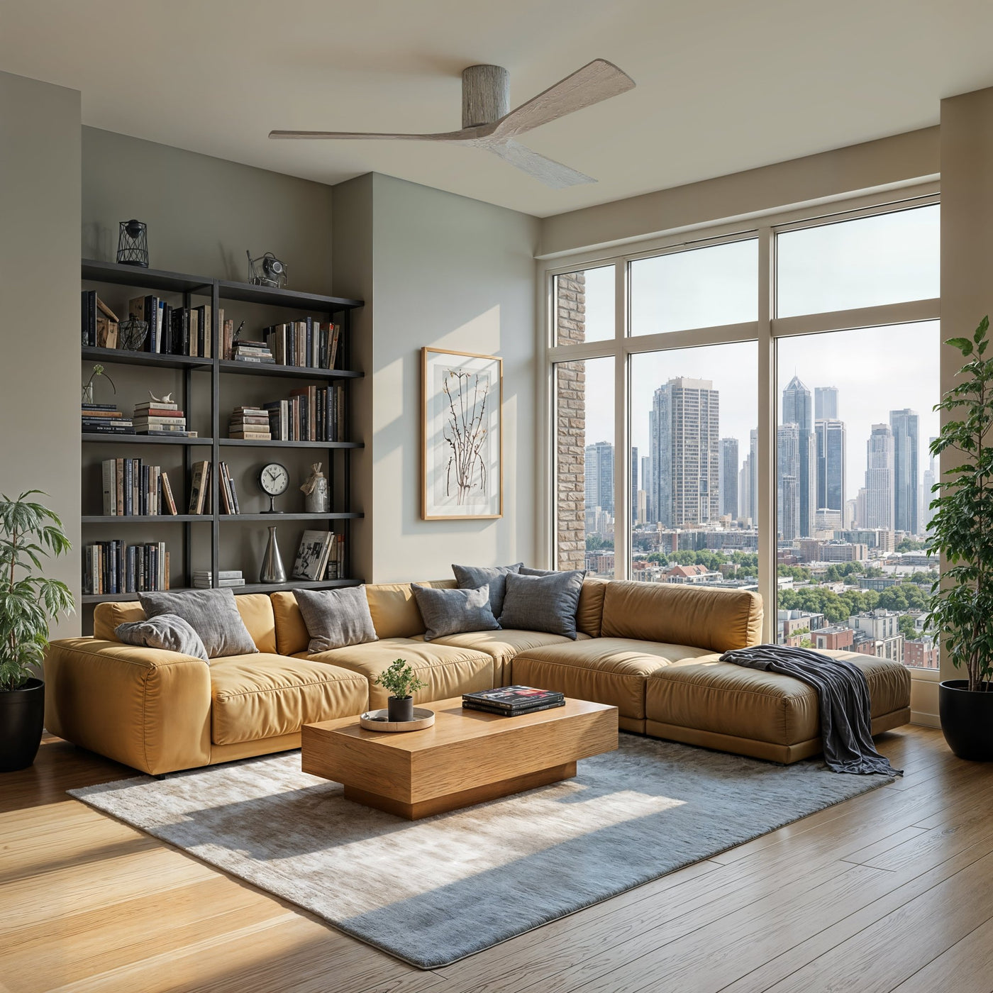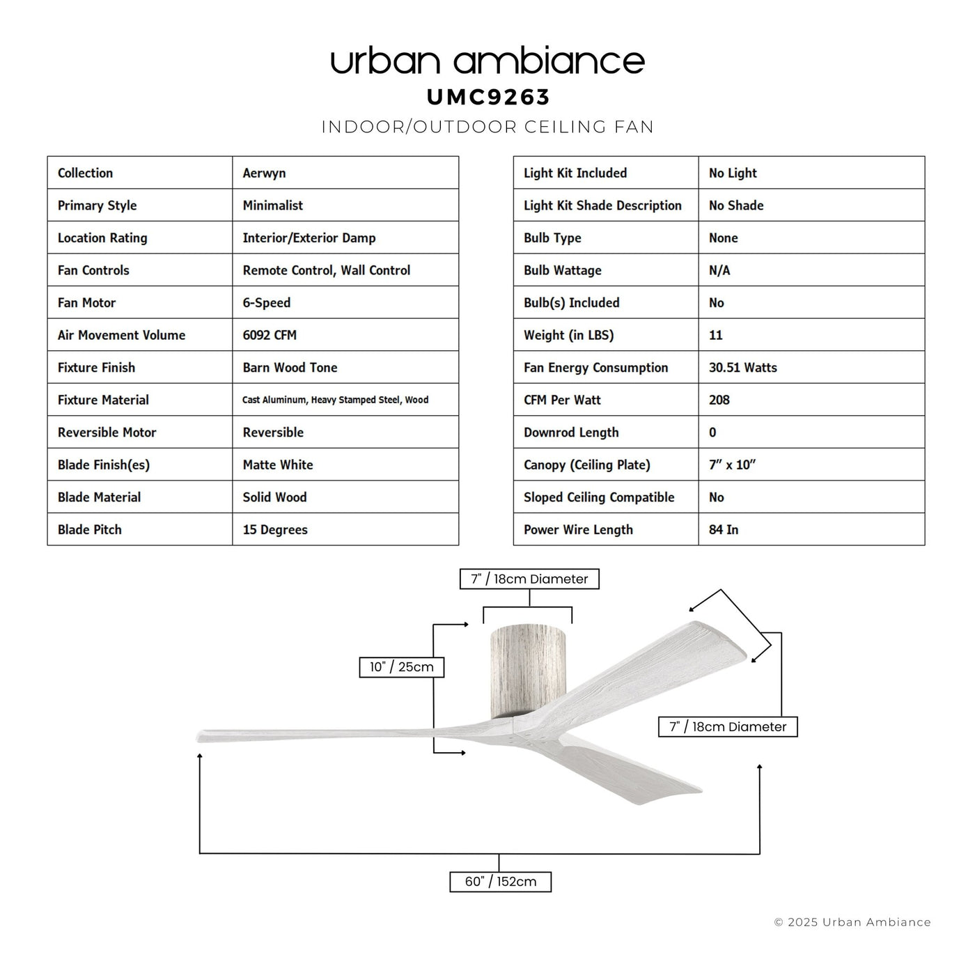UMC9263 Minimalist Indoor/Outdoor Ceiling Fan, 10" H x 60" W x 60" D, Barn Wood Tone Finish, Aerwyn Collection
