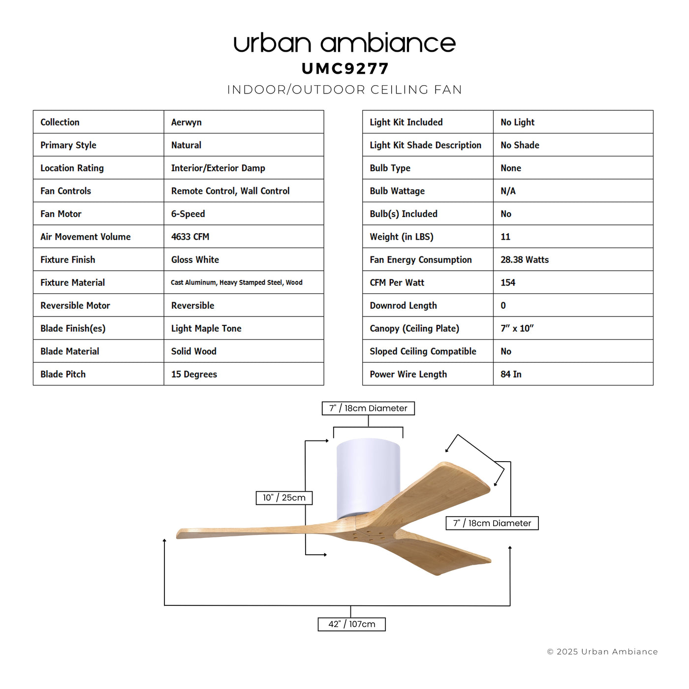 UMC9277 Natural Indoor/Outdoor Ceiling Fan, 10" H x 42" W x 42" D, Gloss White Finish, Aerwyn Collection