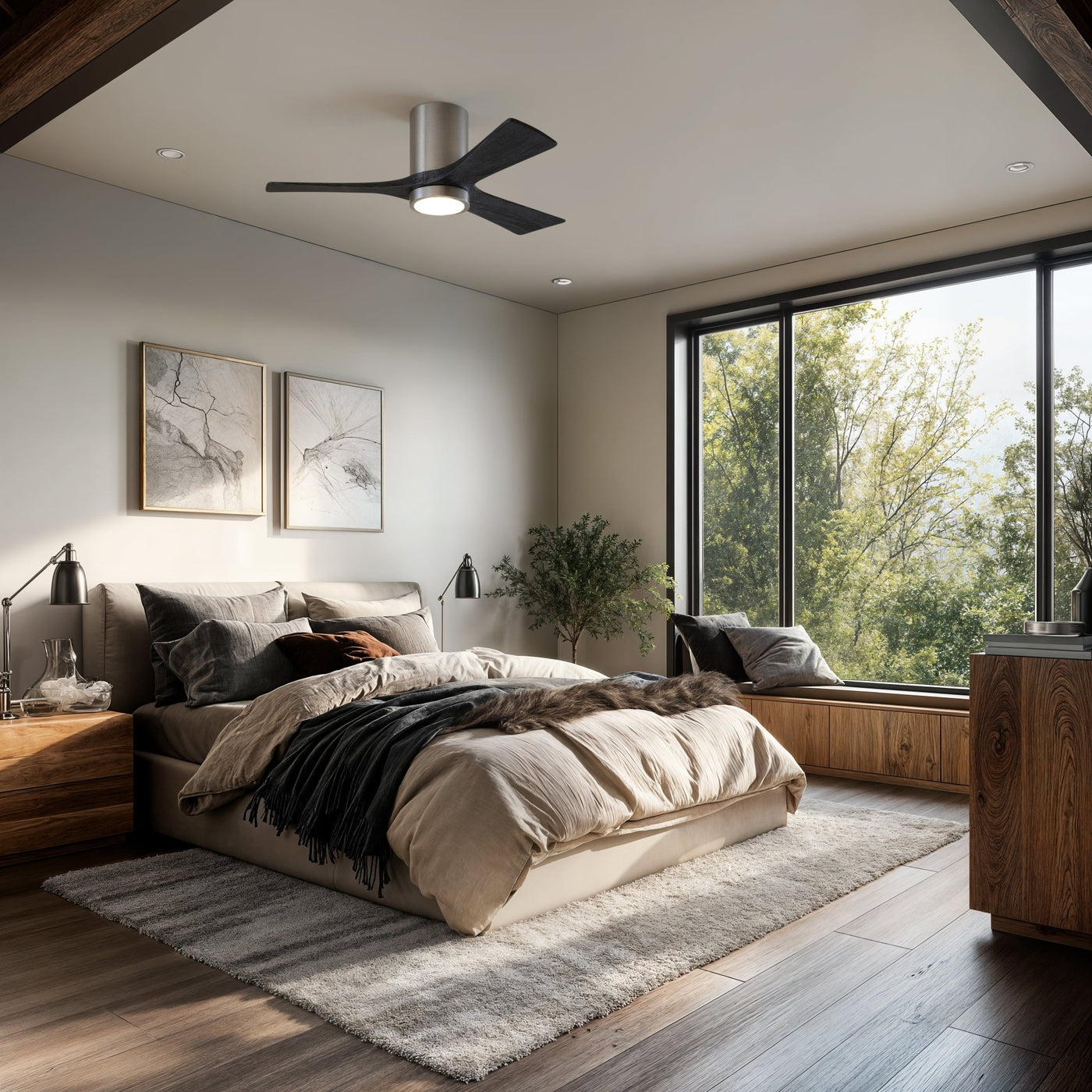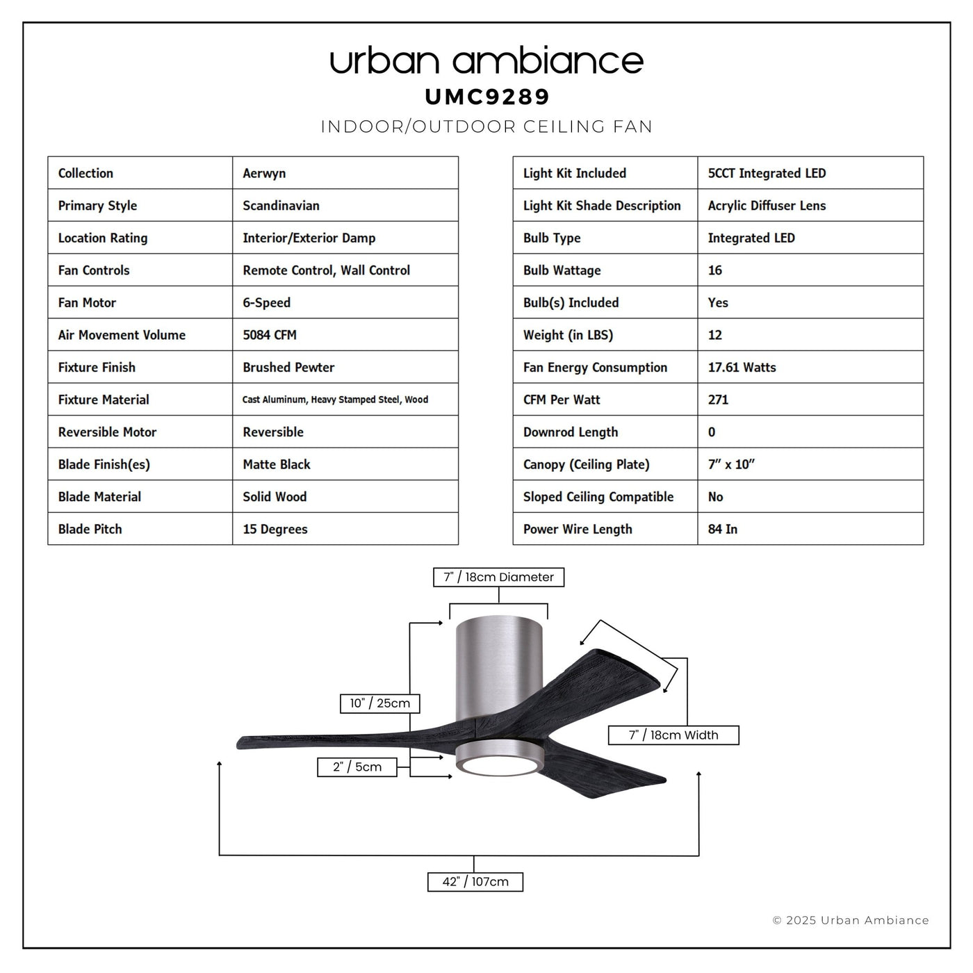 UMC9289 Scandinavian Indoor/Outdoor Ceiling Fan, 12" H x 42" W x 42" D, Brushed Pewter Finish, Aerwyn Collection