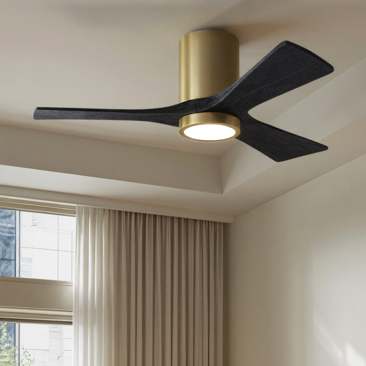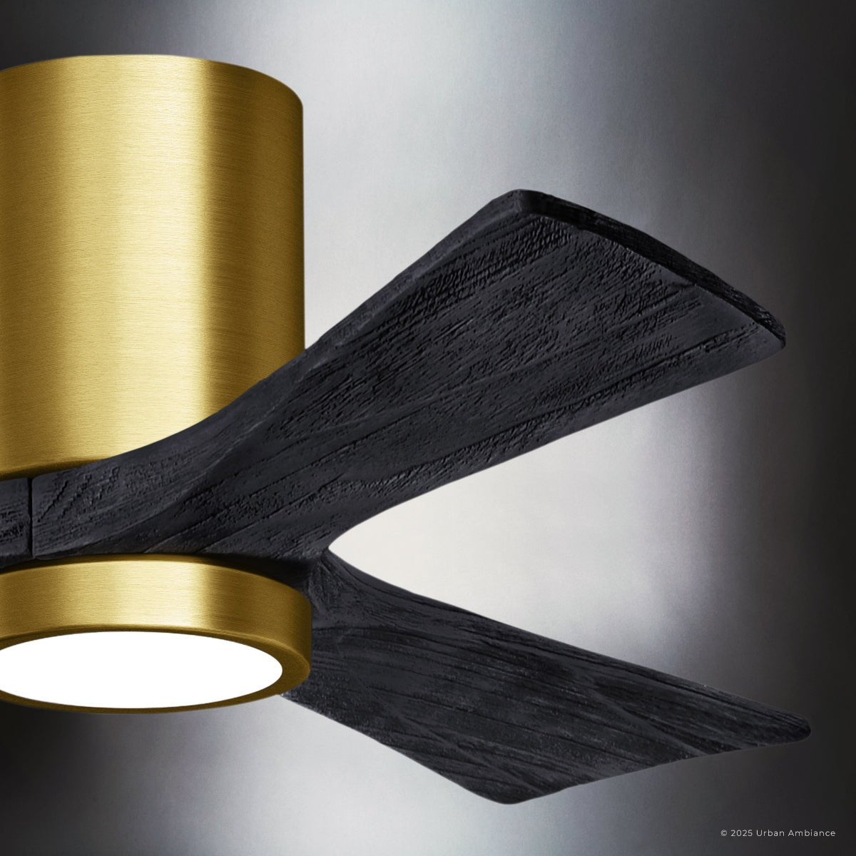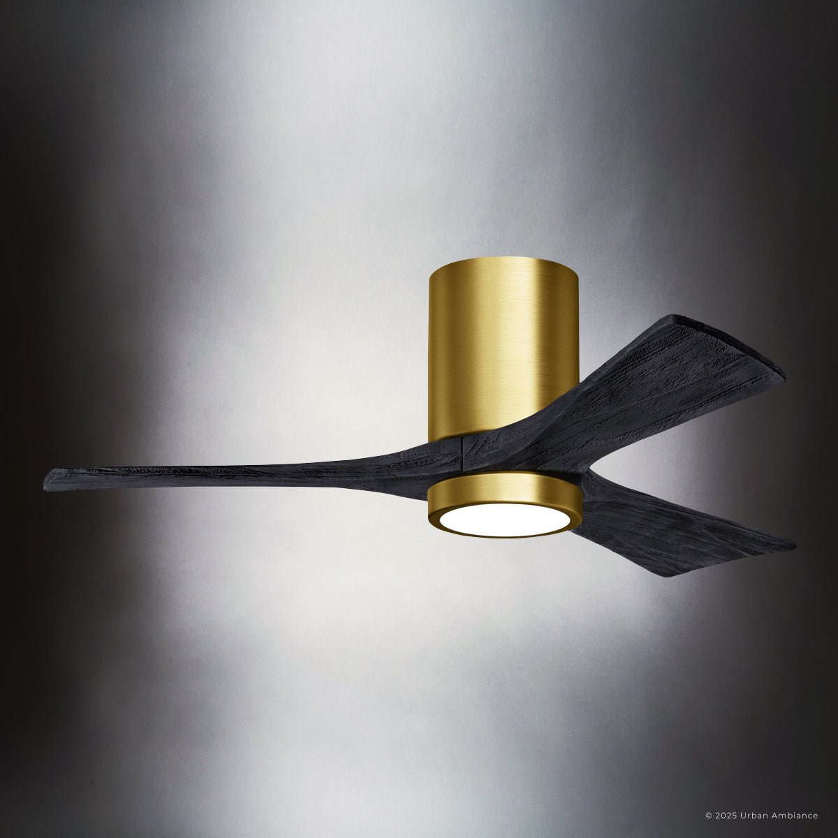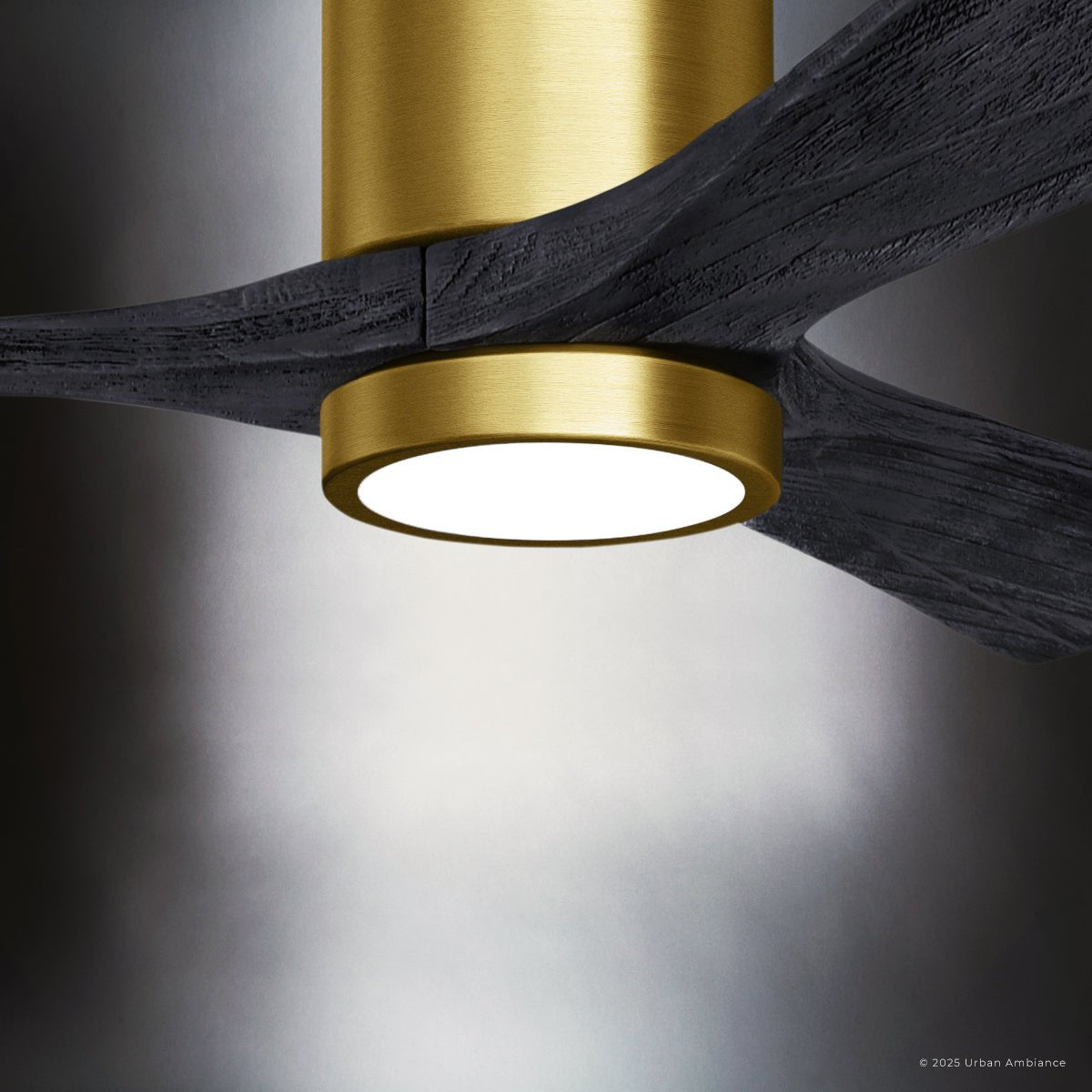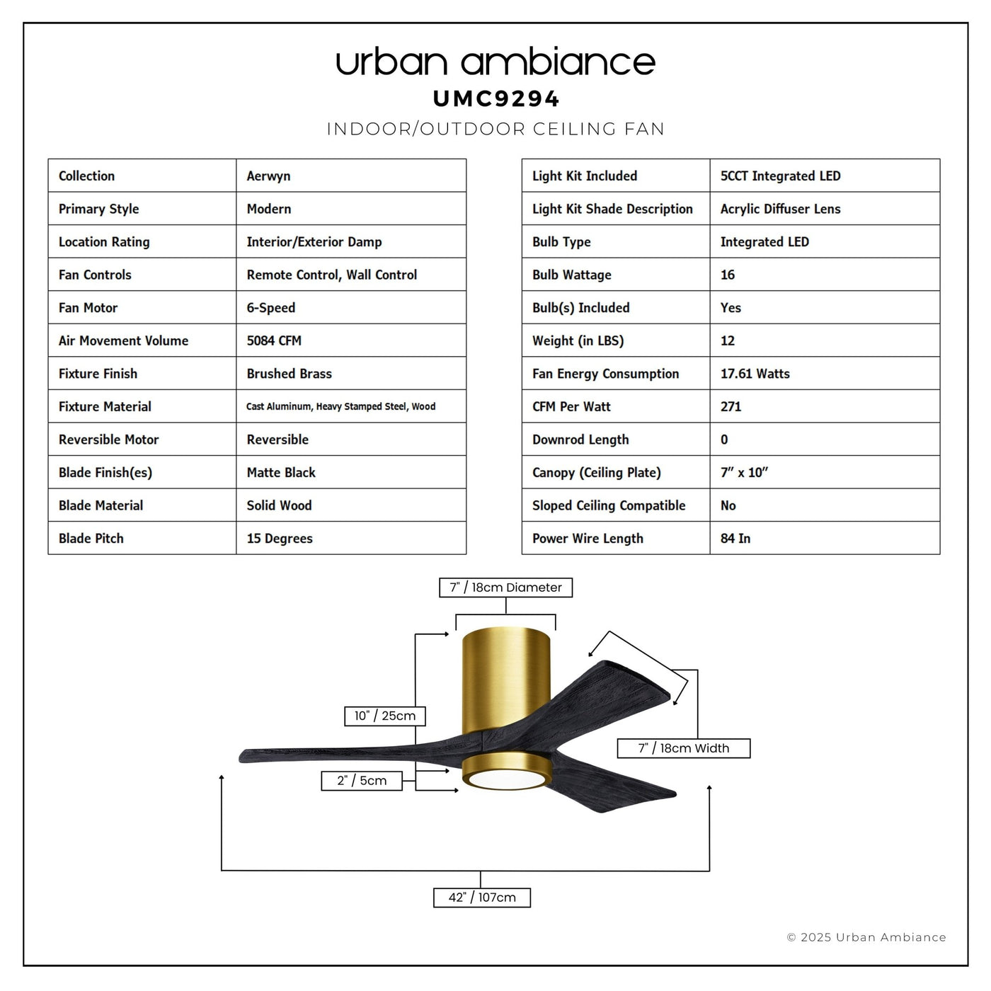 UMC9294 Modern Indoor/Outdoor Ceiling Fan, 12" H x 42" W x 42" D, Brushed Brass Finish, Aerwyn Collection
