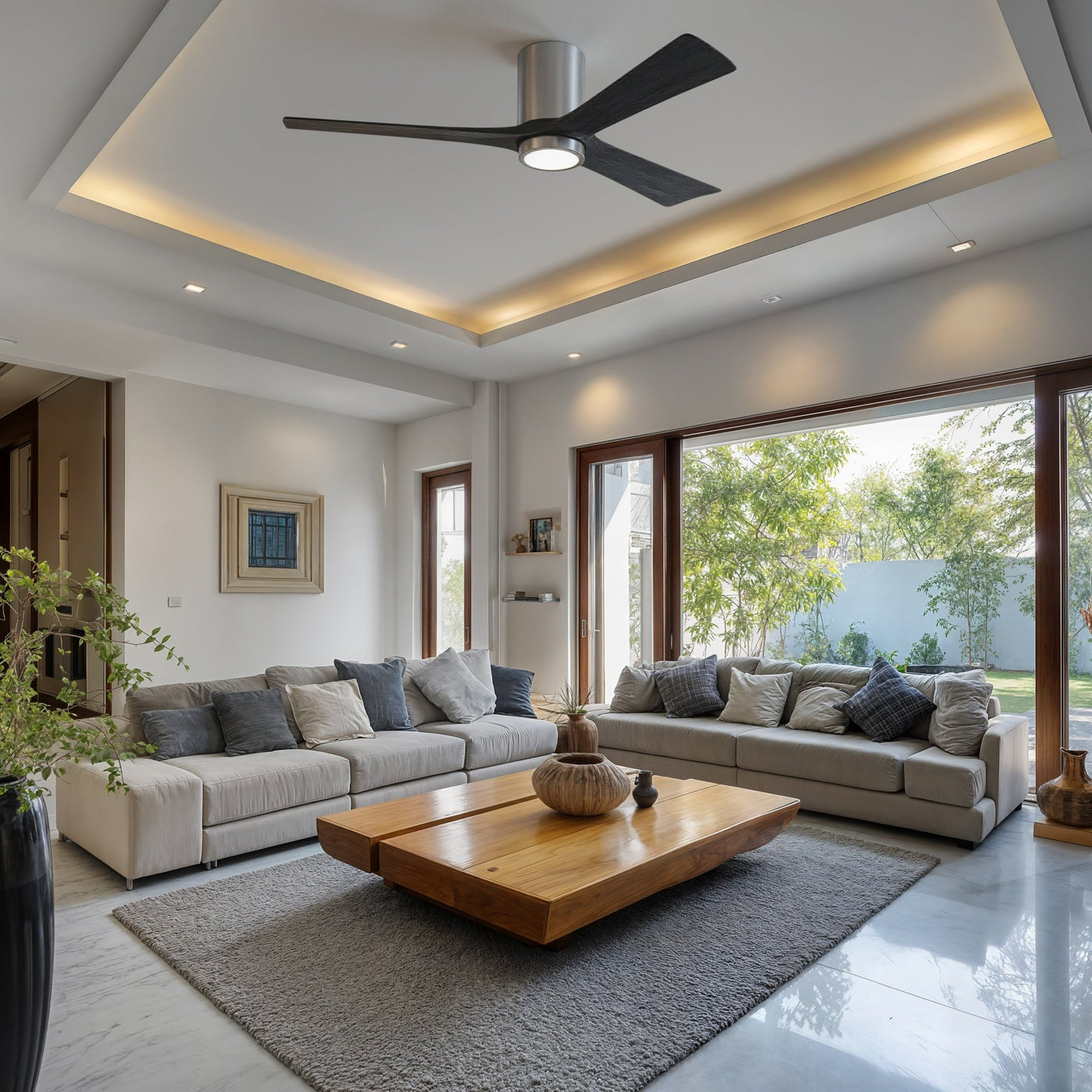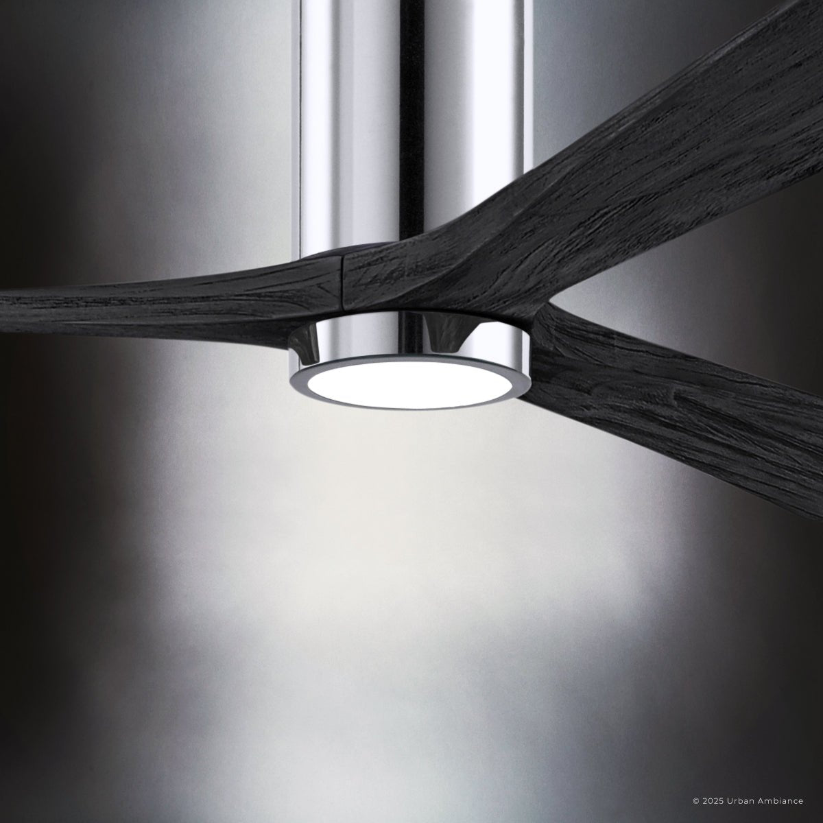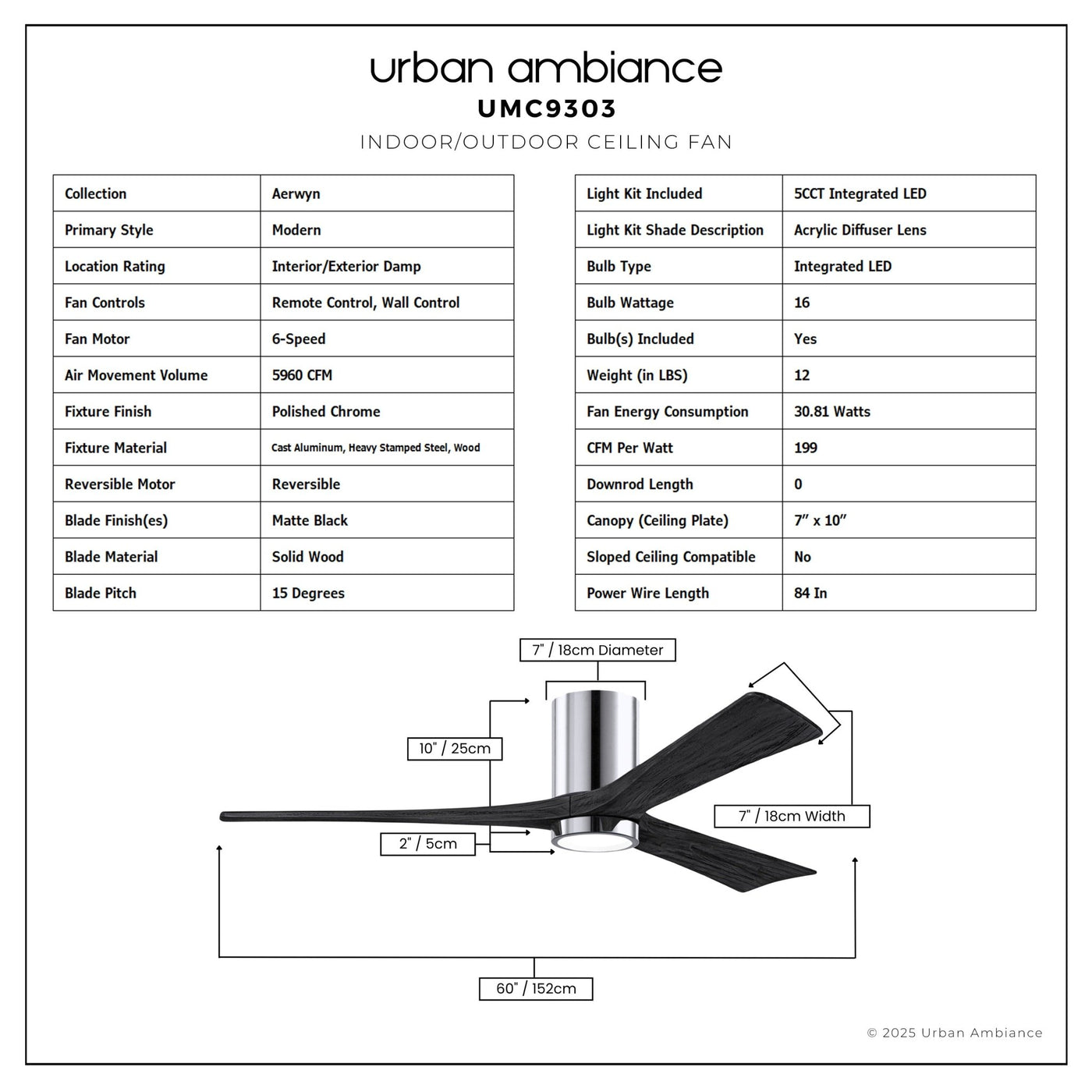 UMC9303 Modern Indoor/Outdoor Ceiling Fan, 12" H x 60" W x 60" D, Polished Chrome Finish, Aerwyn Collection