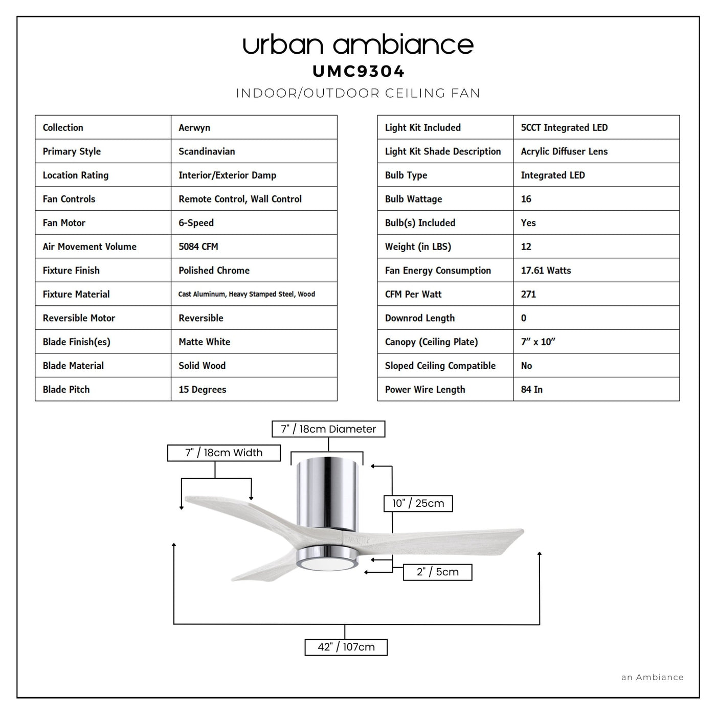 UMC9304 Scandinavian Indoor/Outdoor Ceiling Fan, 12" H x 42" W x 42" D, Polished Chrome Finish, Aerwyn Collection
