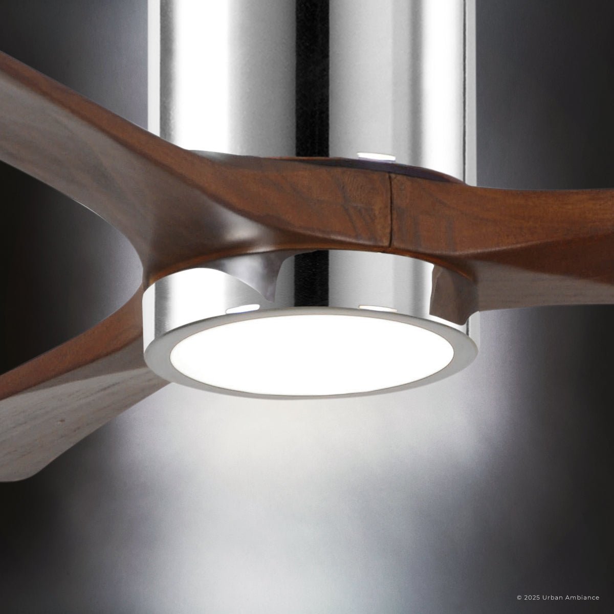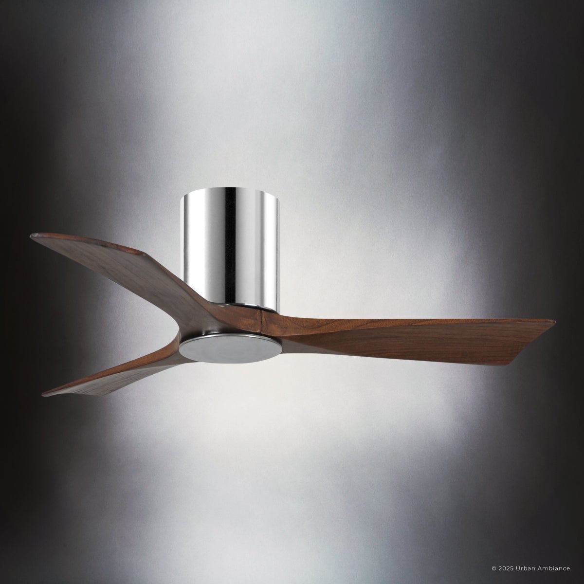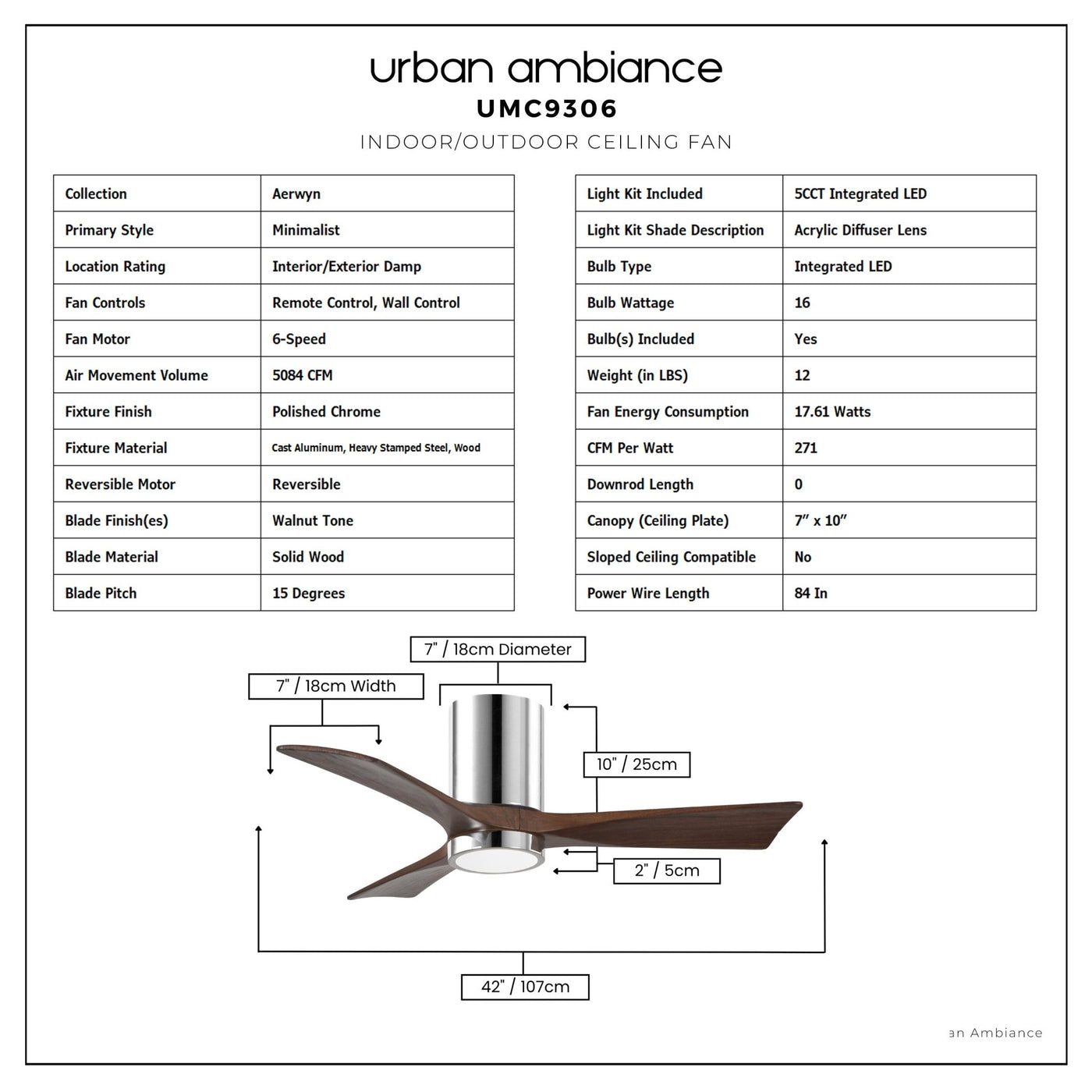UMC9306 Minimalist Indoor/Outdoor Ceiling Fan, 12" H x 42" W x 42" D, Polished Chrome Finish, Aerwyn Collection