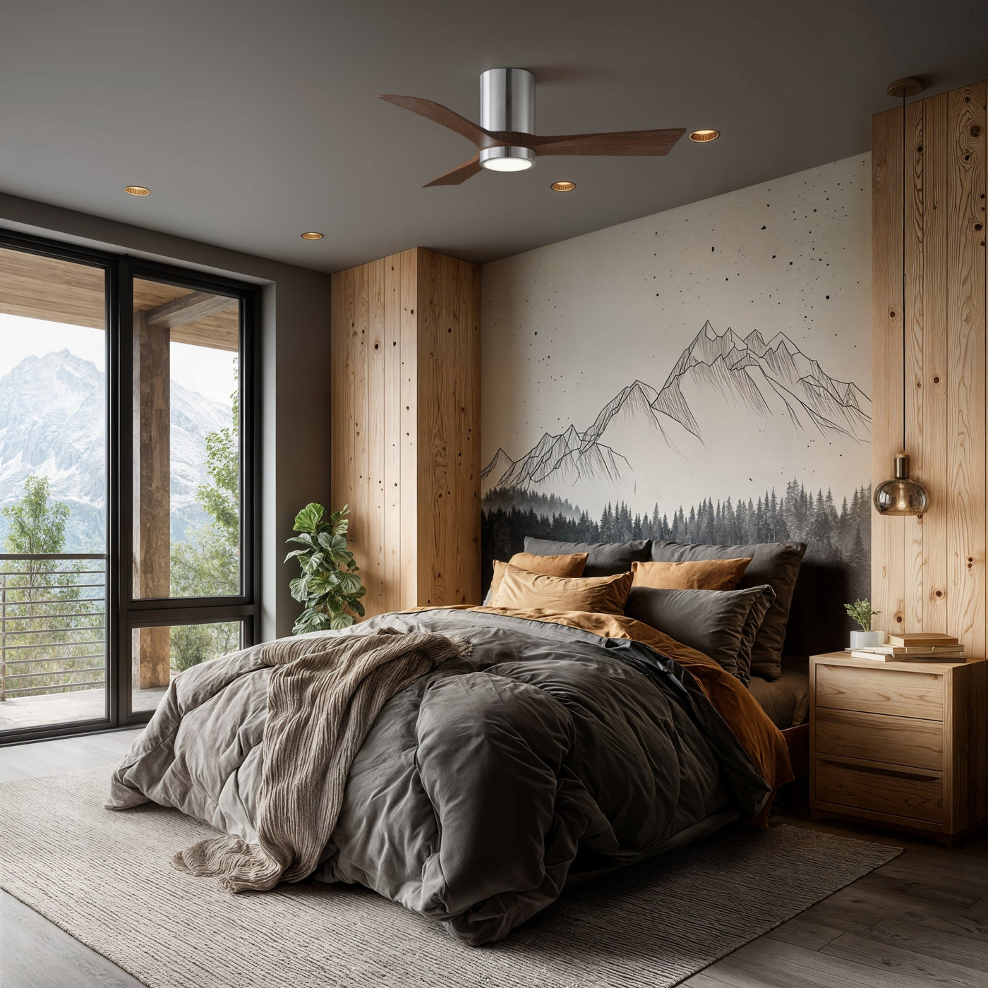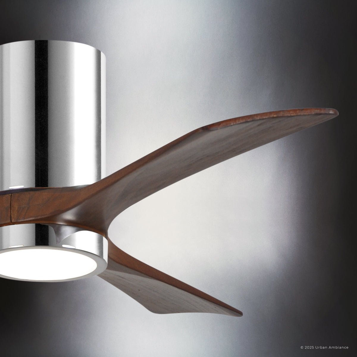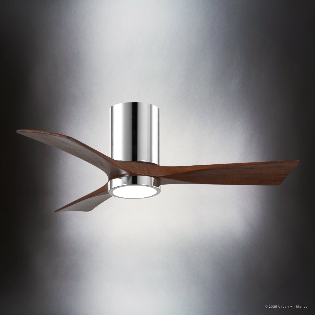 UMC9306 Minimalist Indoor/Outdoor Ceiling Fan, 12" H x 42" W x 42" D, Polished Chrome Finish, Aerwyn Collection