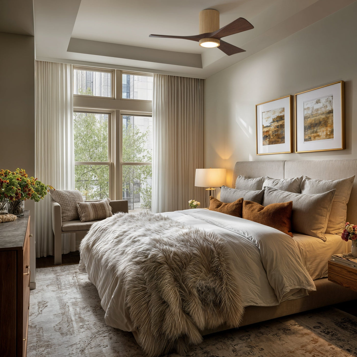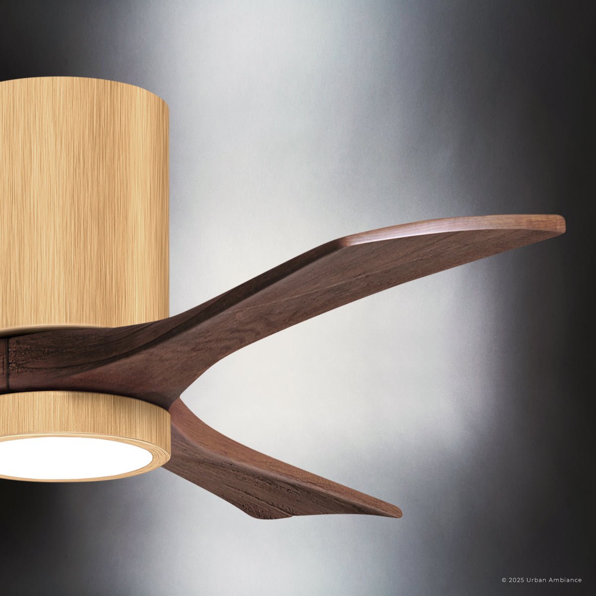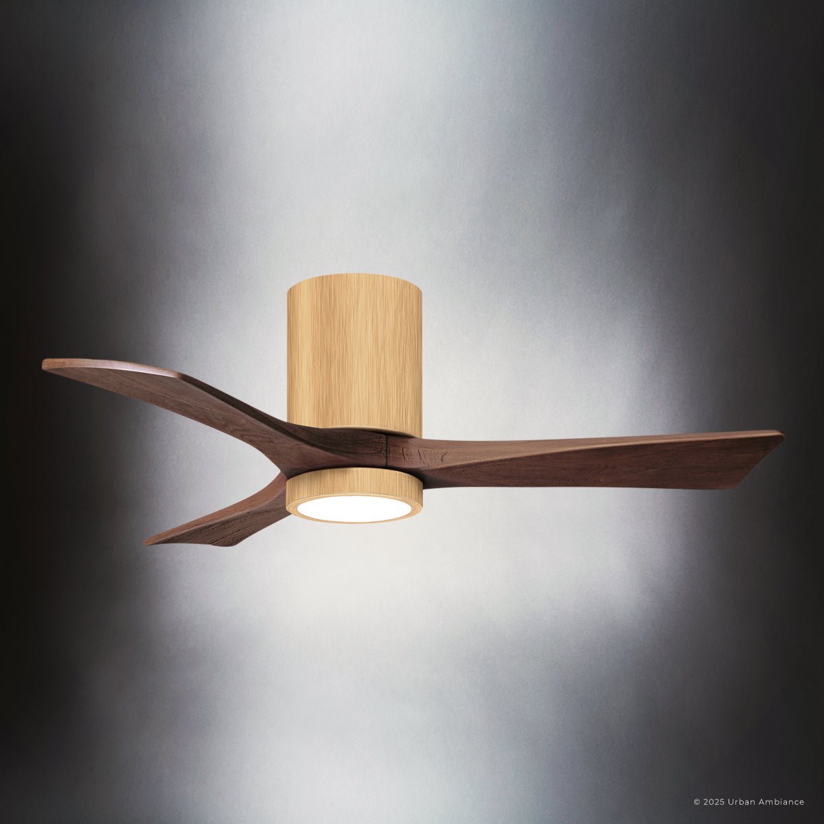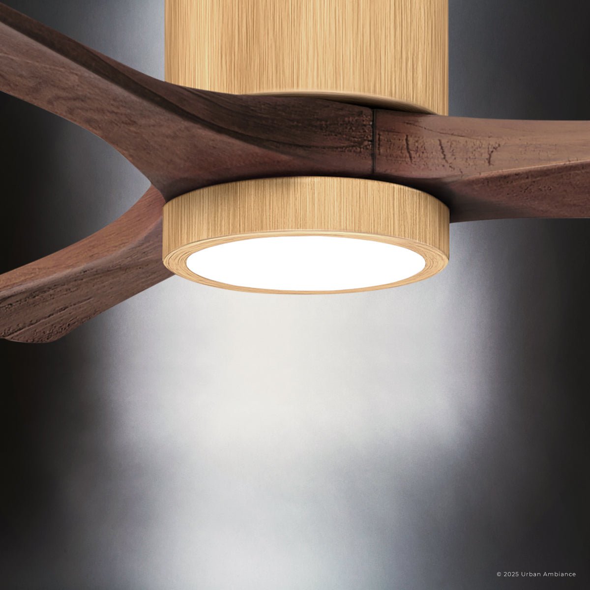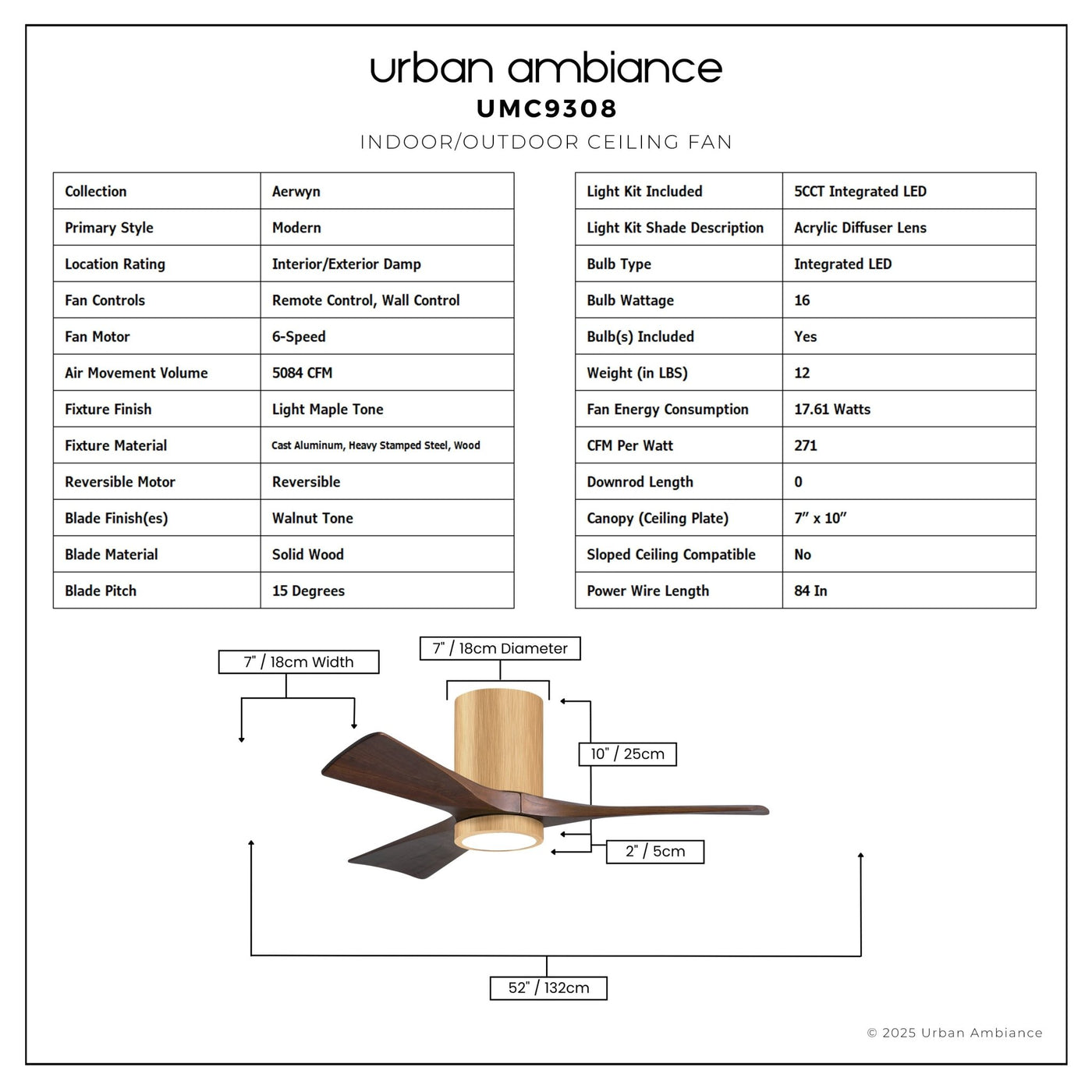 UMC9308 Modern Indoor/Outdoor Ceiling Fan, 12" H x 42" W x 42" D, Light Maple Tone Finish, Aerwyn Collection