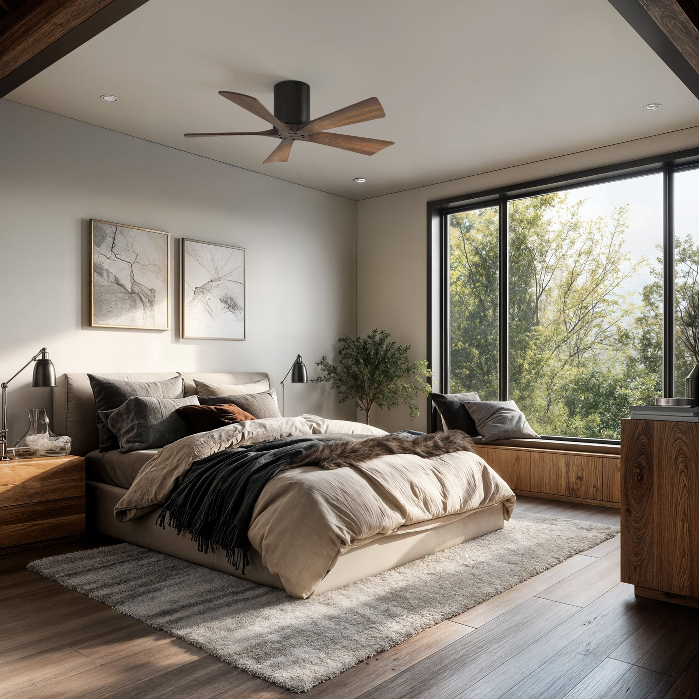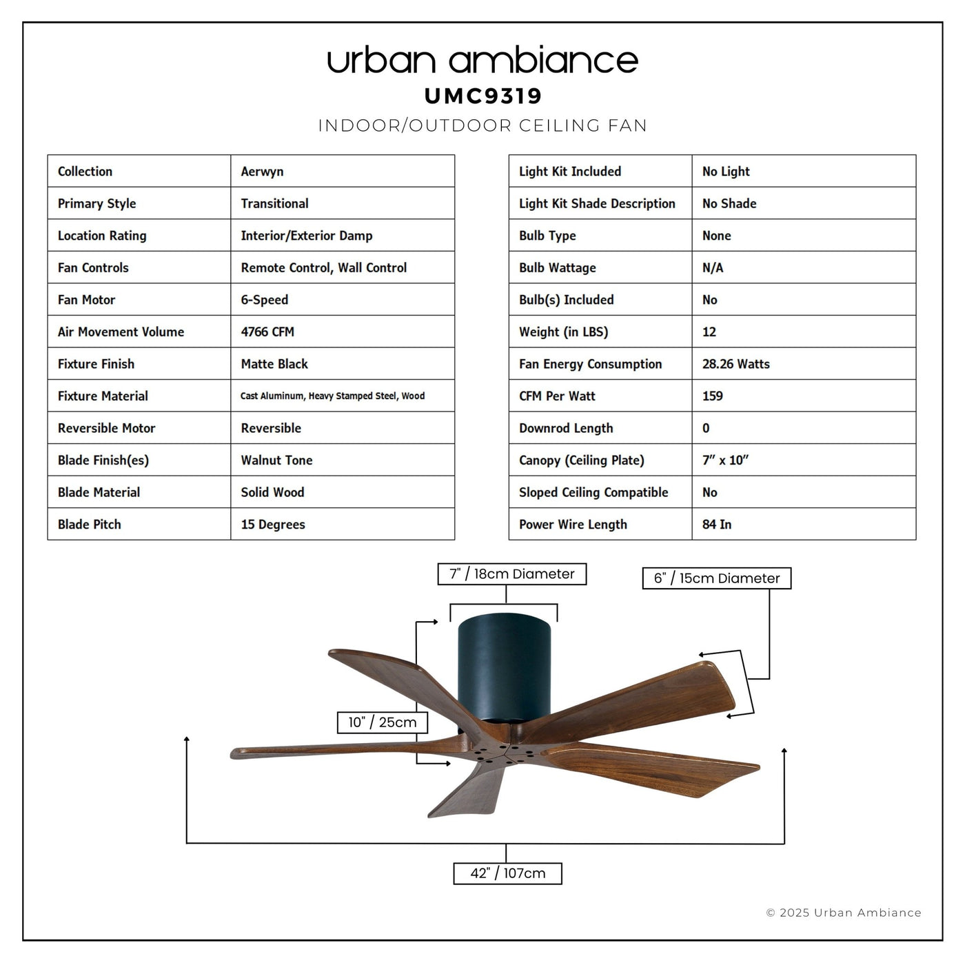 UMC9319 Transitional Indoor/Outdoor Ceiling Fan, 10" H x 42" W x 42" D, Matte Black Finish, Aerwyn Collection