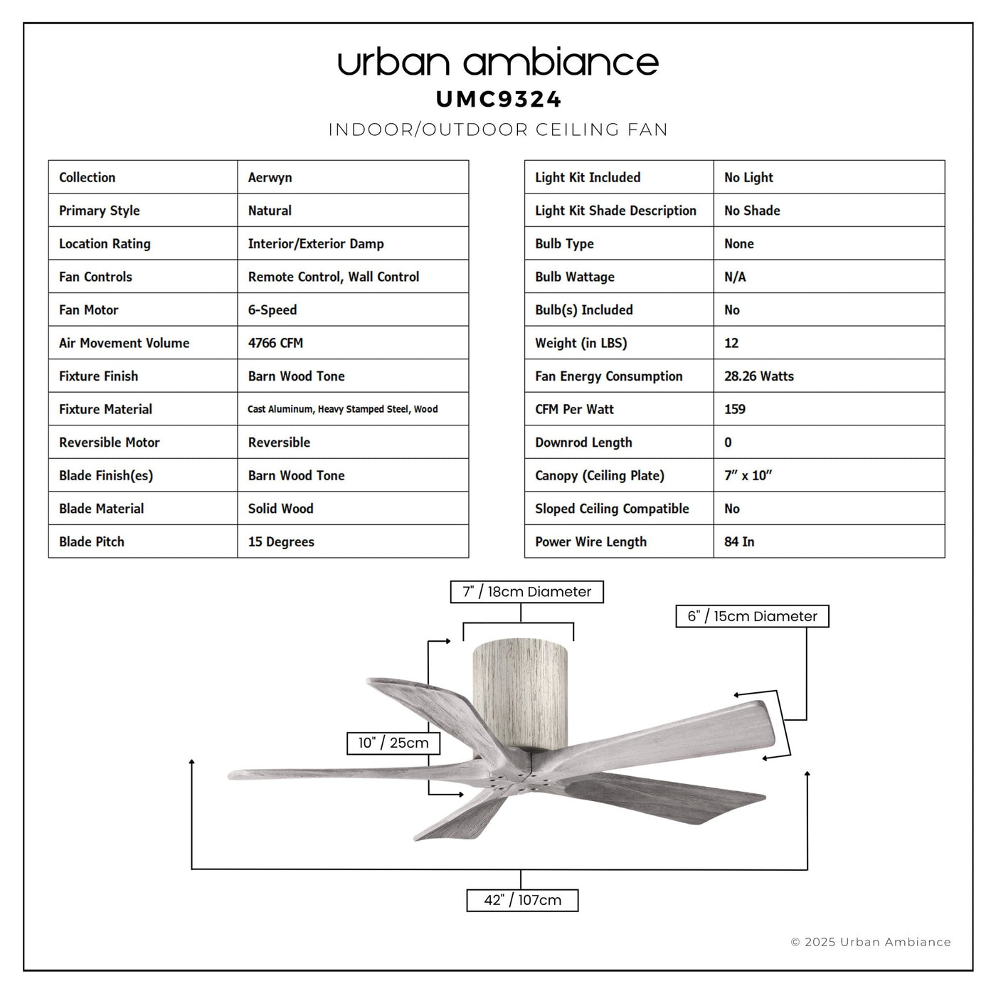 UMC9324 Natural Indoor/Outdoor Ceiling Fan, 10" H x 42" W x 42" D, Barn Wood Tone Finish, Aerwyn Collection