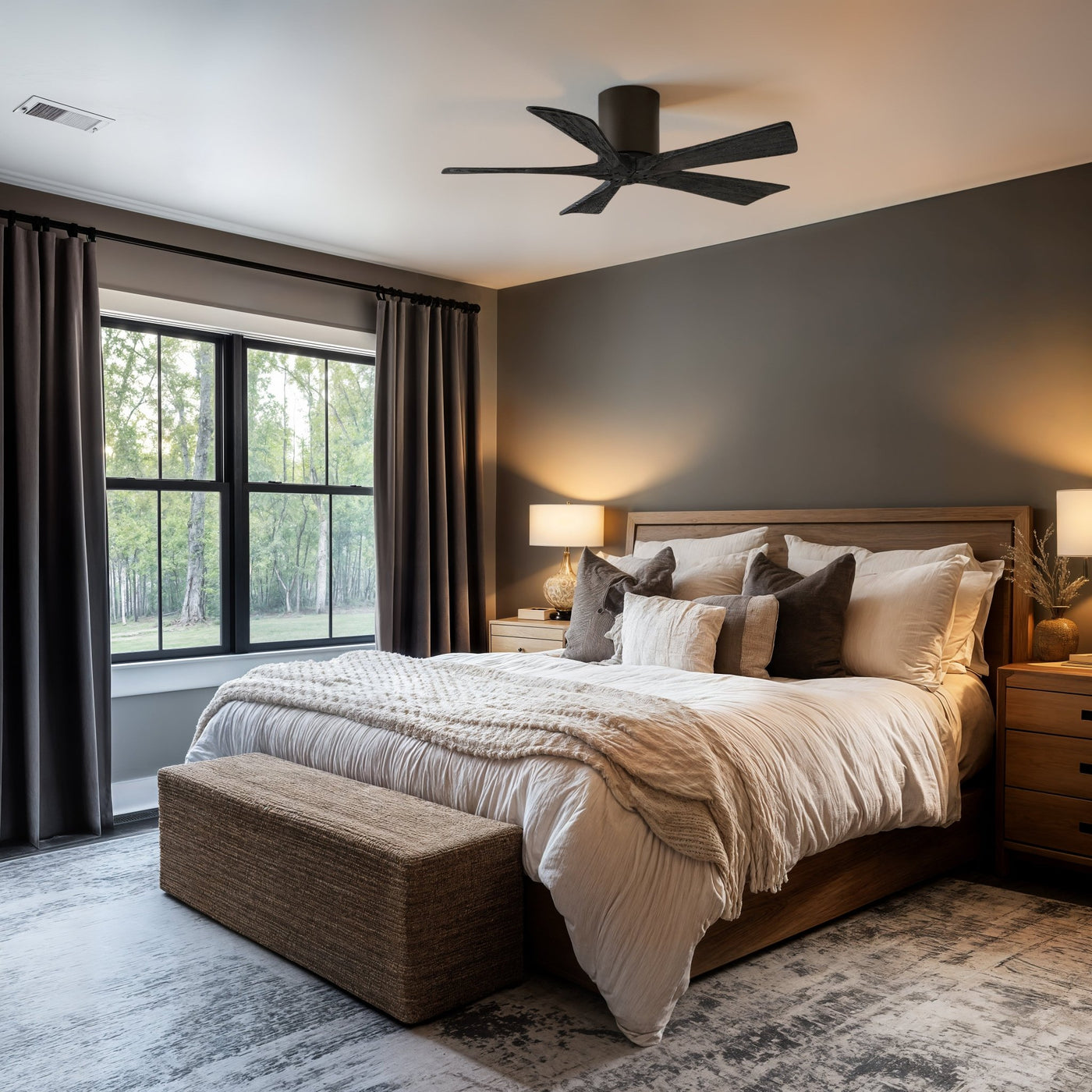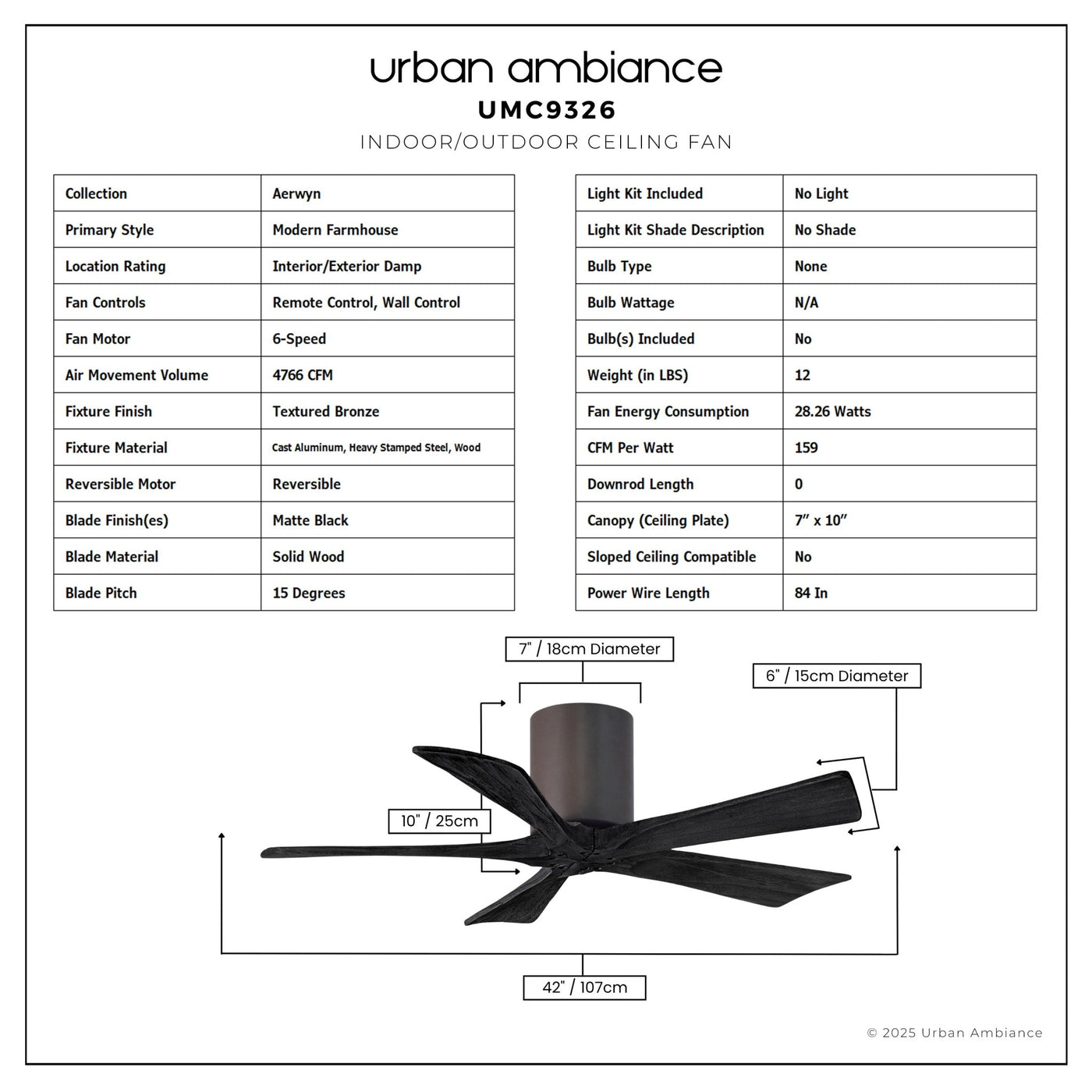 UMC9326 Modern Farmhouse Indoor/Outdoor Ceiling Fan, 10" H x 42" W x 42" D, Textured Bronze Finish, Aerwyn Collection