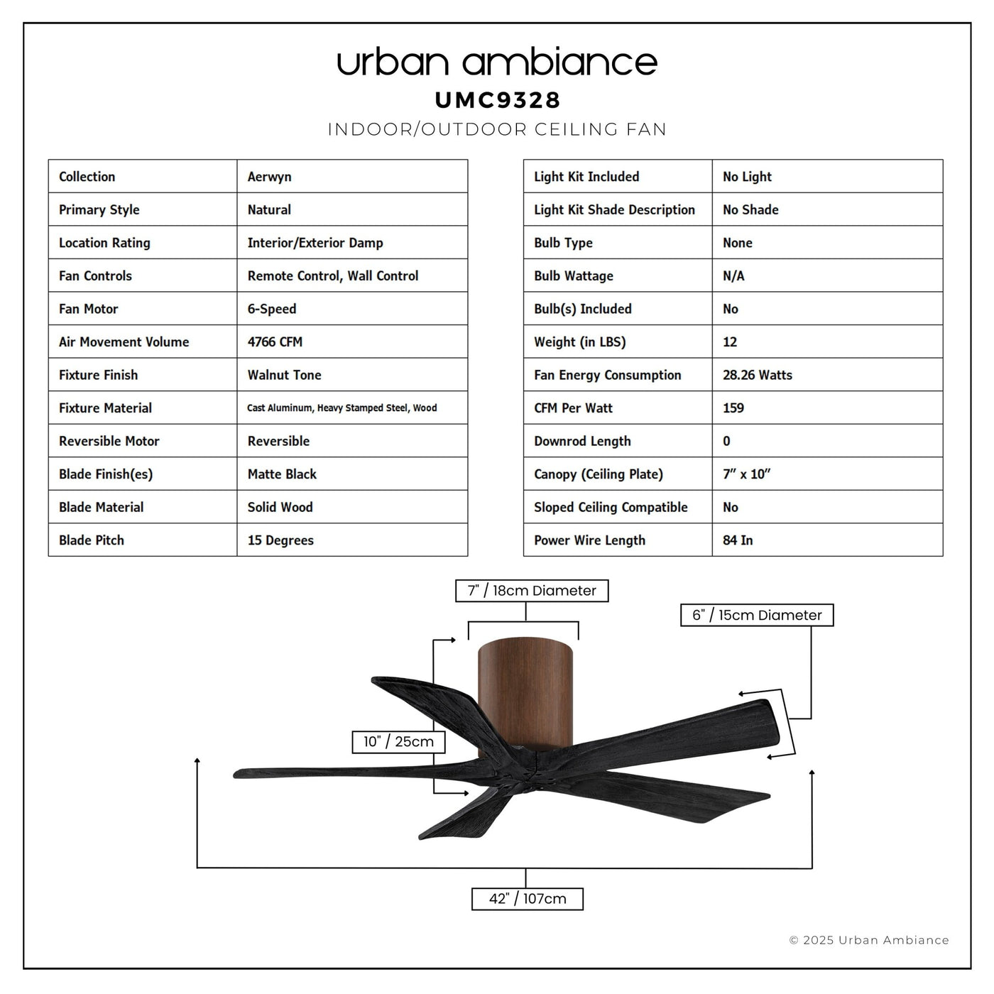 UMC9328 Natural Indoor/Outdoor Ceiling Fan, 10" H x 42" W x 42" D, Walnut Tone Finish, Aerwyn Collection