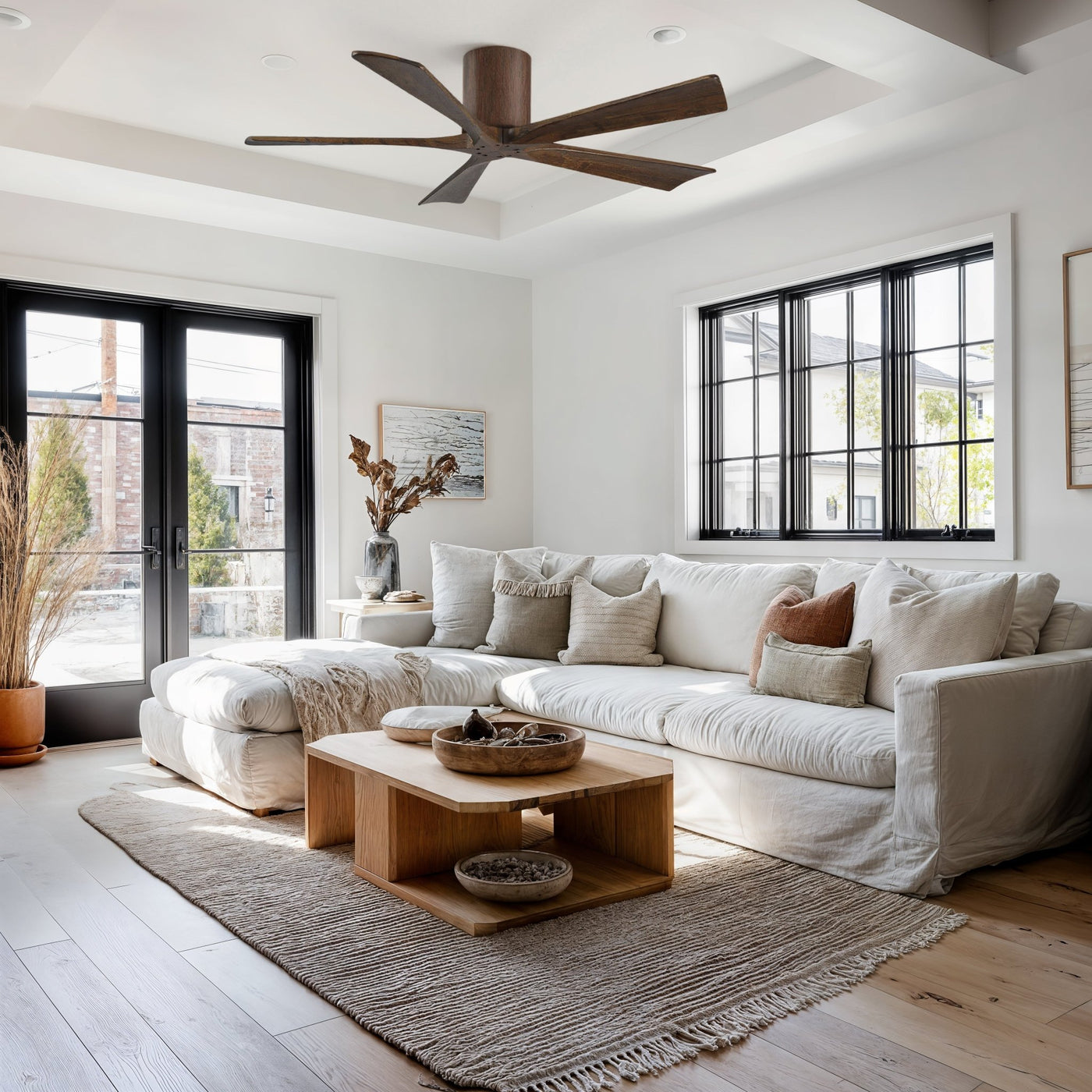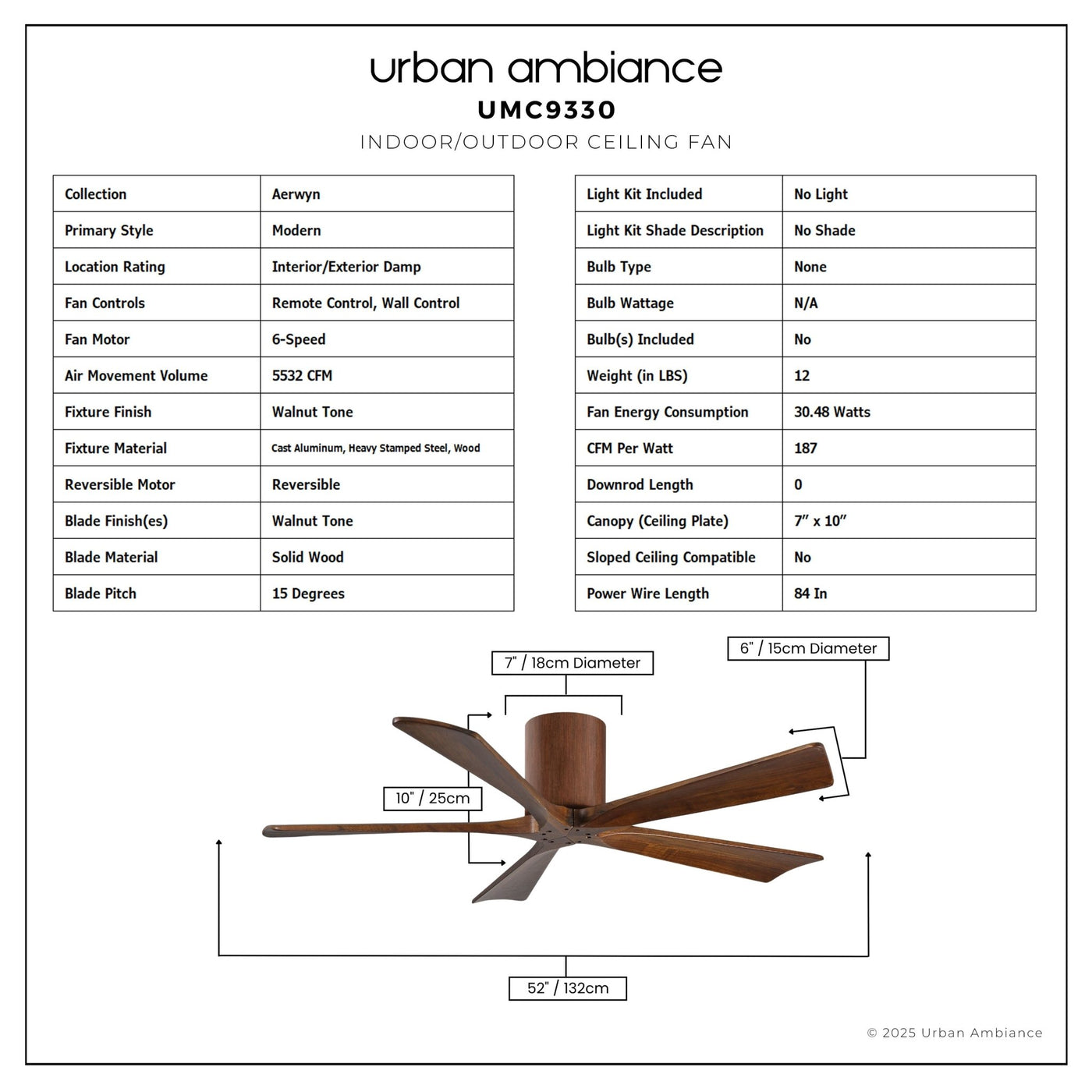 UMC9330 Modern Indoor/Outdoor Ceiling Fan, 10" H x 52" W x 52" D, Walnut Tone Finish, Aerwyn Collection