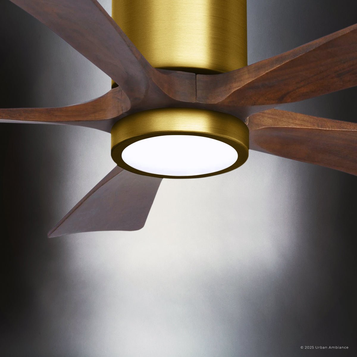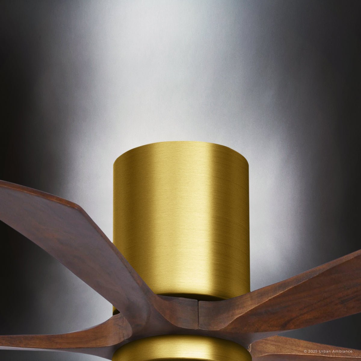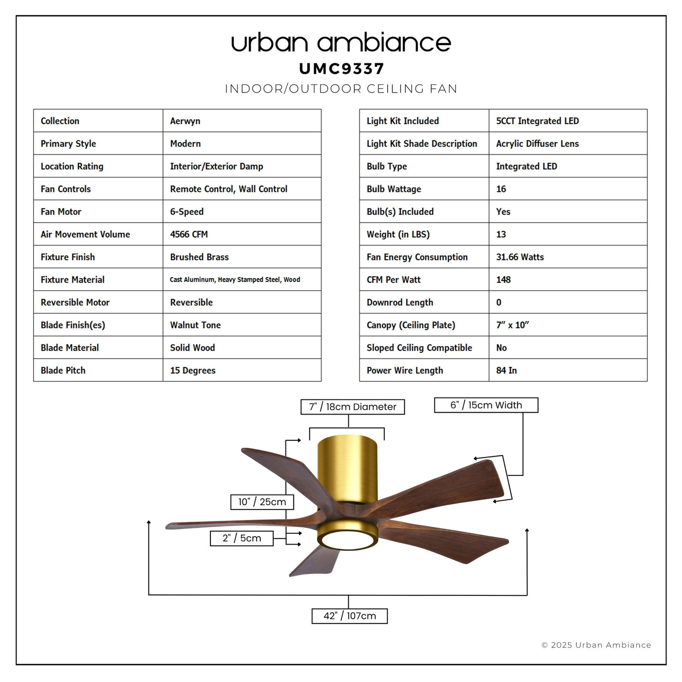 UMC9337 Modern Indoor/Outdoor Ceiling Fan, 12" H x 42" W x 42" D, Brushed Brass Finish, Aerwyn Collection