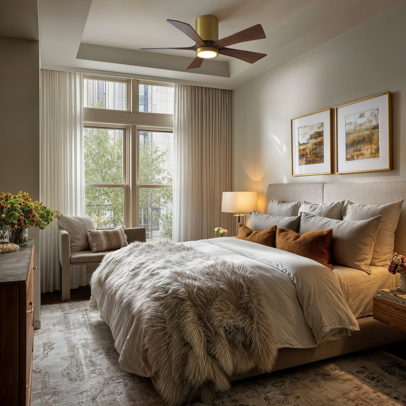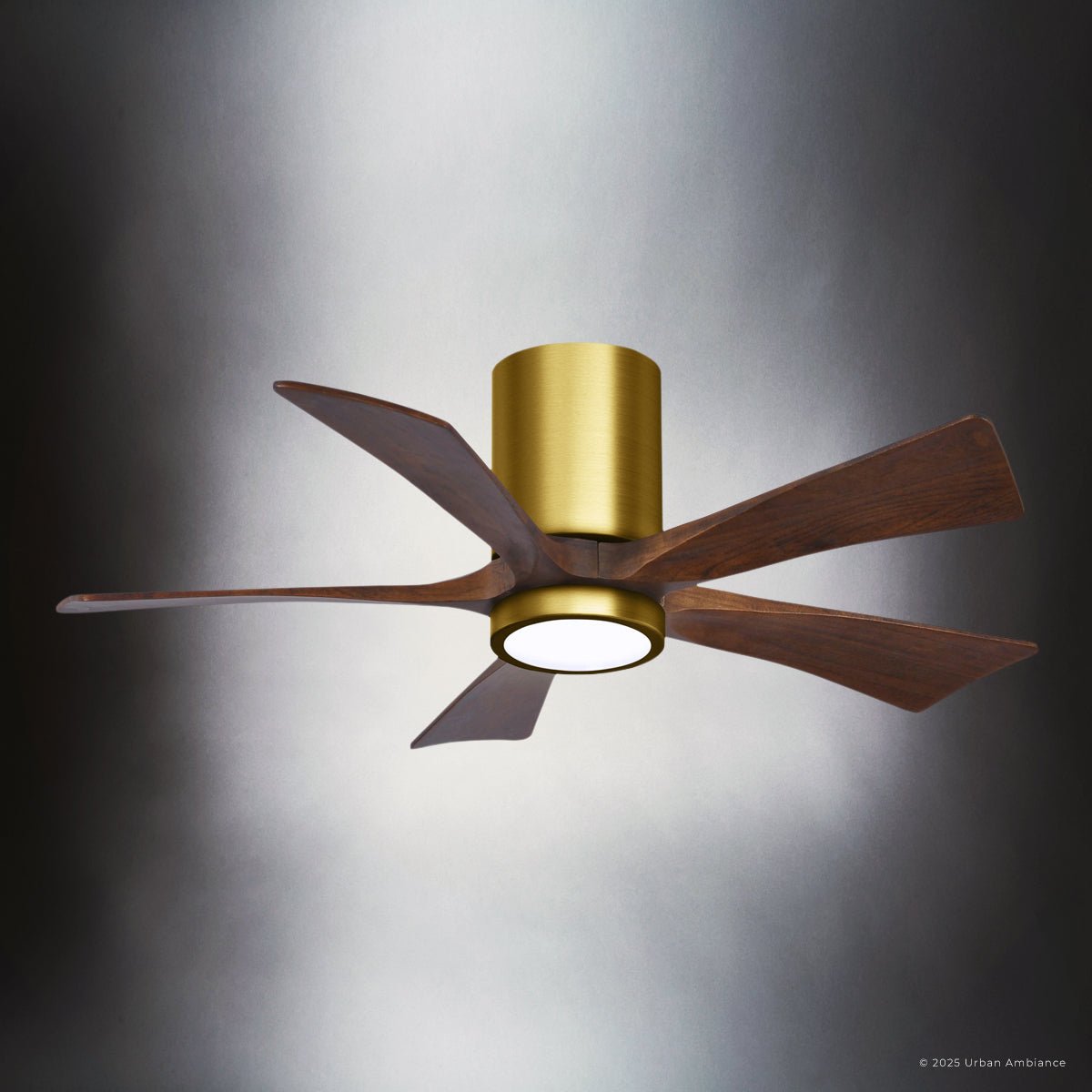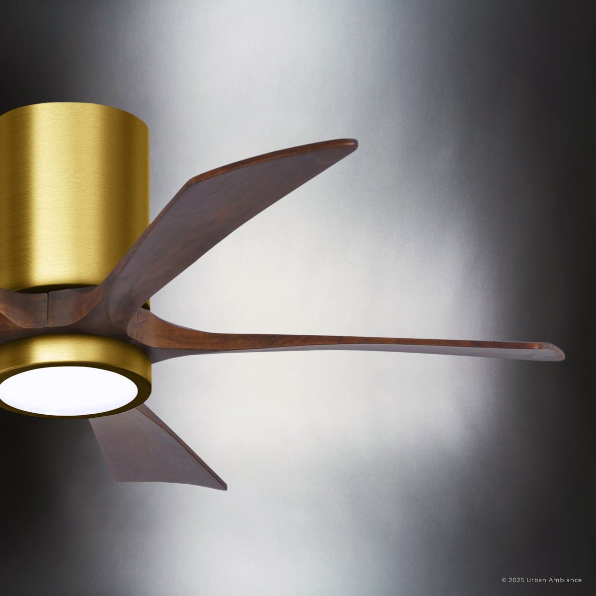 UMC9337 Modern Indoor/Outdoor Ceiling Fan, 12" H x 42" W x 42" D, Brushed Brass Finish, Aerwyn Collection