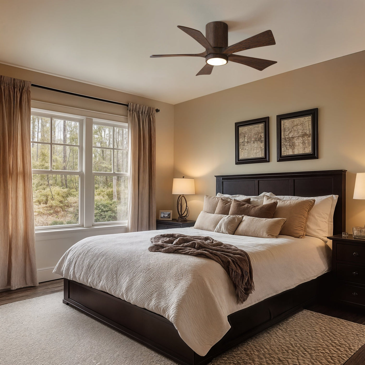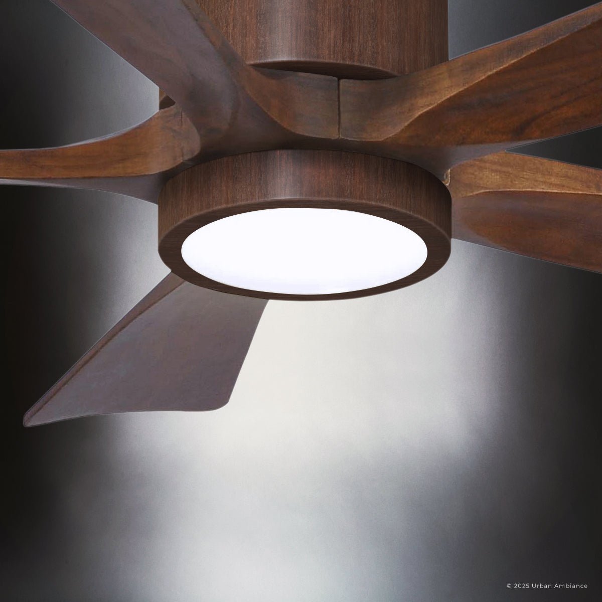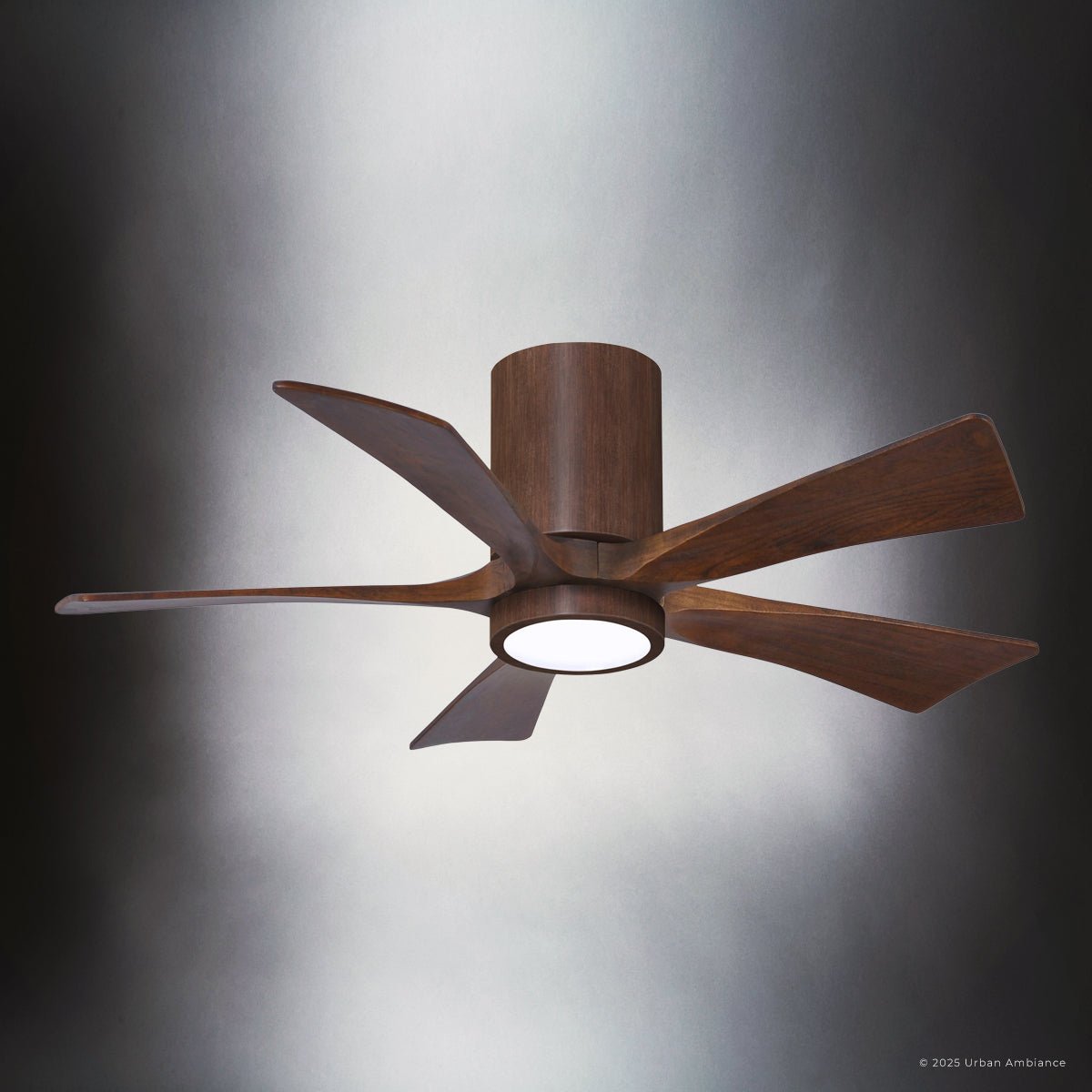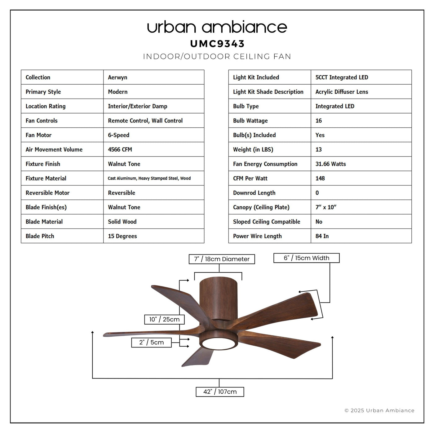 UMC9343 Modern Indoor/Outdoor Ceiling Fan, 12" H x 42" W x 42" D, Walnut Tone Finish, Aerwyn Collection