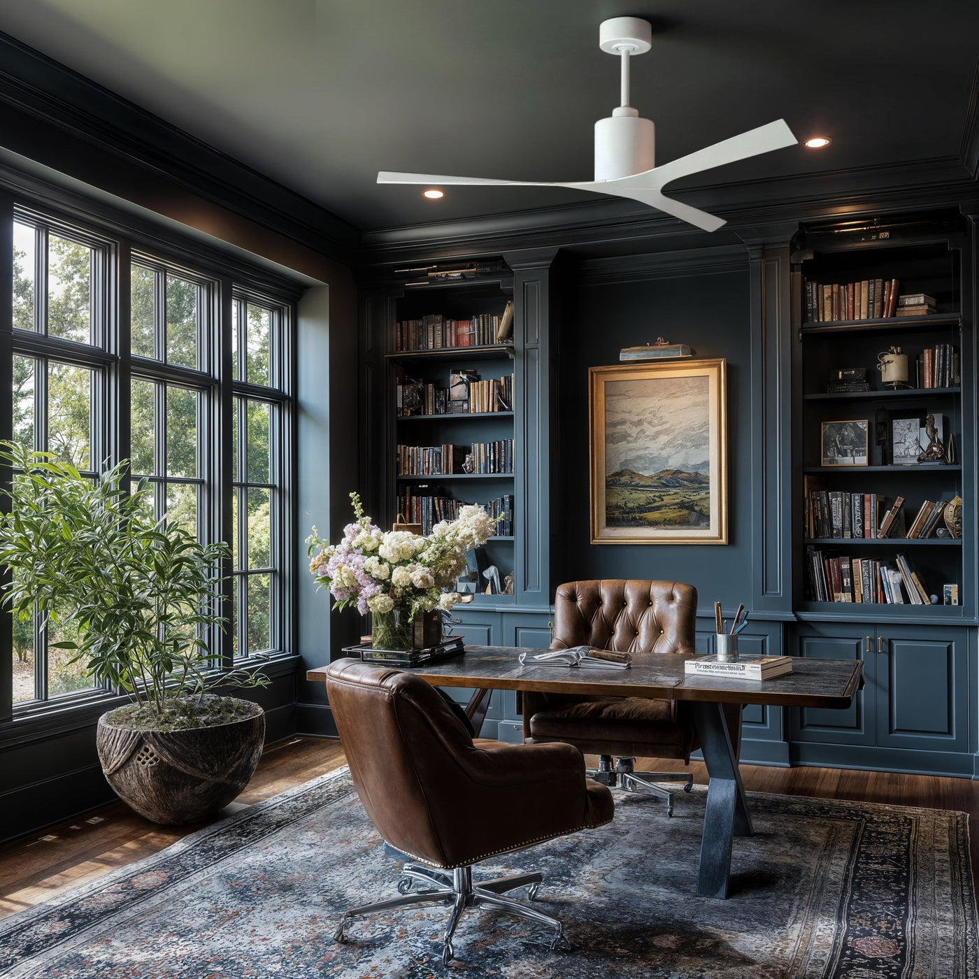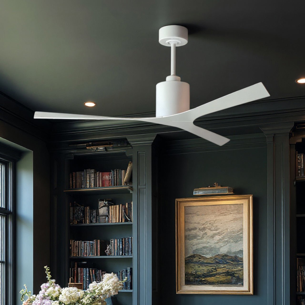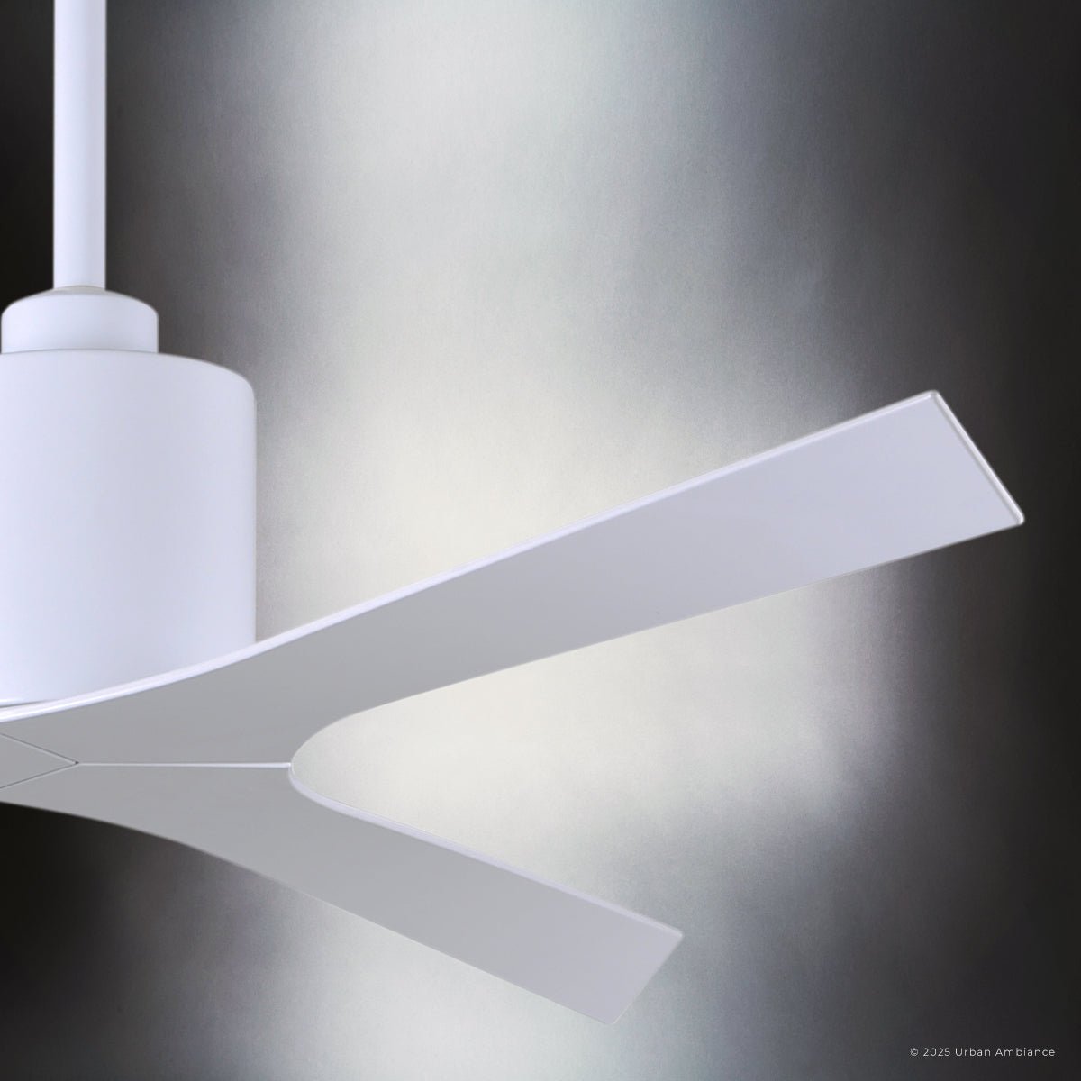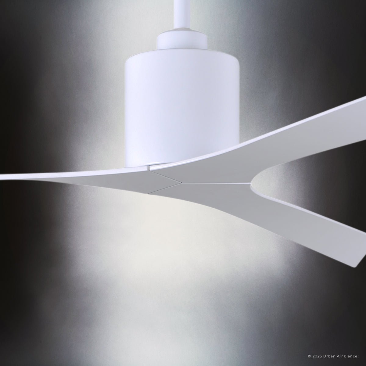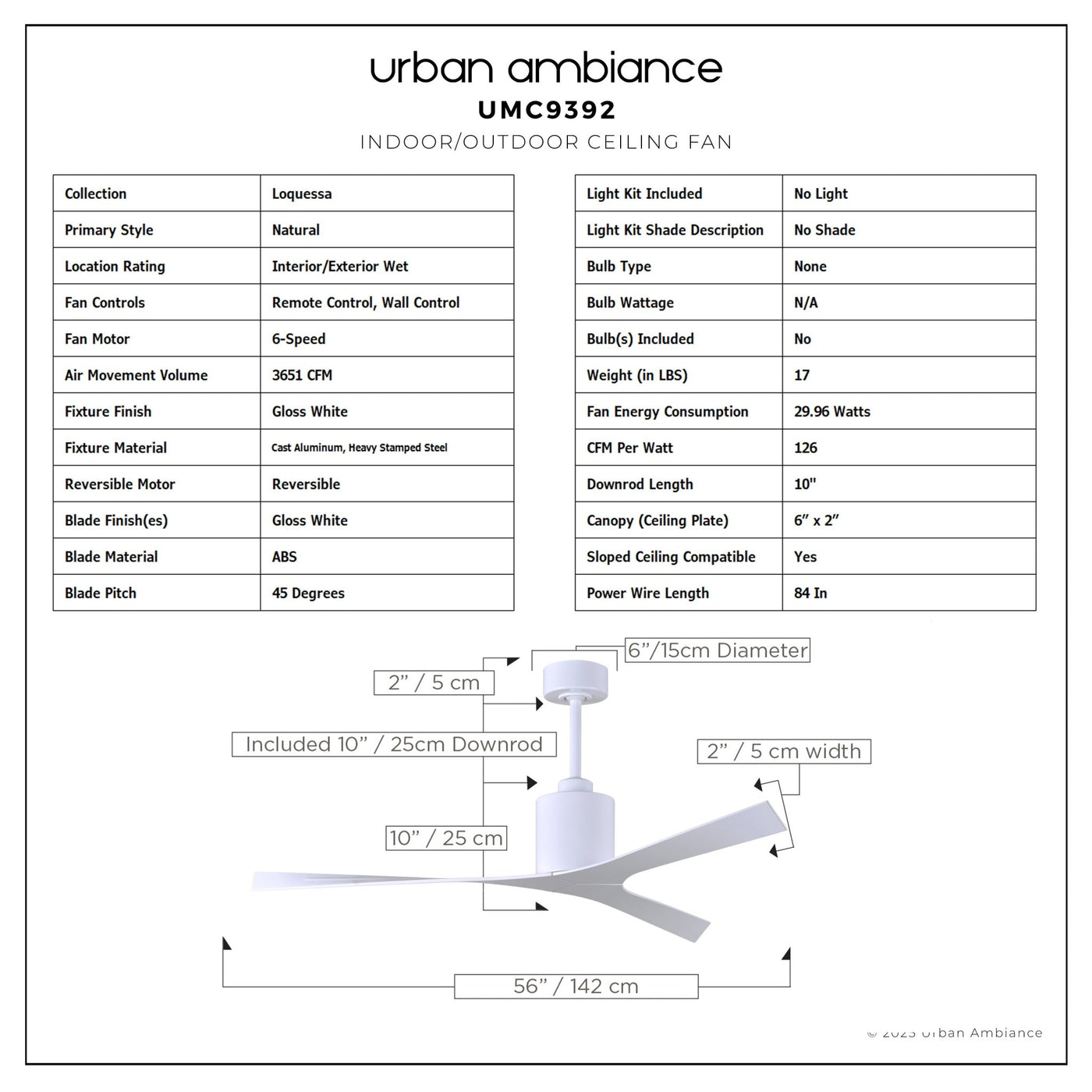 UMC9392 Natural Indoor/Outdoor Ceiling Fan, 12" (Plus Downrod) H x 56" W x 56" D, Gloss White Finish, Loquessa Collection