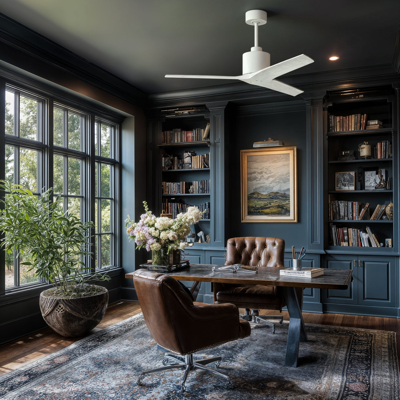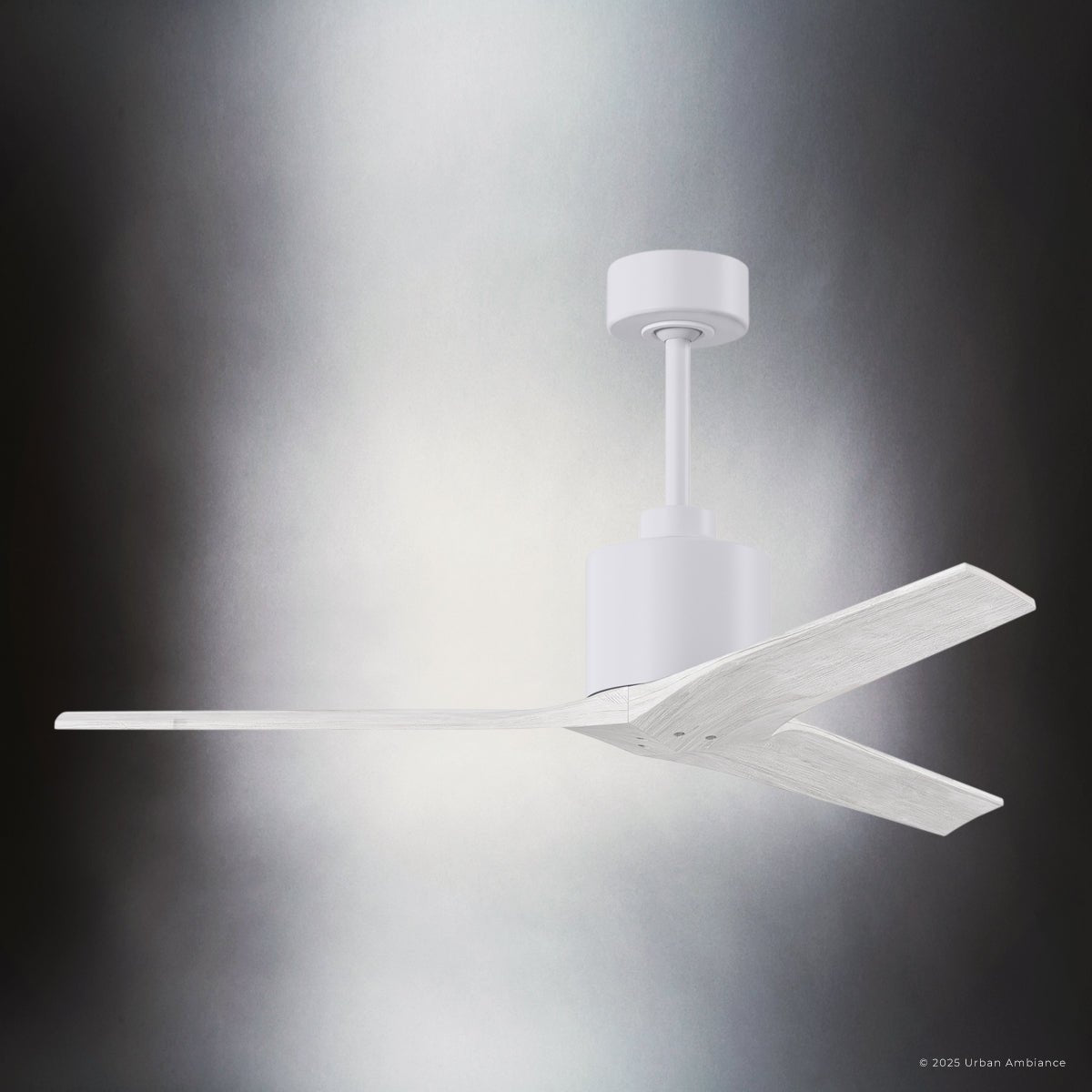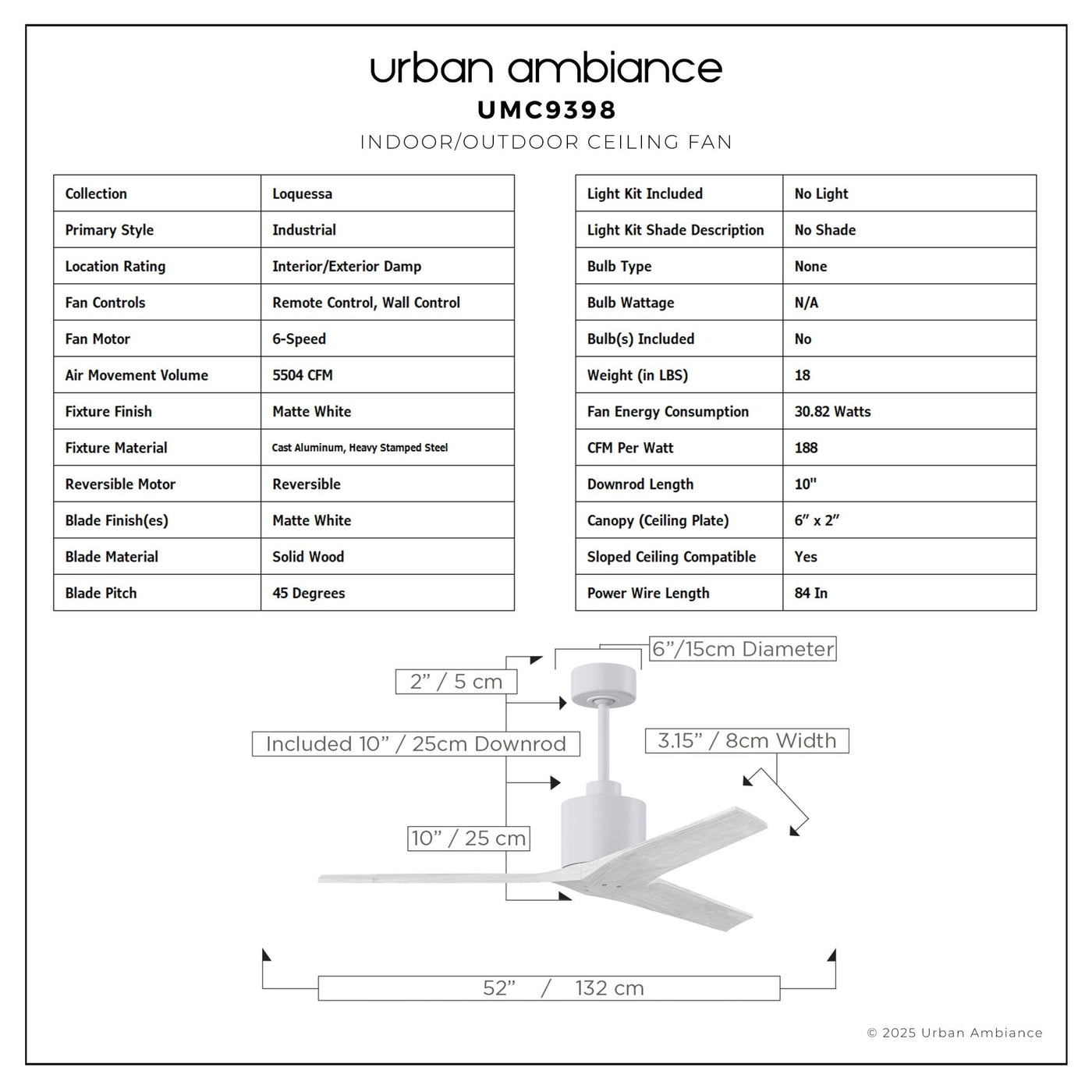 UMC9398 Industrial Indoor/Outdoor Ceiling Fan, 12" (Plus Downrod) H x 52" W x 52" D, Matte White Finish, Loquessa Collection