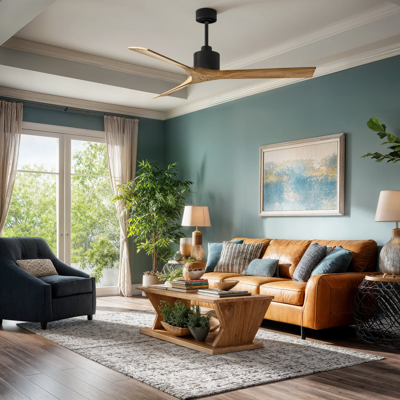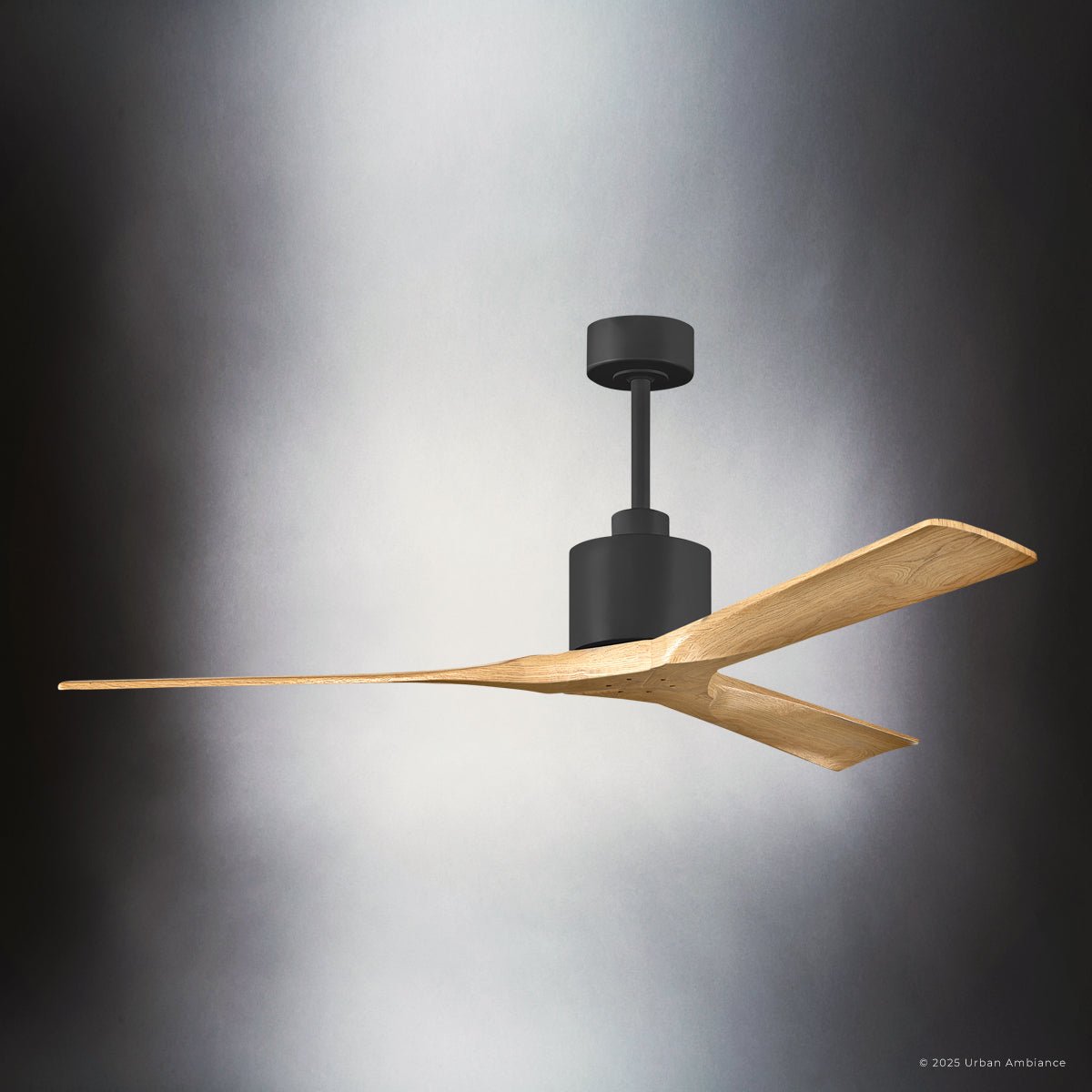 UMC9416 Contemporary Indoor/Outdoor Ceiling Fan, 12" (Plus Downrod) H x 60" W x 60" D, Matte Black Finish, Breecelyn Collection