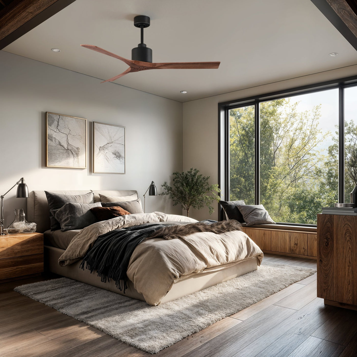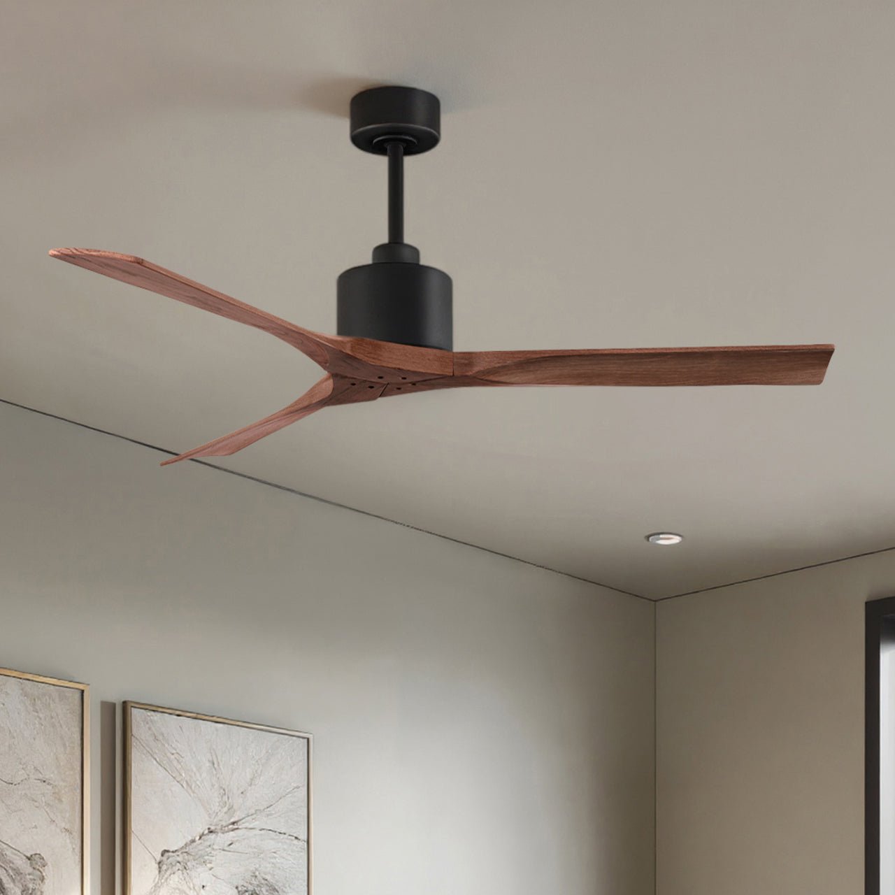 UMC9419 Minimalist Indoor/Outdoor Ceiling Fan, 12" (Plus Downrod) H x 60" W x 60" D, Matte Black Finish, Breecelyn Collection