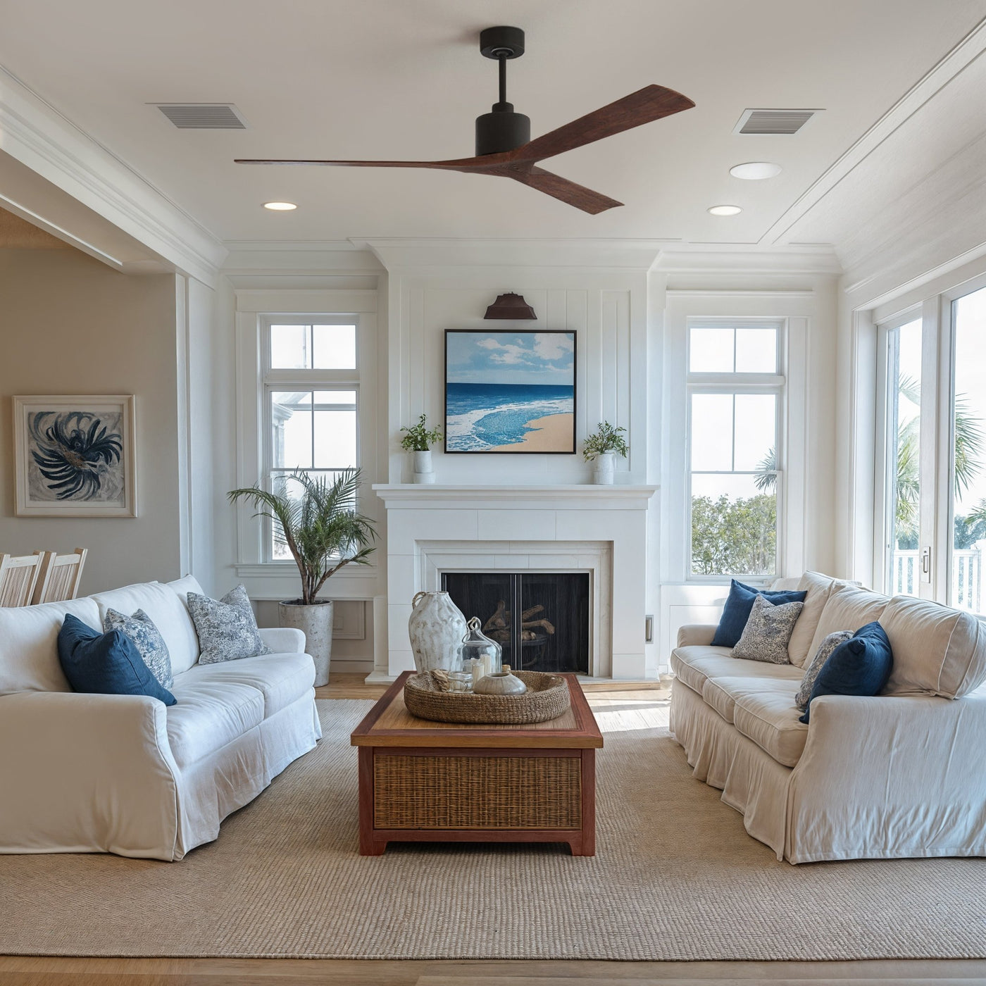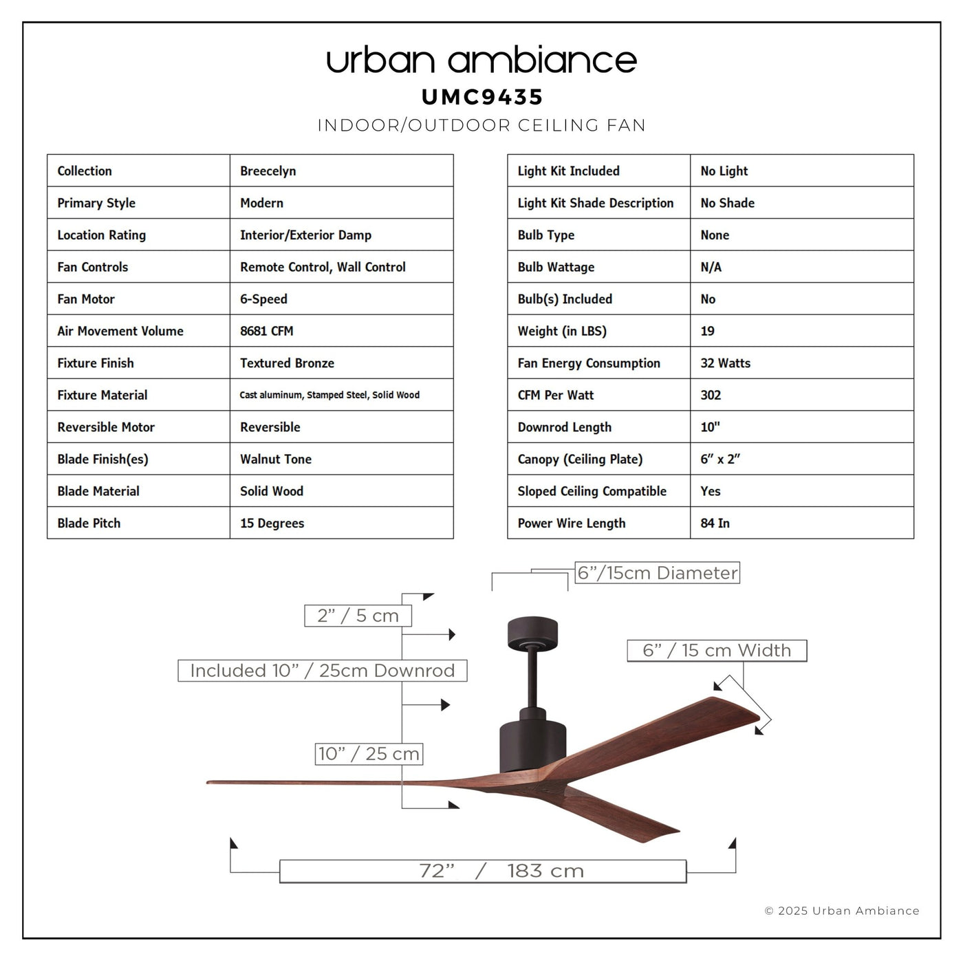 UMC9435 Modern Indoor/Outdoor Ceiling Fan, 12" (Plus Downrod) H x 72" W x 72" D, Textured Bronze Finish, Breecelyn Collection