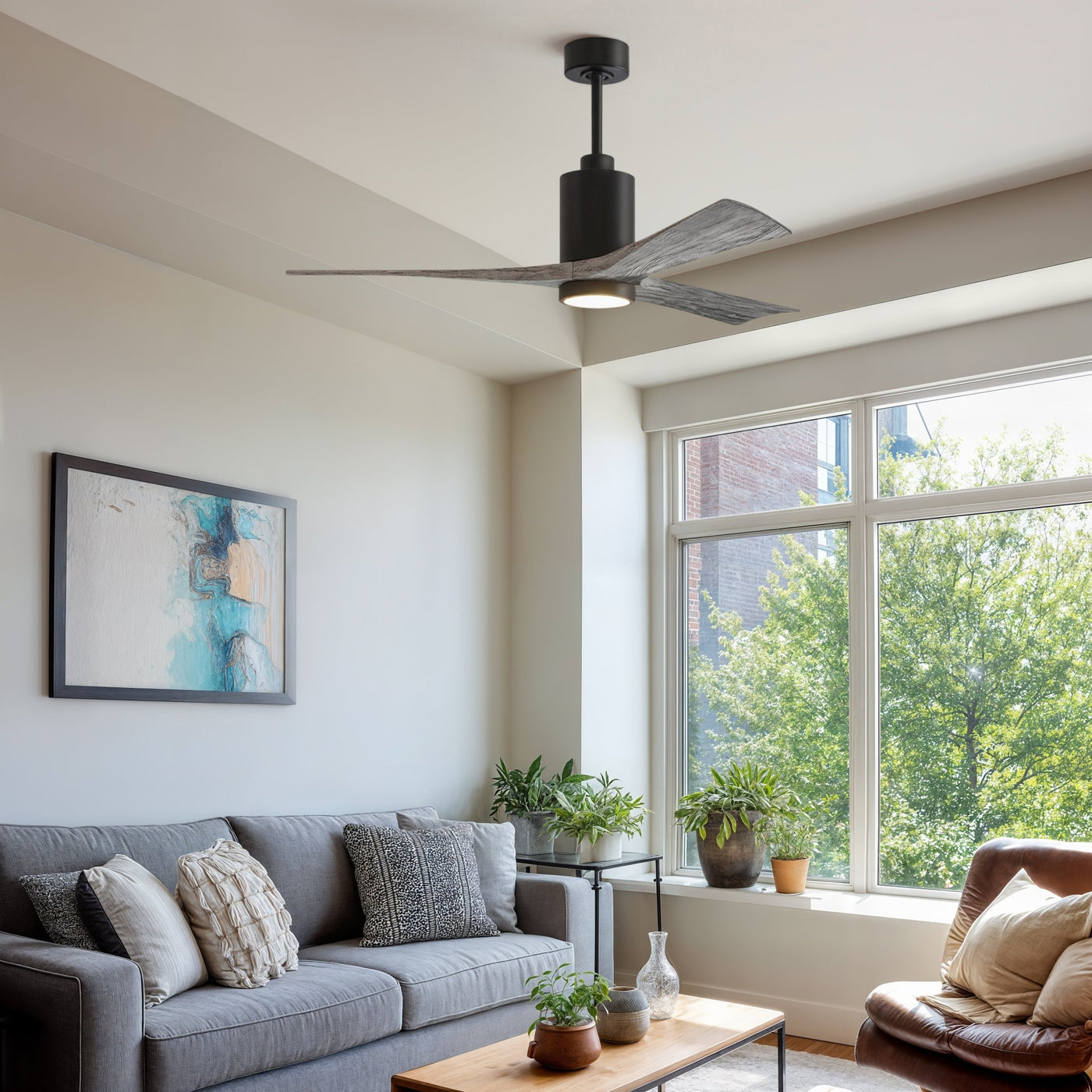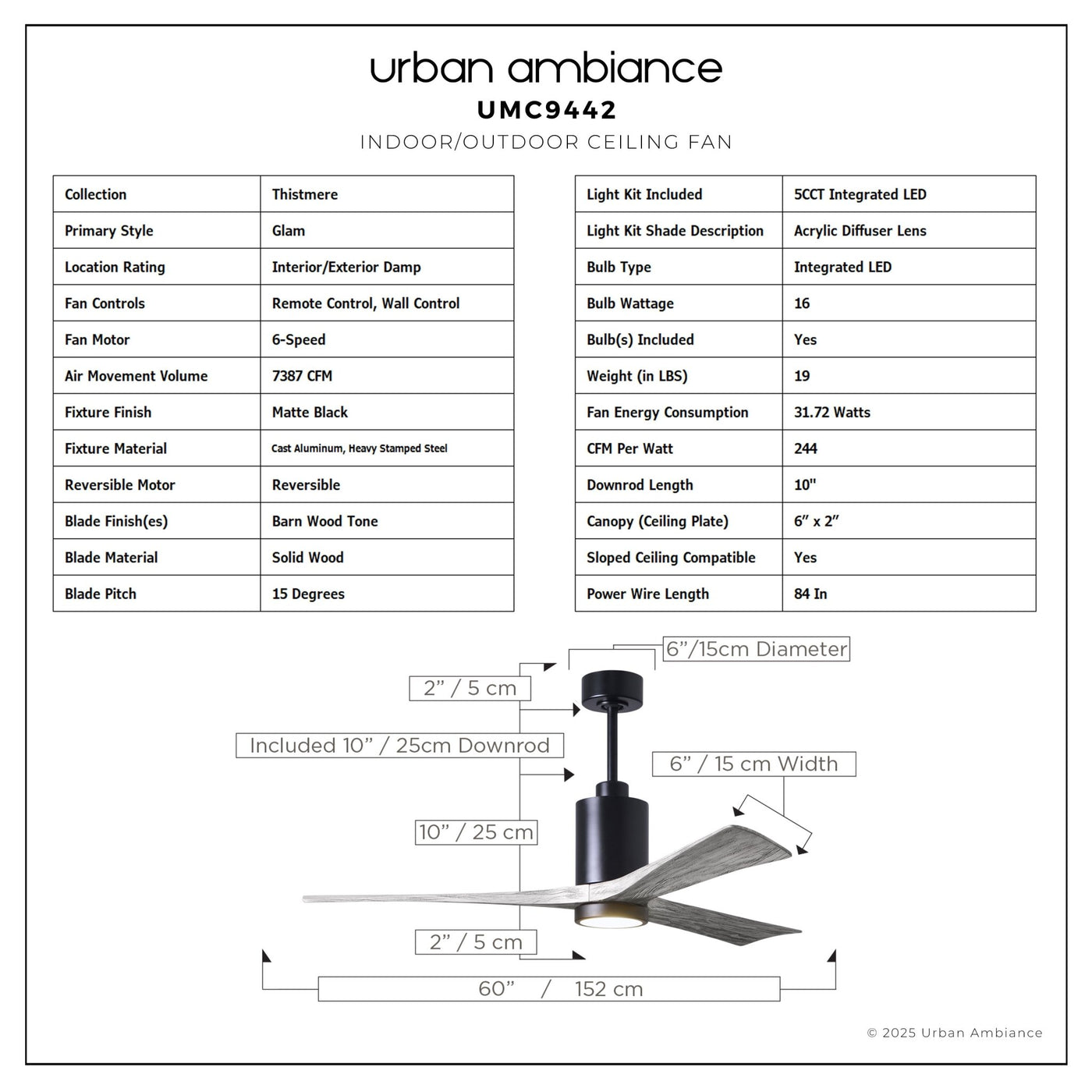 UMC9442 Glam Indoor/Outdoor Ceiling Fan, 14" (Plus Downrod) H x 60" W x 60" D, Matte Black Finish, Thistmere Collection