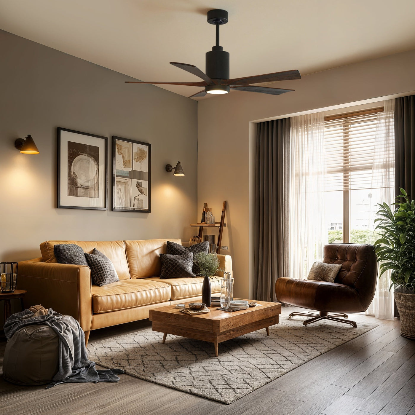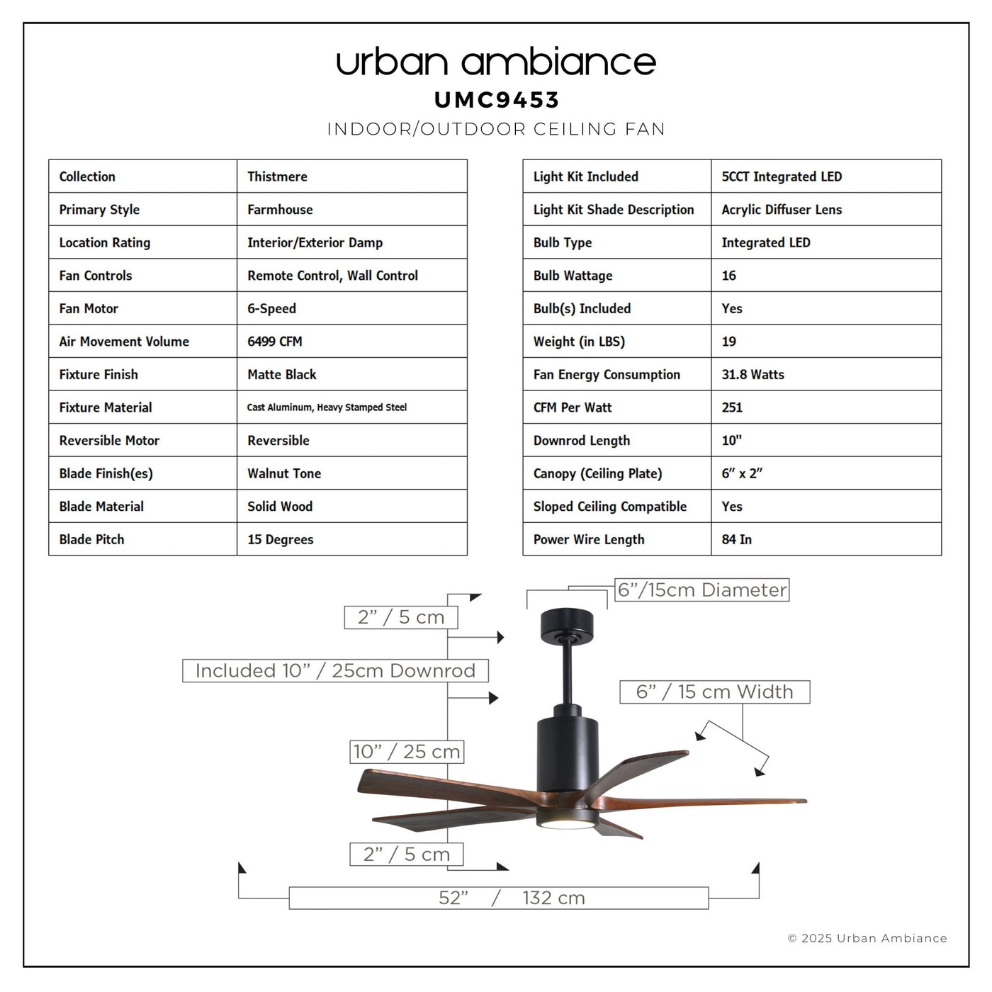 UMC9453 Farmhouse Indoor/Outdoor Ceiling Fan, 14" (Plus Downrod) H x 52" W x 52" D, Matte Black Finish, Thistmere Collection