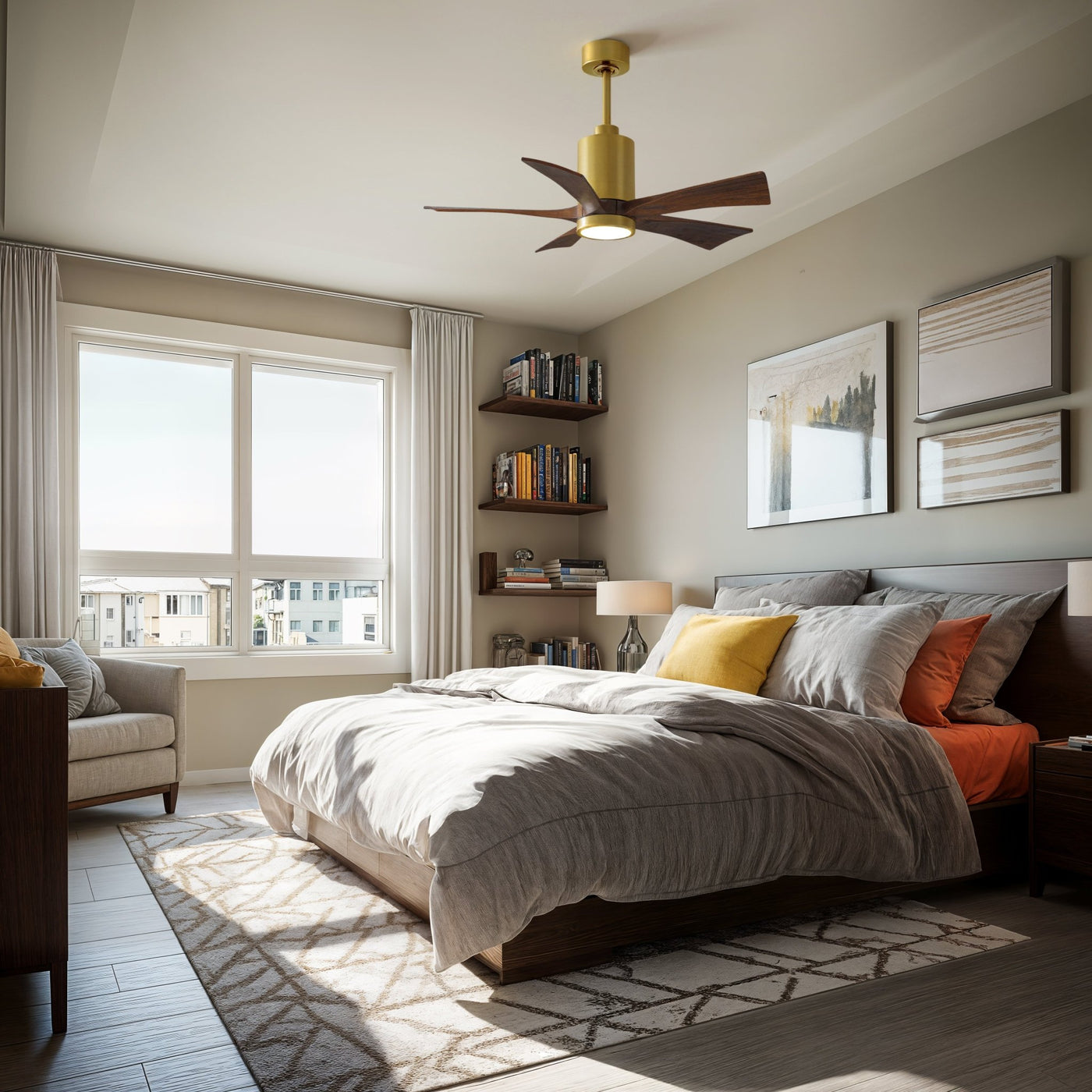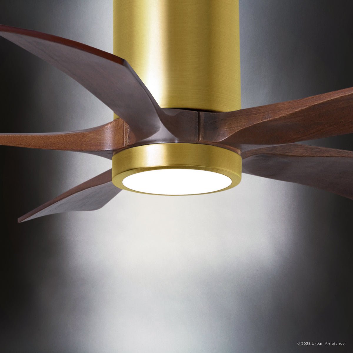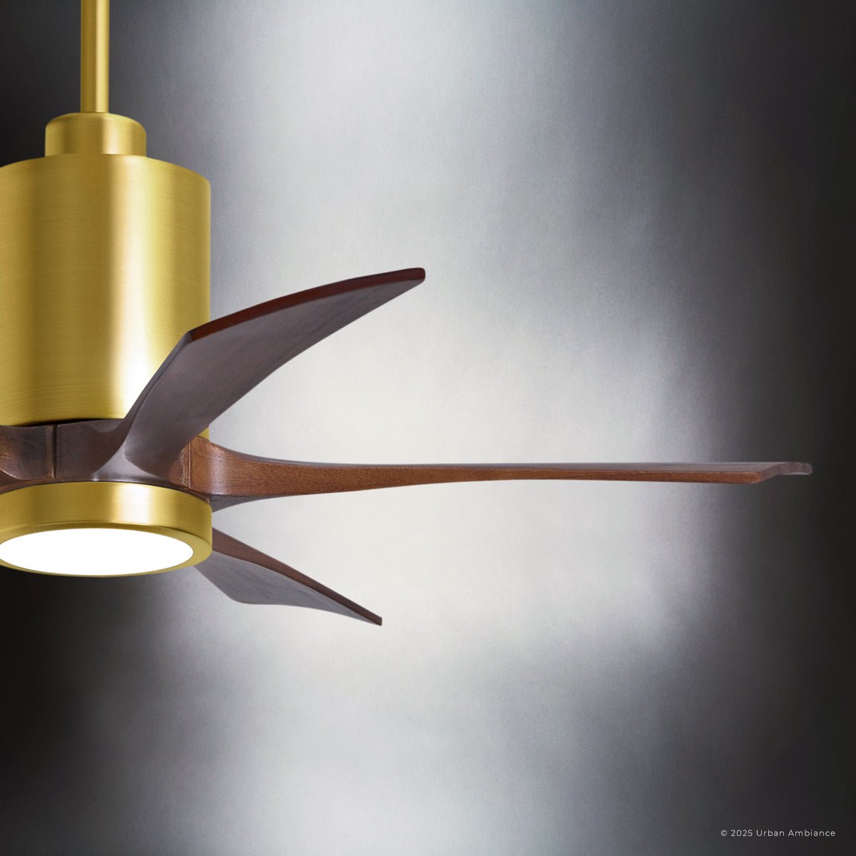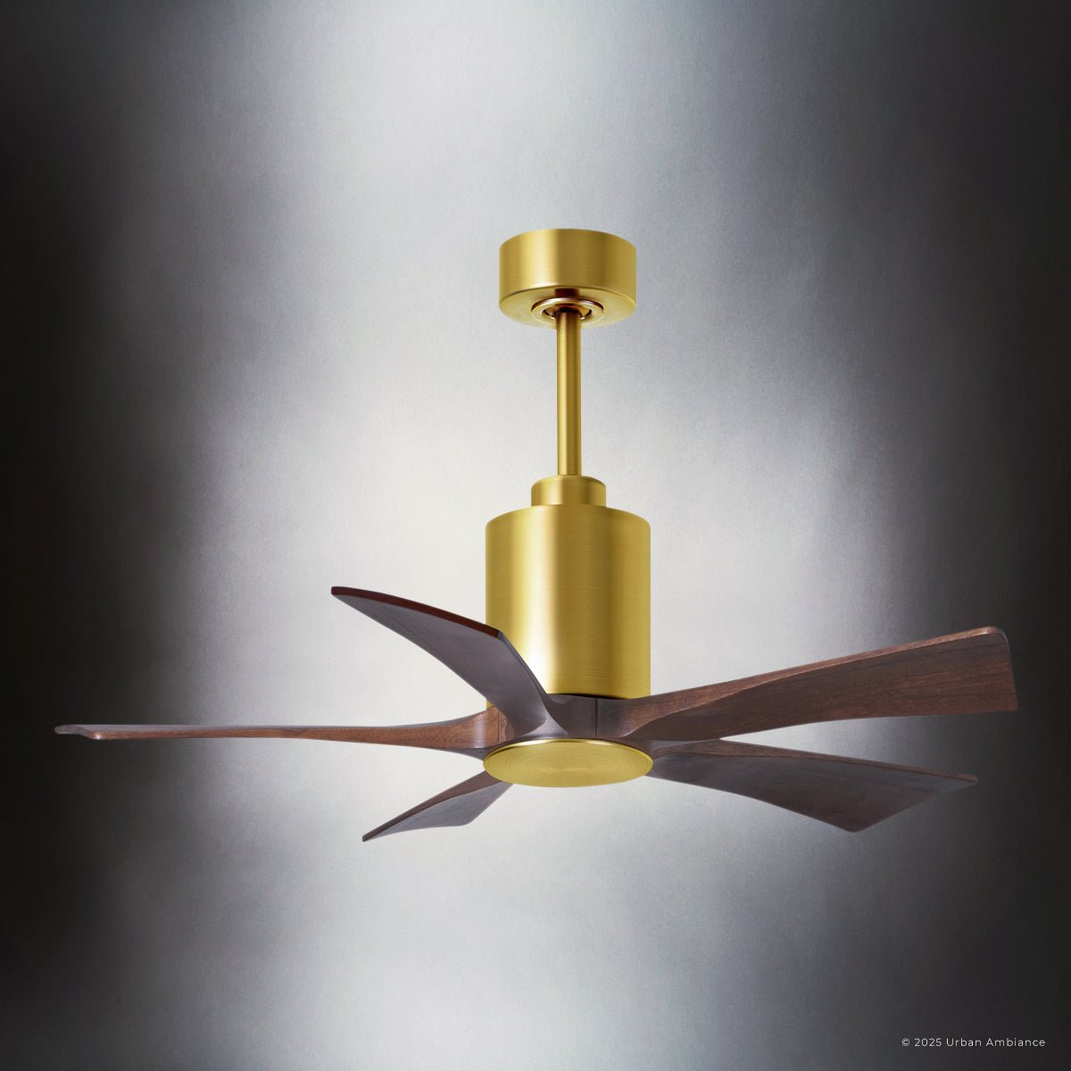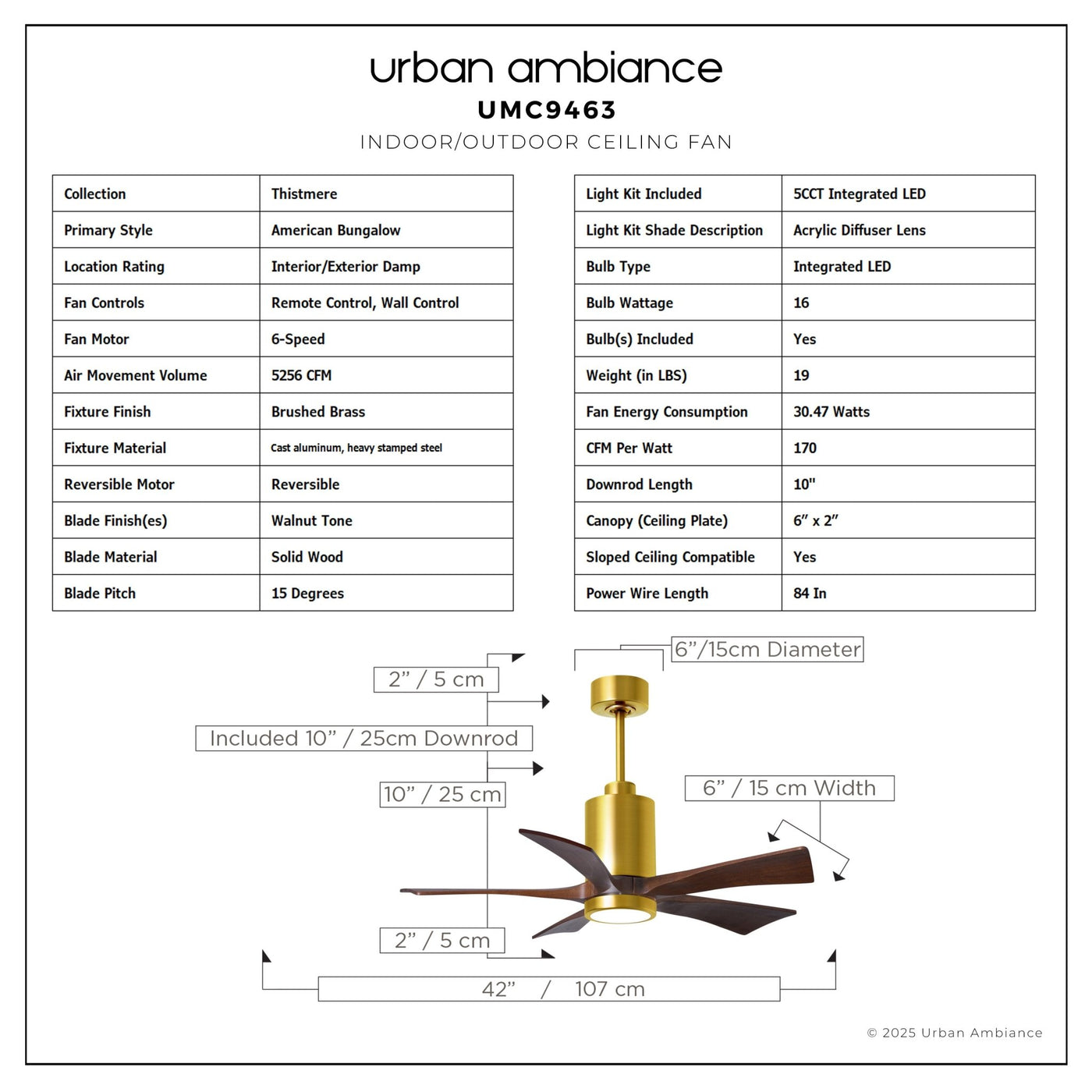 UMC9463 American Bungalow Indoor/Outdoor Ceiling Fan, 14" (Plus Downrod) H x 42" W x 42" D, Brushed Brass Finish, Thistmere Collection