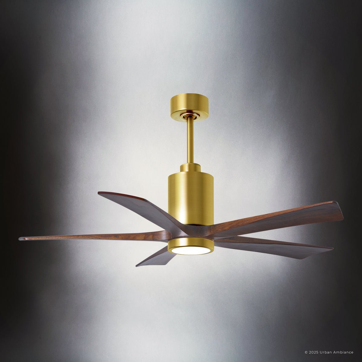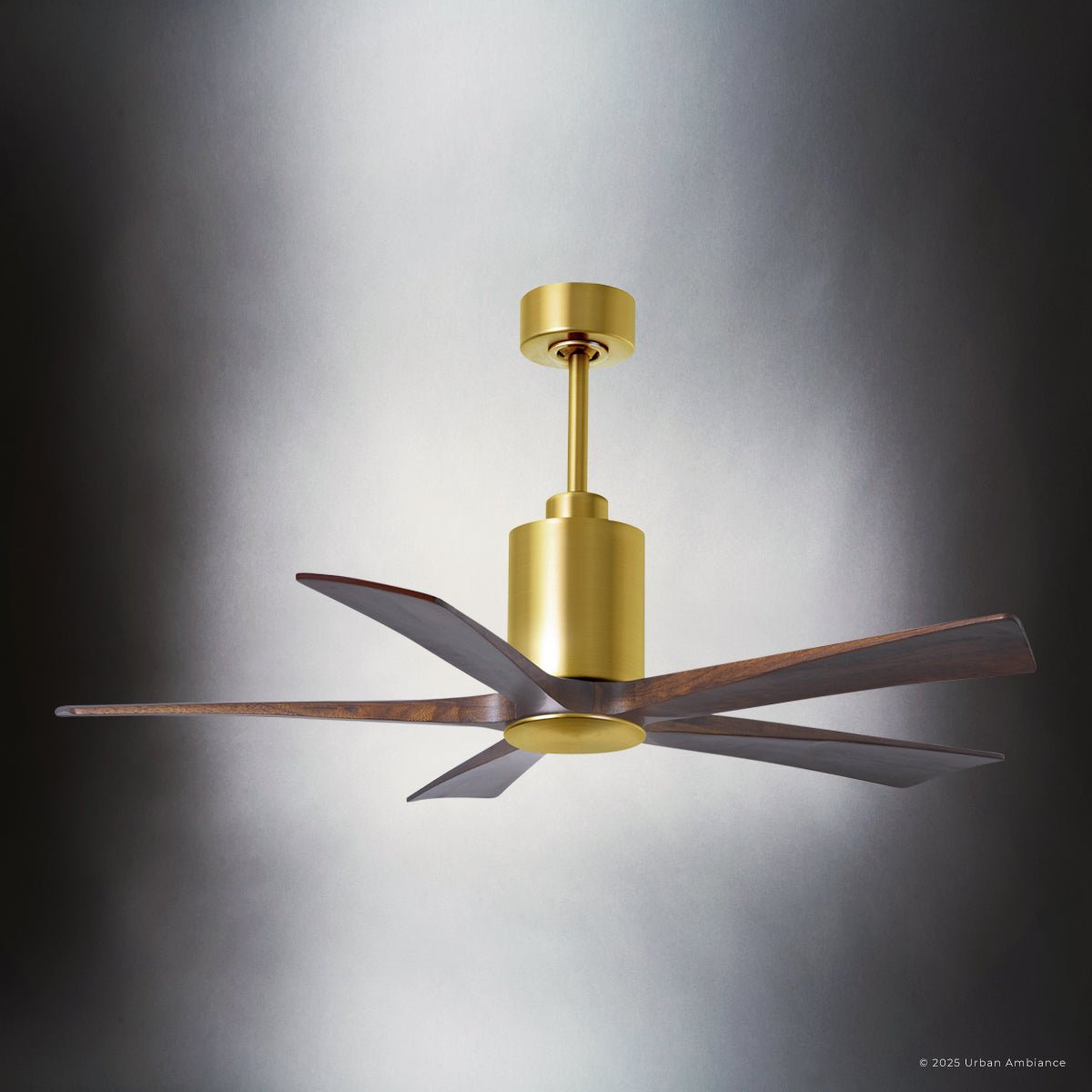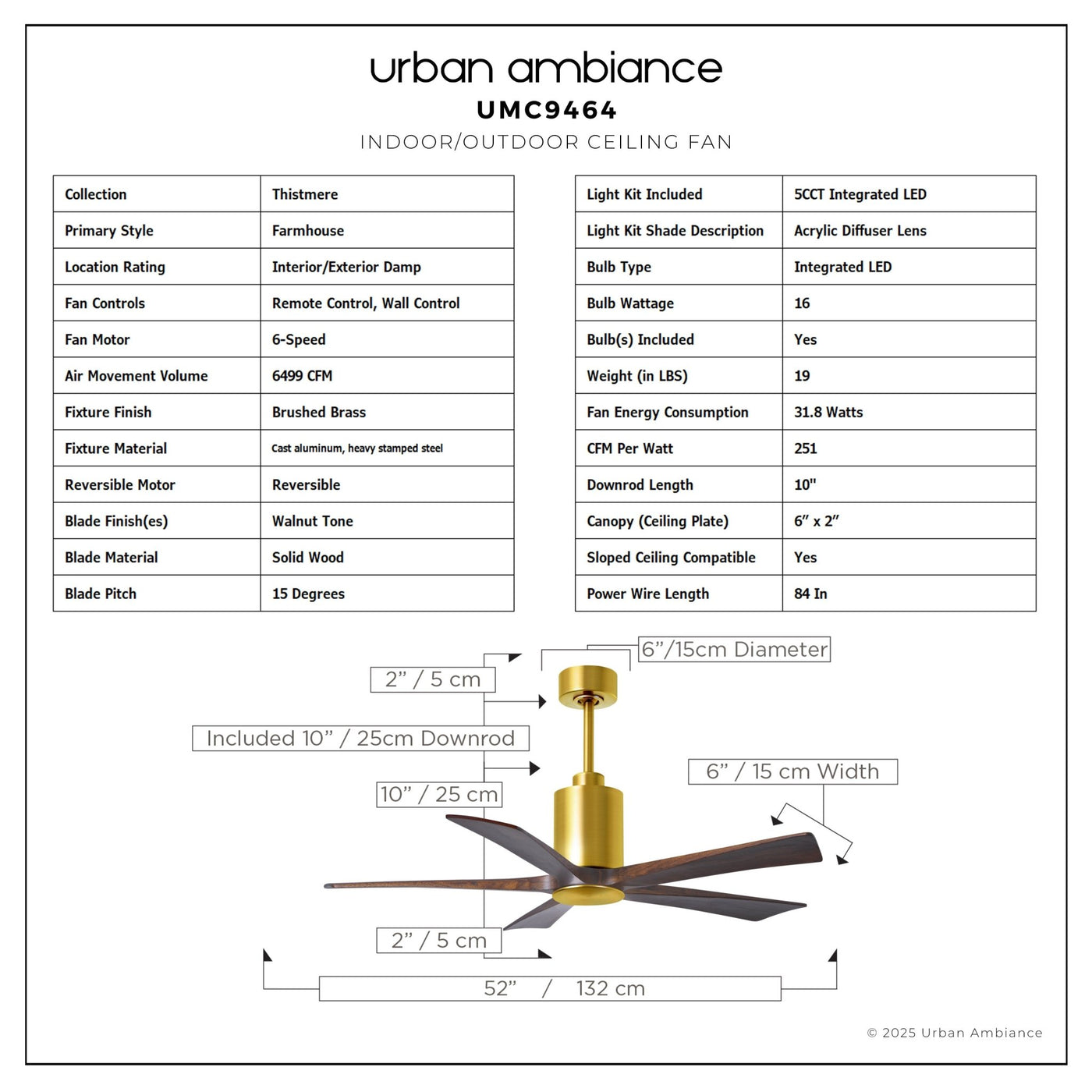 UMC9464 Farmhouse Indoor/Outdoor Ceiling Fan, 14" (Plus Downrod) H x 52" W x 52" D, Brushed Brass Finish, Thistmere Collection