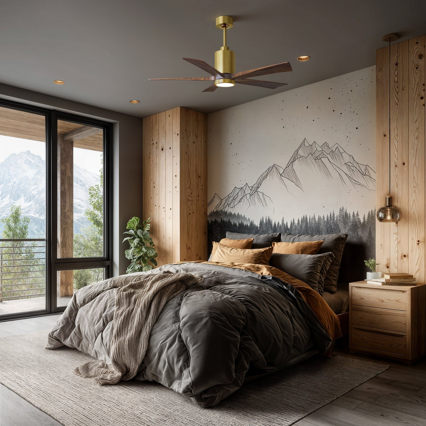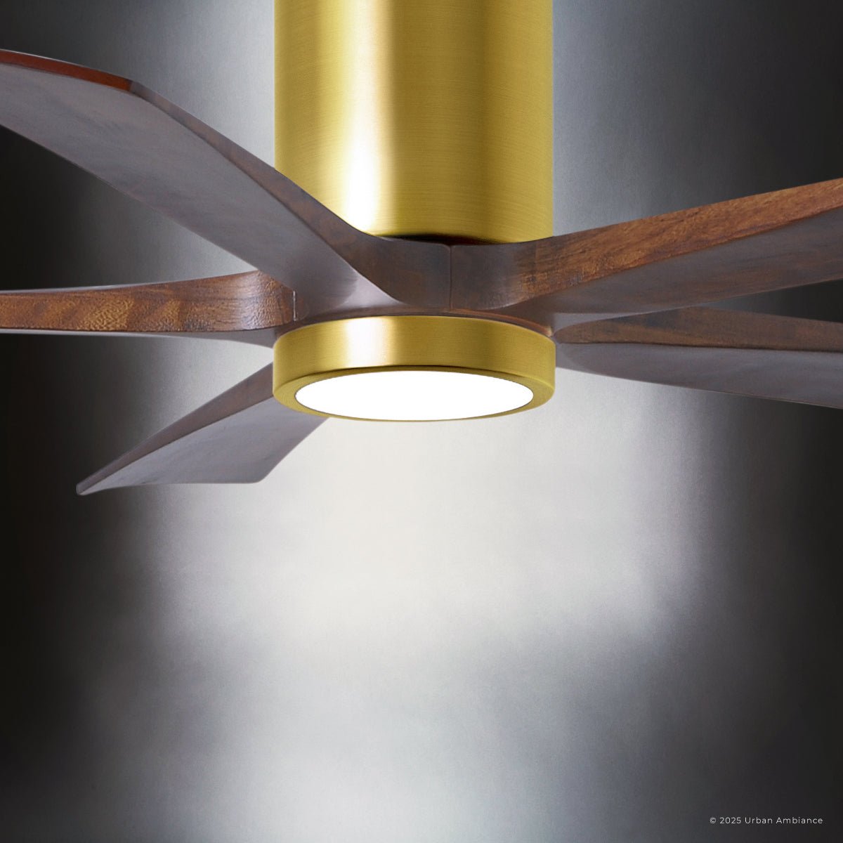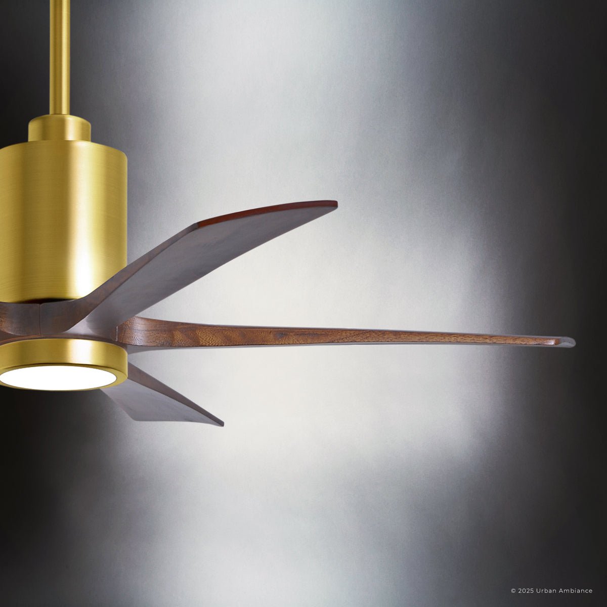 UMC9464 Farmhouse Indoor/Outdoor Ceiling Fan, 14" (Plus Downrod) H x 52" W x 52" D, Brushed Brass Finish, Thistmere Collection