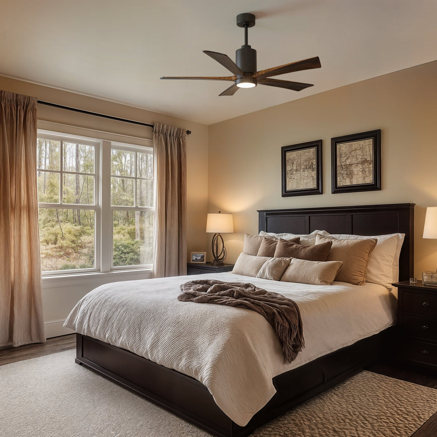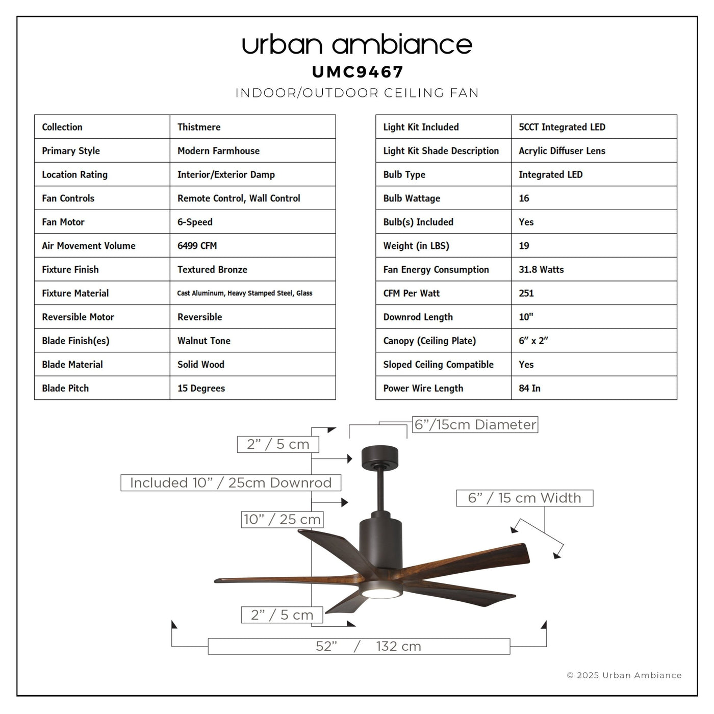 UMC9467 Modern Farmhouse Indoor/Outdoor Ceiling Fan, 14" (Plus Downrod) H x 52" W x 52" D, Textured Bronze Finish, Thistmere Collection