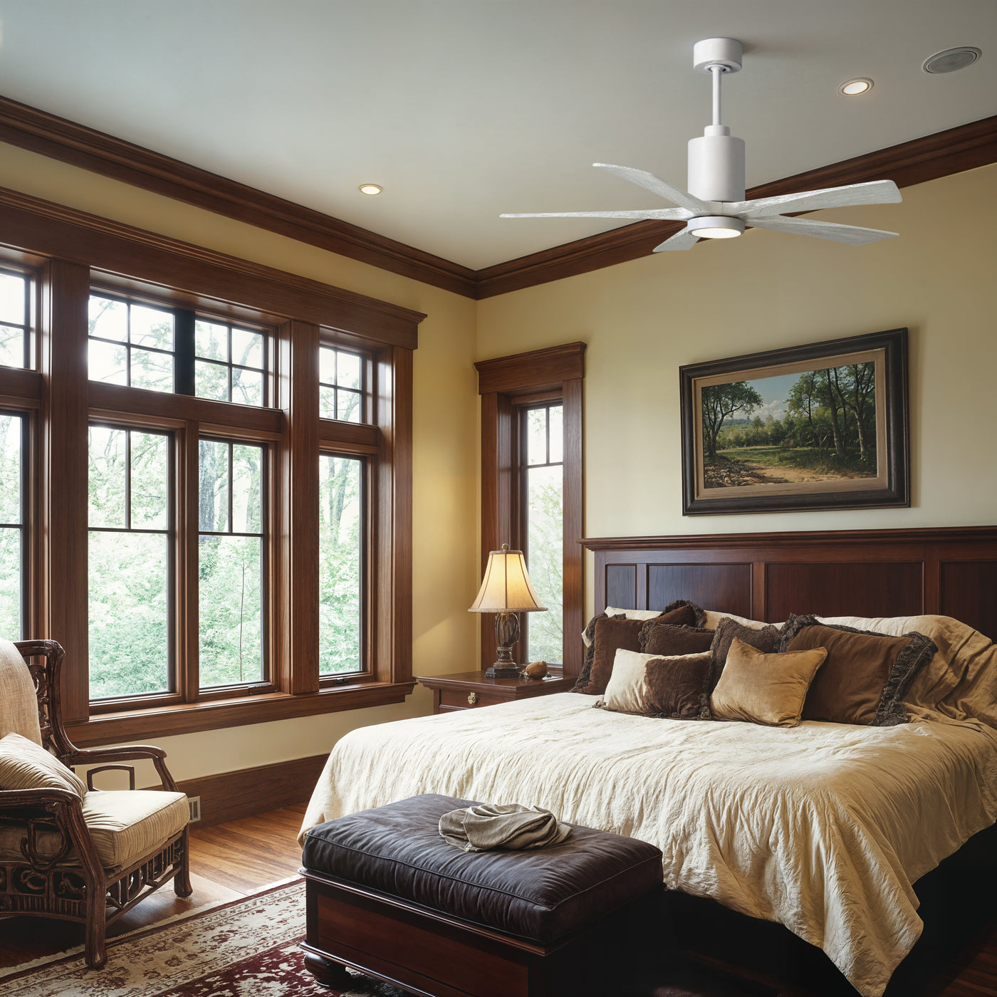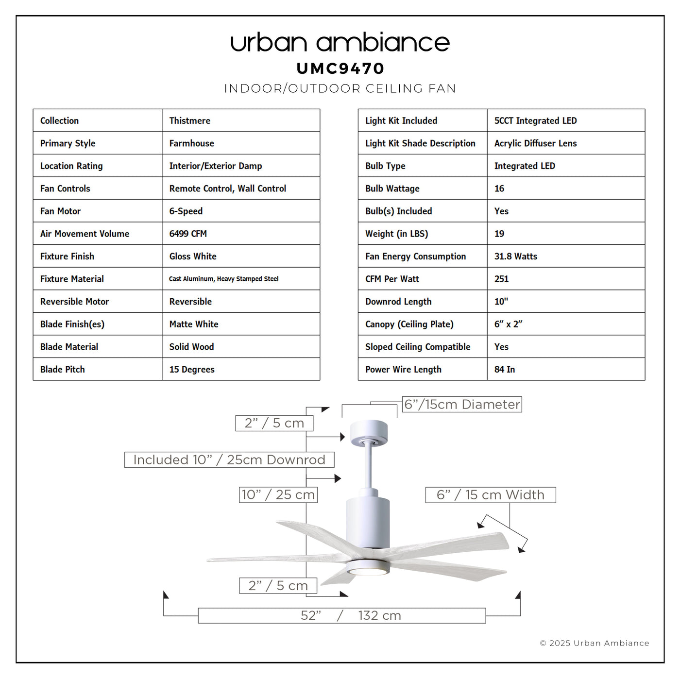 UMC9470 Farmhouse Indoor/Outdoor Ceiling Fan, 14" (Plus Downrod) H x 52" W x 52" D, Gloss White Finish, Thistmere Collection
