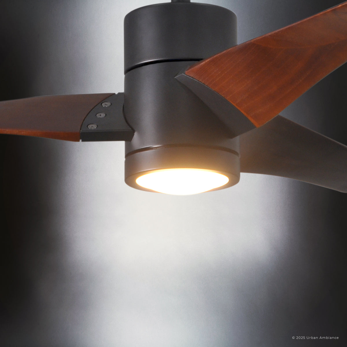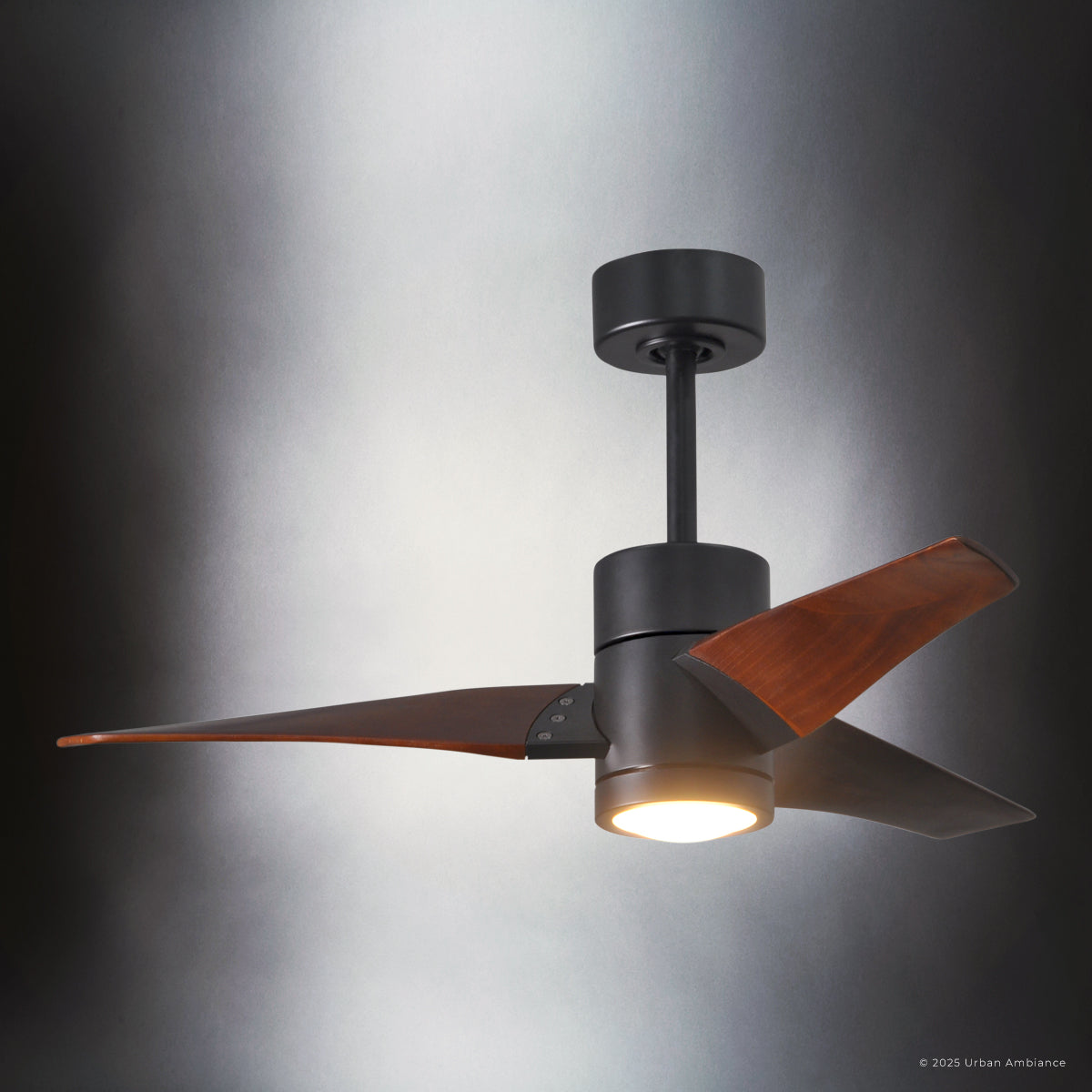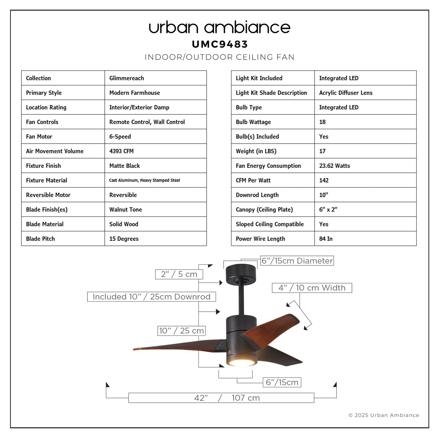 UMC9483 Modern Farmhouse Indoor/Outdoor Ceiling Fan, 12" (Plus Downrod) H x 42" W x 42" D, Matte Black Finish, Glimmereach Collection