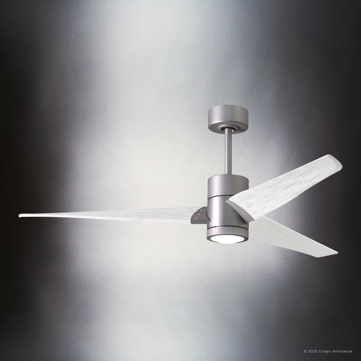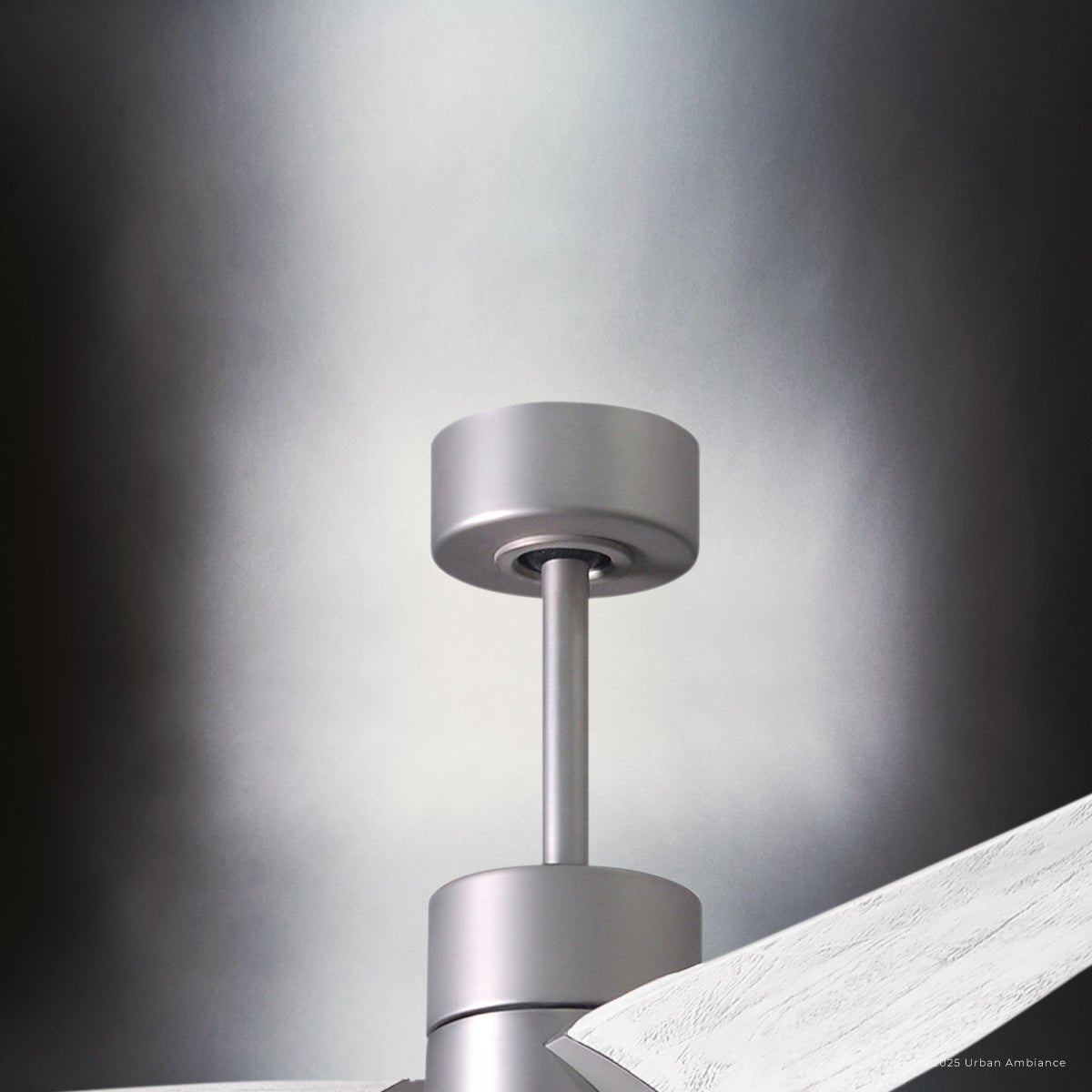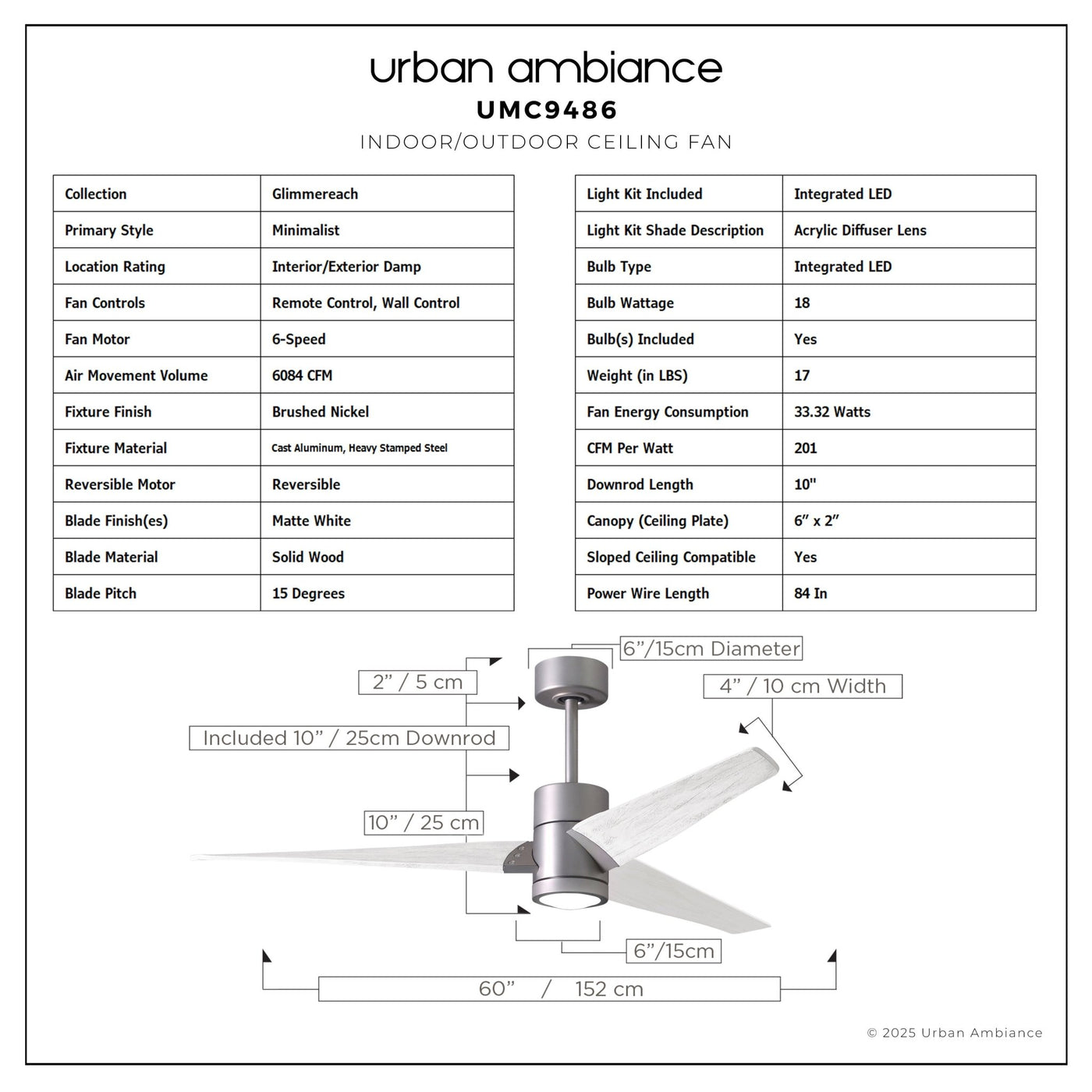 UMC9486 Minimalist Indoor/Outdoor Ceiling Fan, 12" (Plus Downrod) H x 60" W x 60" D, Brushed Nickel Finish, Glimmereach Collection