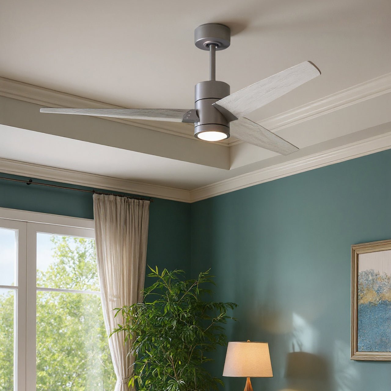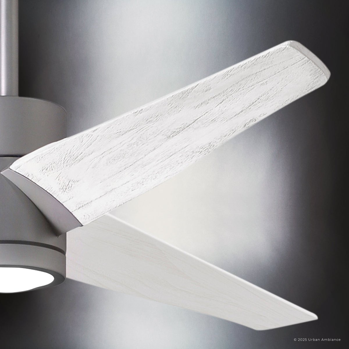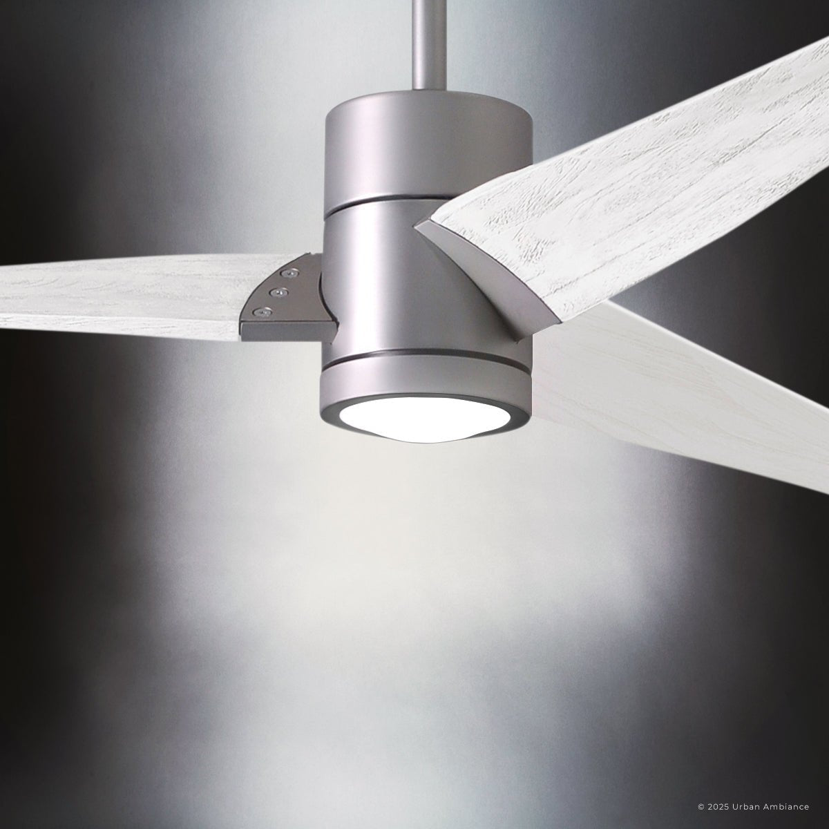 UMC9486 Minimalist Indoor/Outdoor Ceiling Fan, 12" (Plus Downrod) H x 60" W x 60" D, Brushed Nickel Finish, Glimmereach Collection
