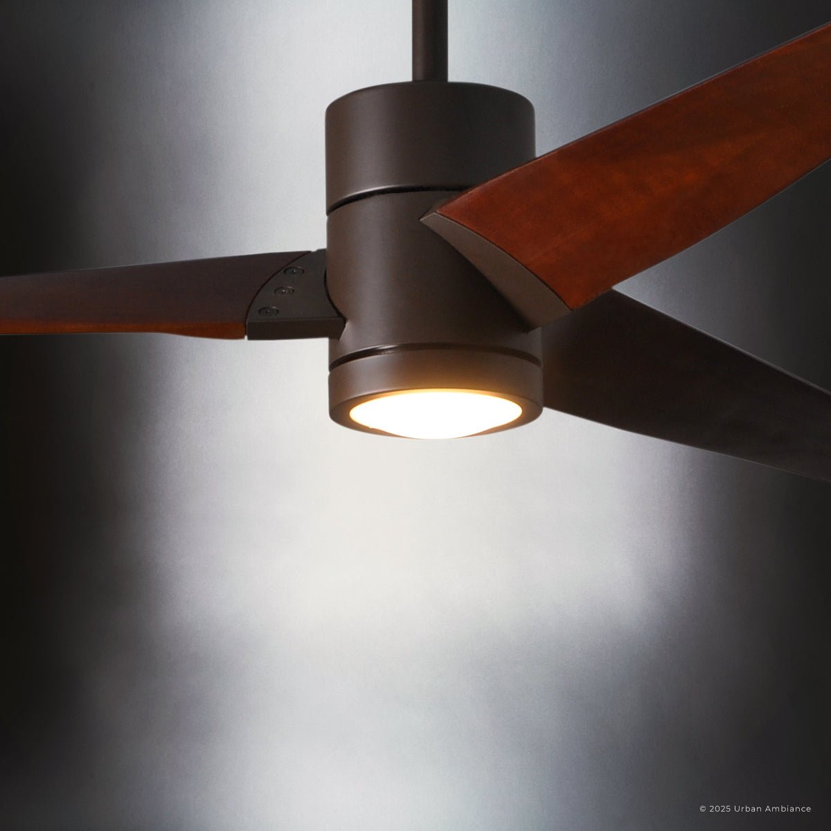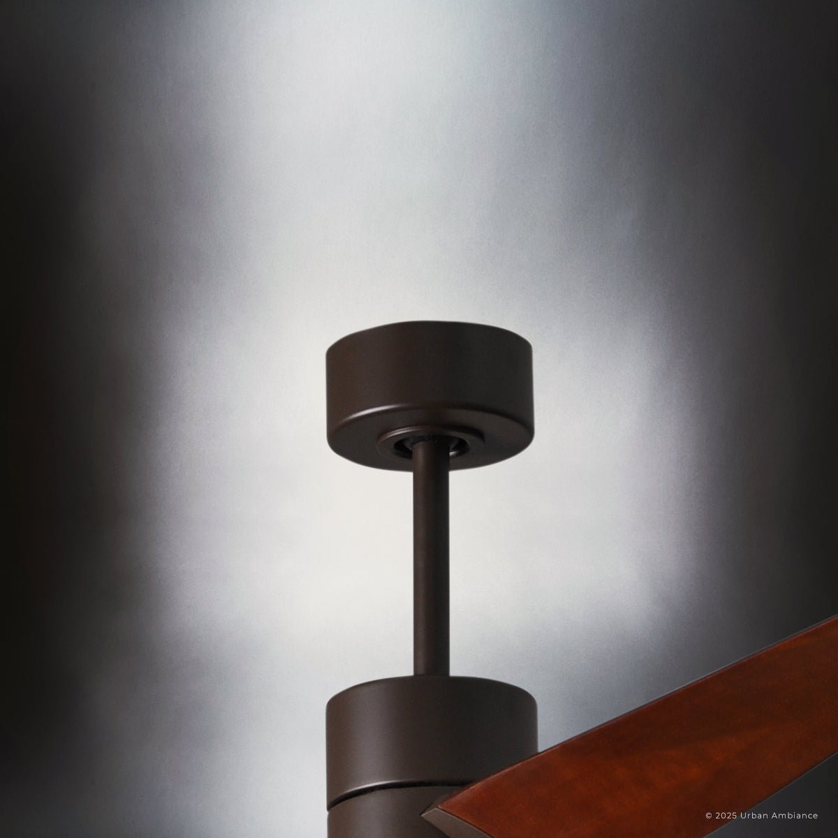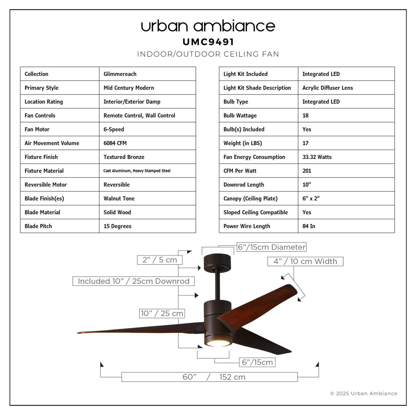UMC9491 Mid Century Modern Indoor/Outdoor Ceiling Fan, 12" (Plus Downrod) H x 60" W x 60" D, Textured Bronze Finish, Glimmereach Collection
