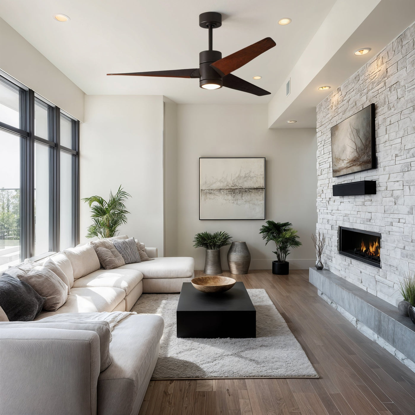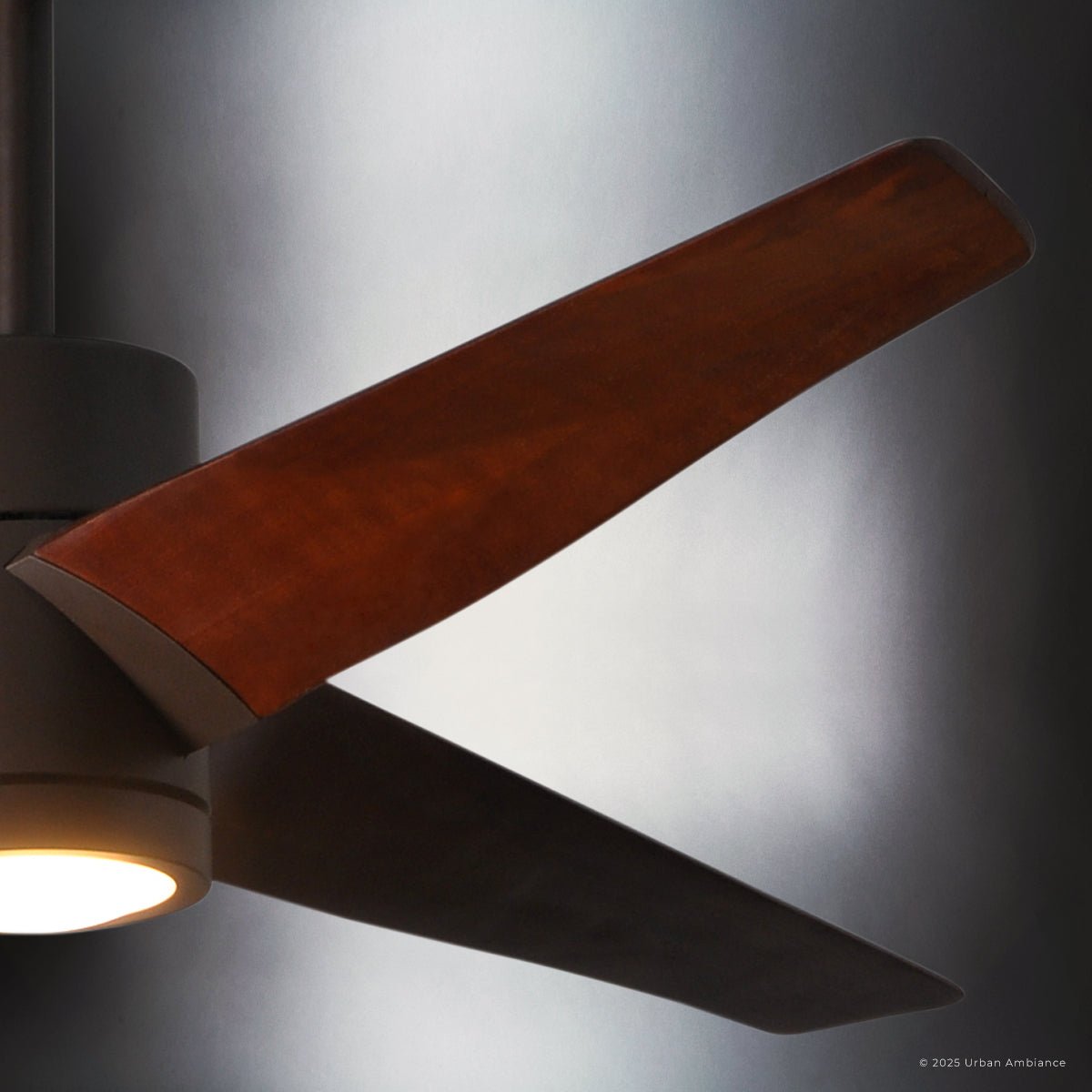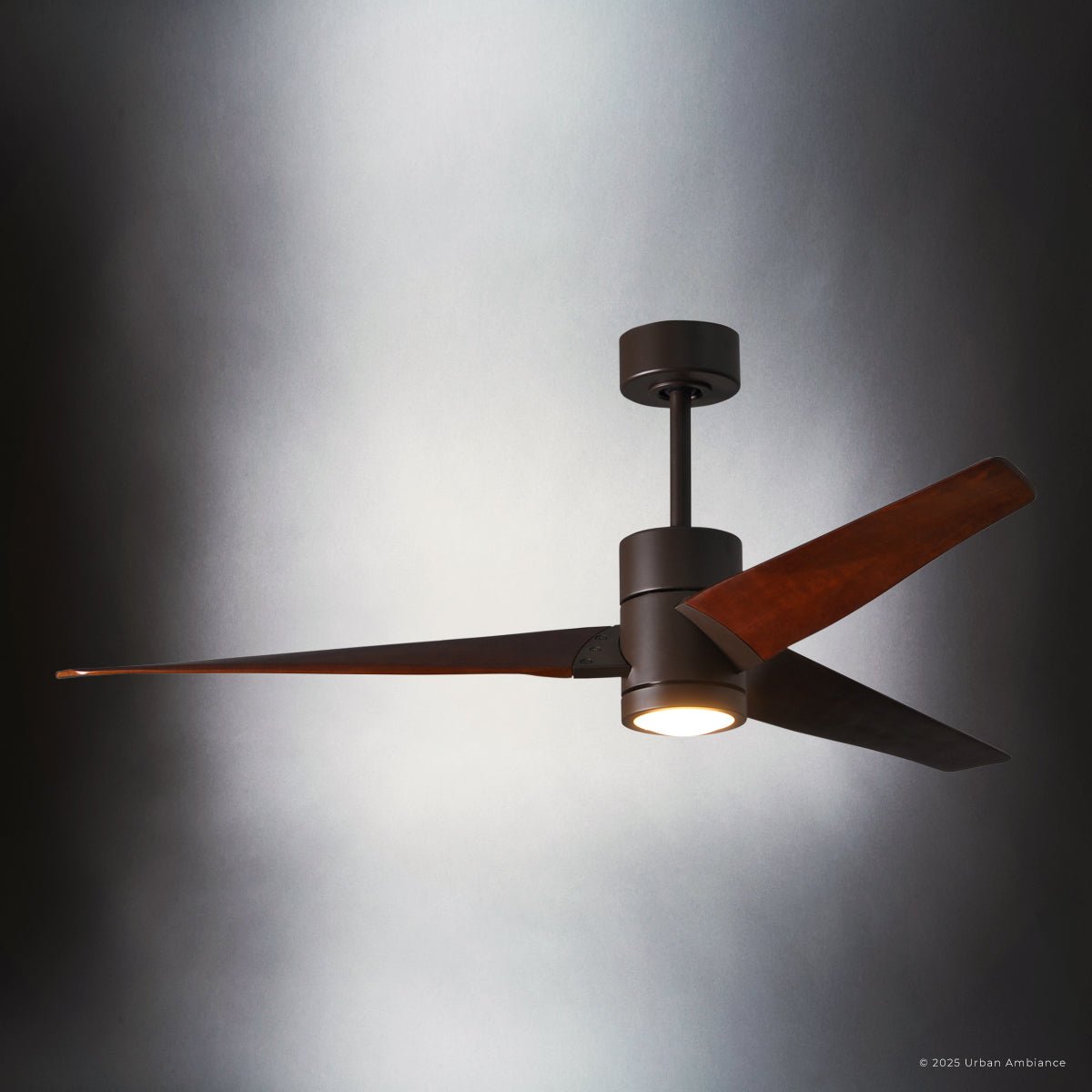 UMC9491 Mid Century Modern Indoor/Outdoor Ceiling Fan, 12" (Plus Downrod) H x 60" W x 60" D, Textured Bronze Finish, Glimmereach Collection