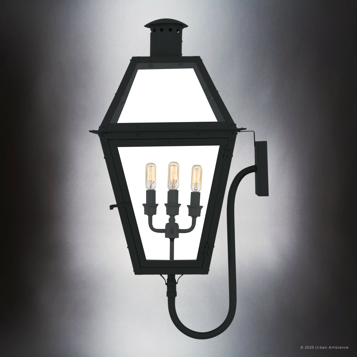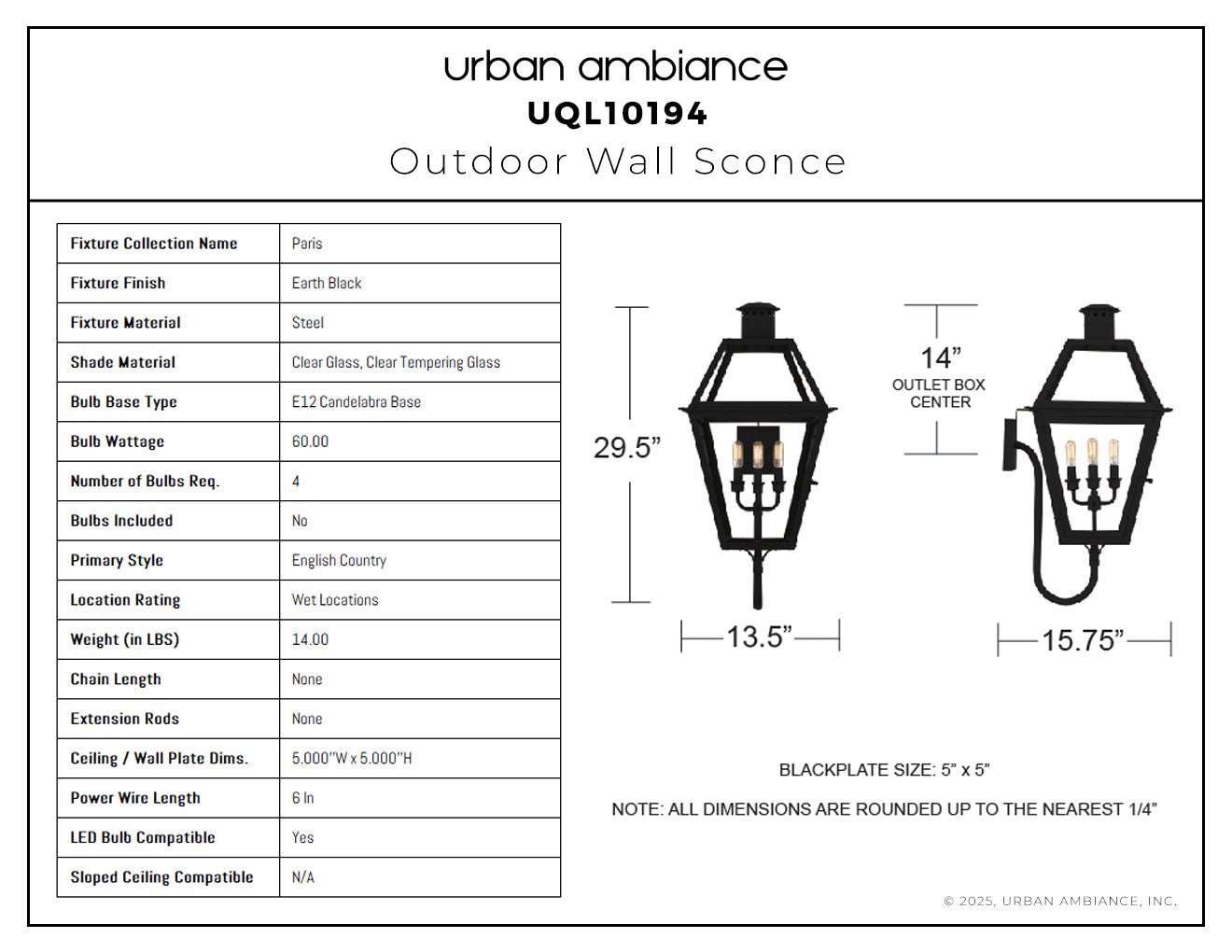 UQL10194 English Country Outdoor Wall Sconce, 29.50''H x 13.50''W x 15.75''Dep, Earth Black Finish, Paris Collection