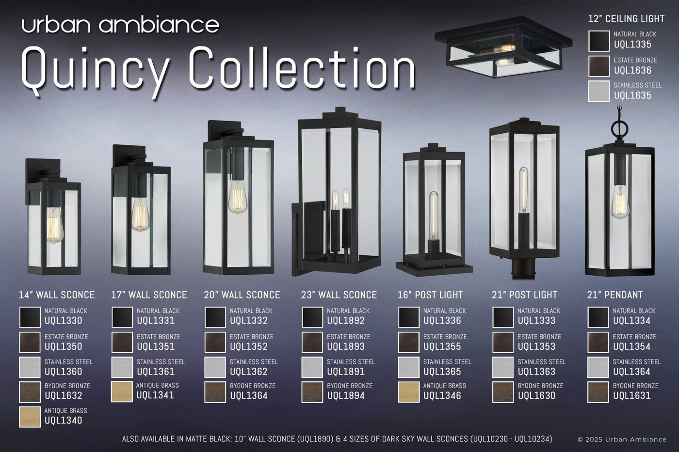 UQL1341 Farmhouse Outdoor Wall Light, 17"H x 6"W, Antique Brass, Quincy Collection