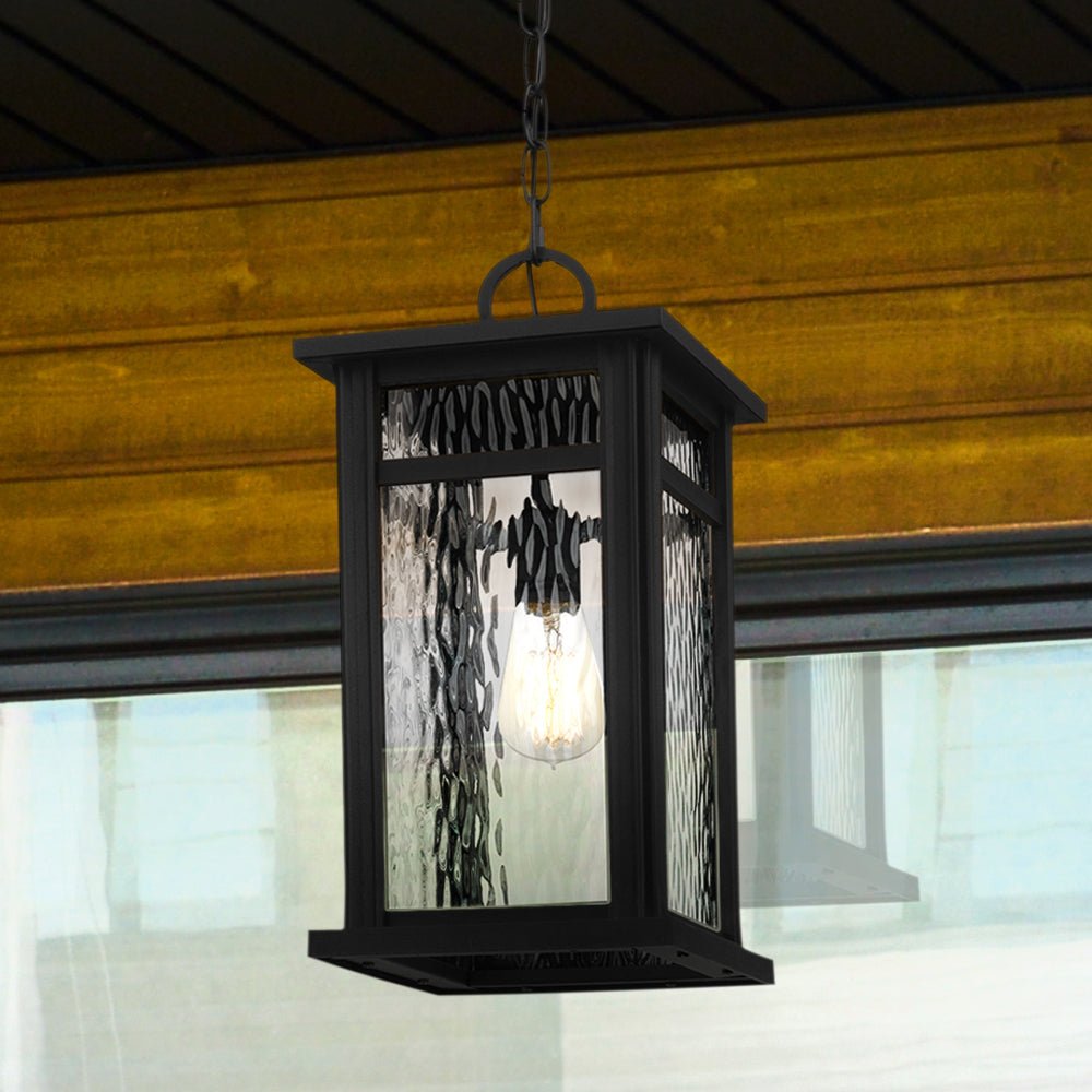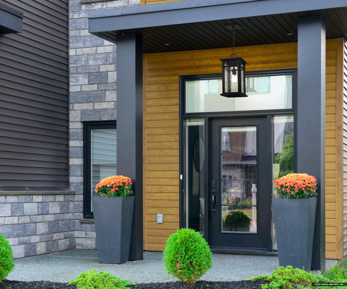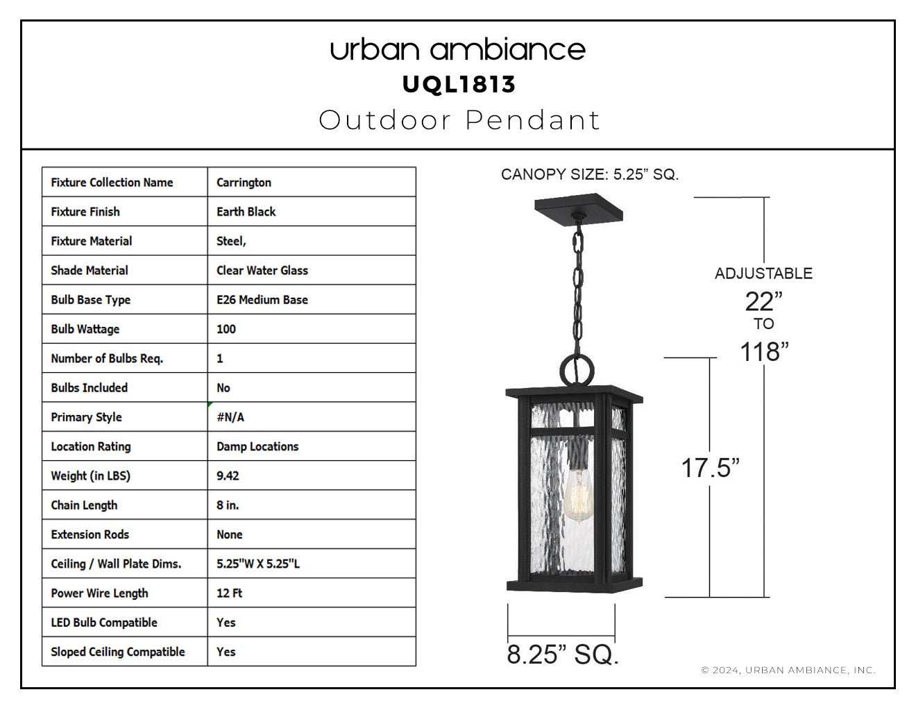 UQL1813 Modern Farmhouse Outdoor Pendant, 17.50''H x 8.25''W x 8.25''D, Earth Black Finish, Carrington Collection