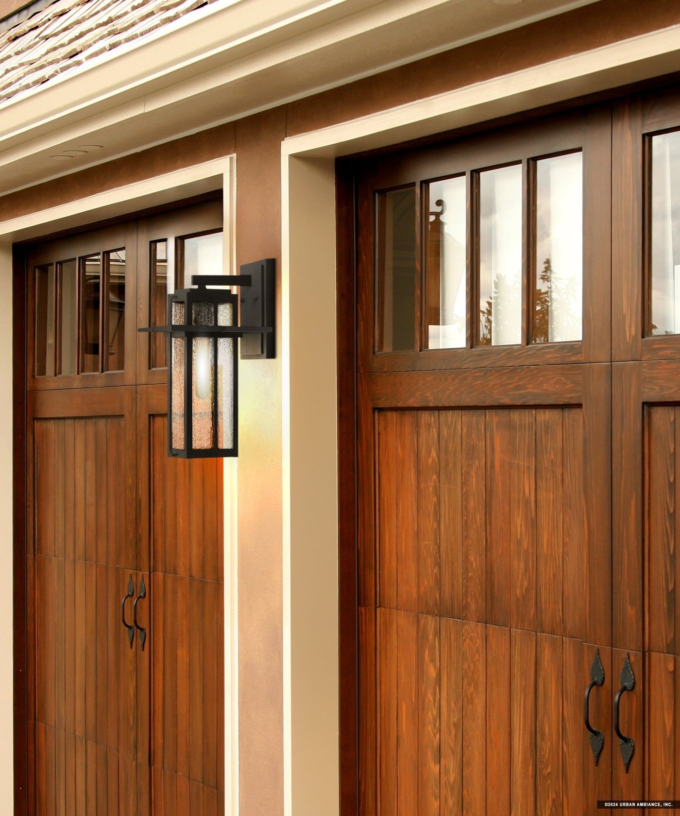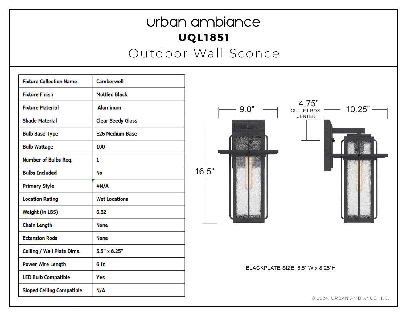 UQL1851 Craftsman Outdoor Wall Sconce, 16.50''H x 9.00''W x 10.25''D, Mottled Black Finish, Camberwell Collection