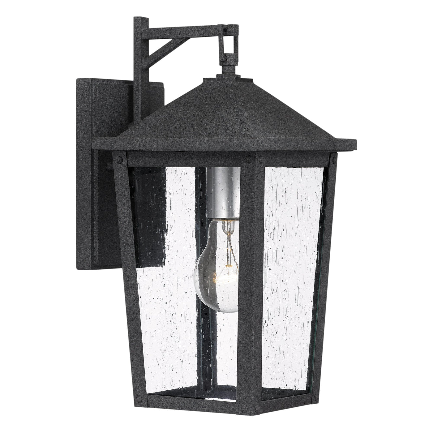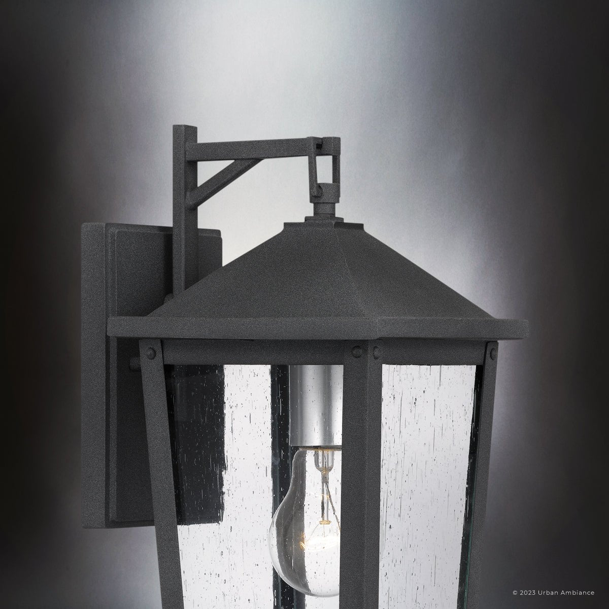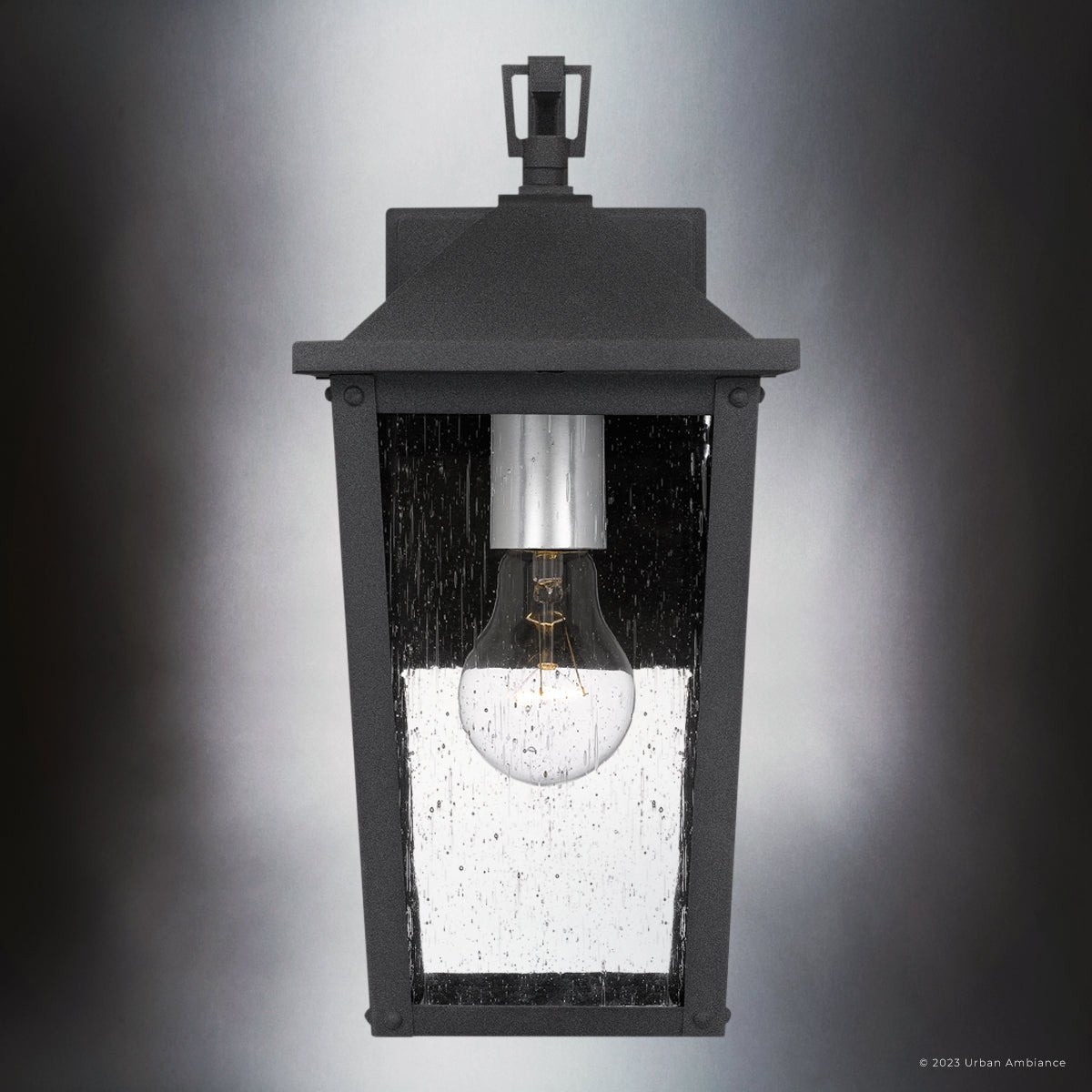 UQL1872 Modern Rustic Outdoor Wall Sconce, 13.25''H x 6.50''W x 7.75''D, Mottled Black Finish, Elmwood Collection
