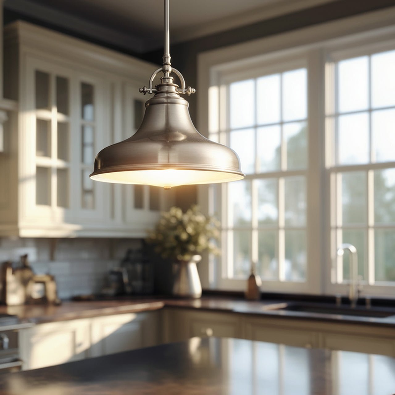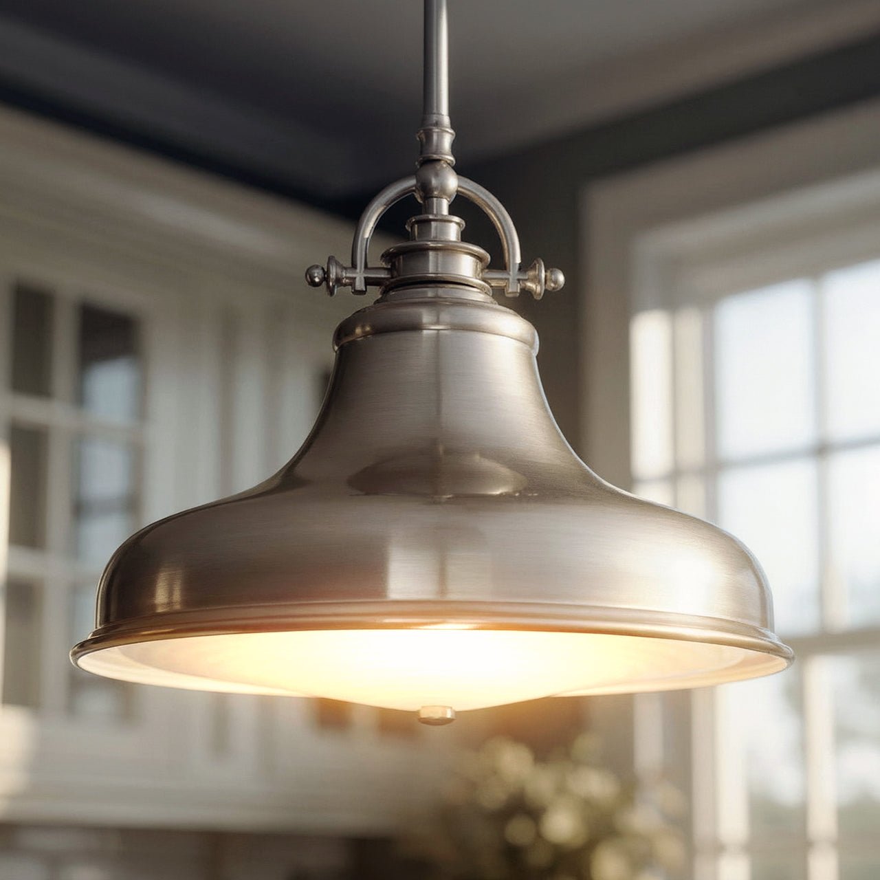 UQL2286 Industrial Hanging Pendant Light, 11.5"H x 13.5"W, Brushed Nickel Finish, Sonoma Collection