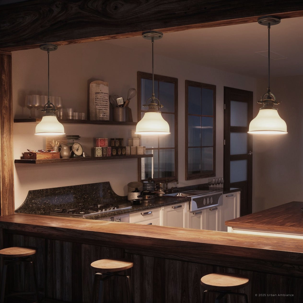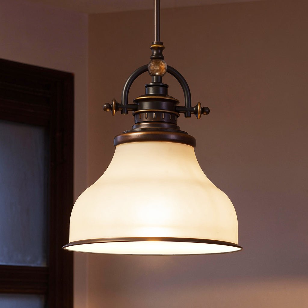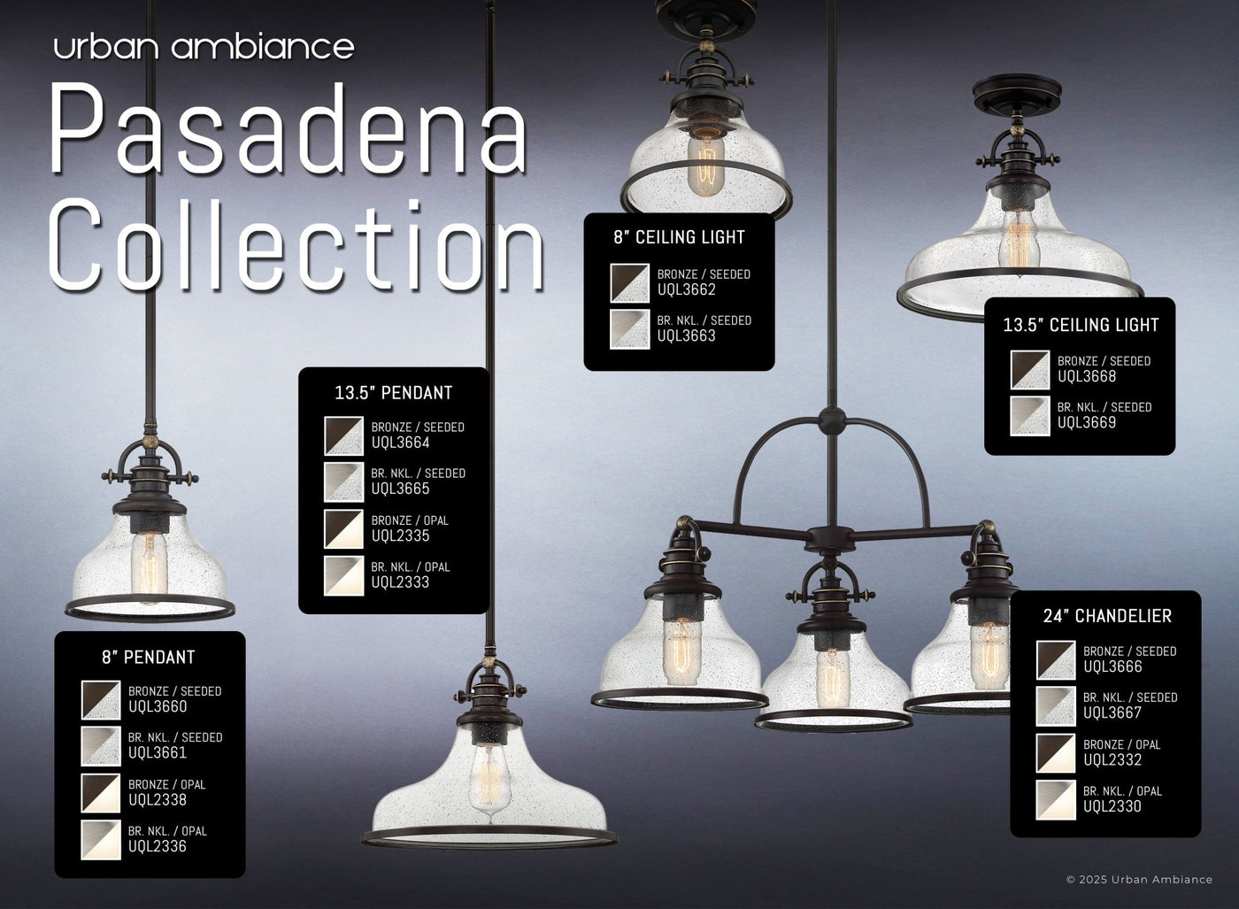 UQL2338 Industrial Pendant Light, 9.5"H x 8"W, Parisian Bronze Finish, Pasadena Collection