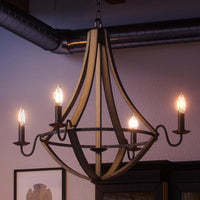 UQL2961 XXL Farmhouse Chandelier, 34.75"H x 32.5"W, Wood Grain Metal with Antique Black Finish, Swansea Collection