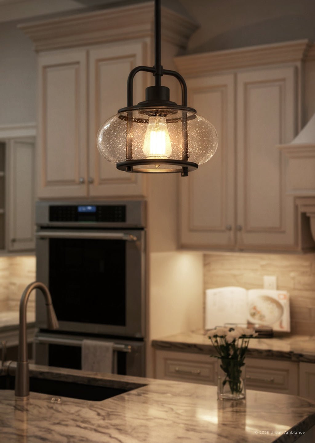 UQL3331 Utilitarian Pendant Light, 9.5"H x 10"W, Dark Bronze Finish, Clearwater Collection