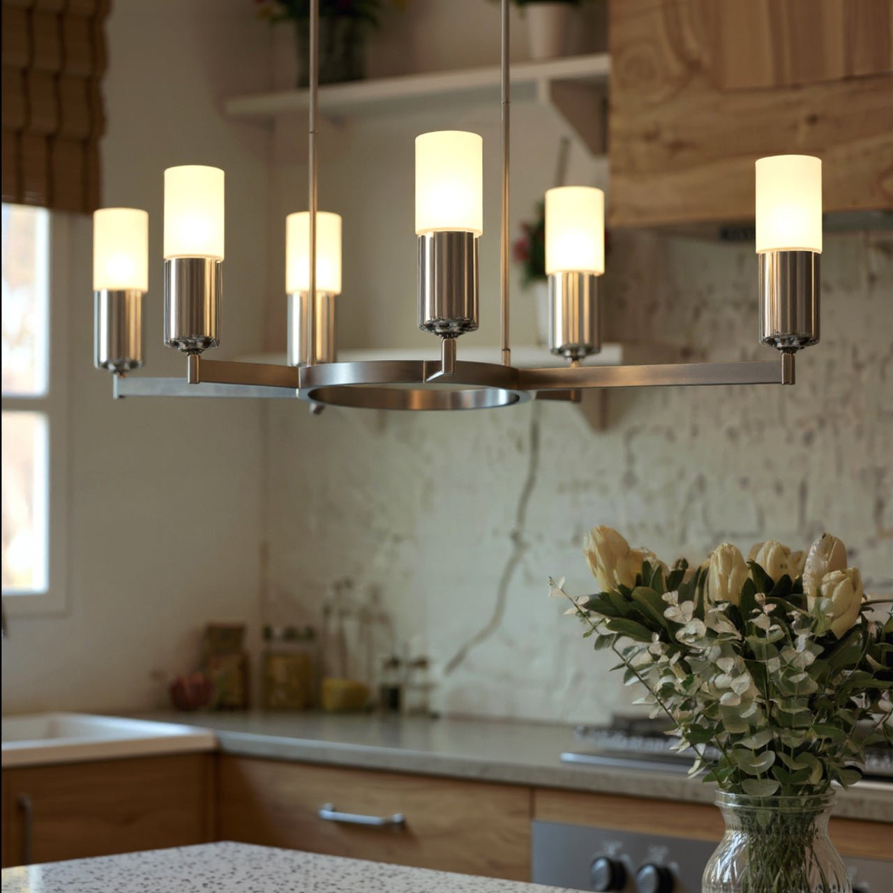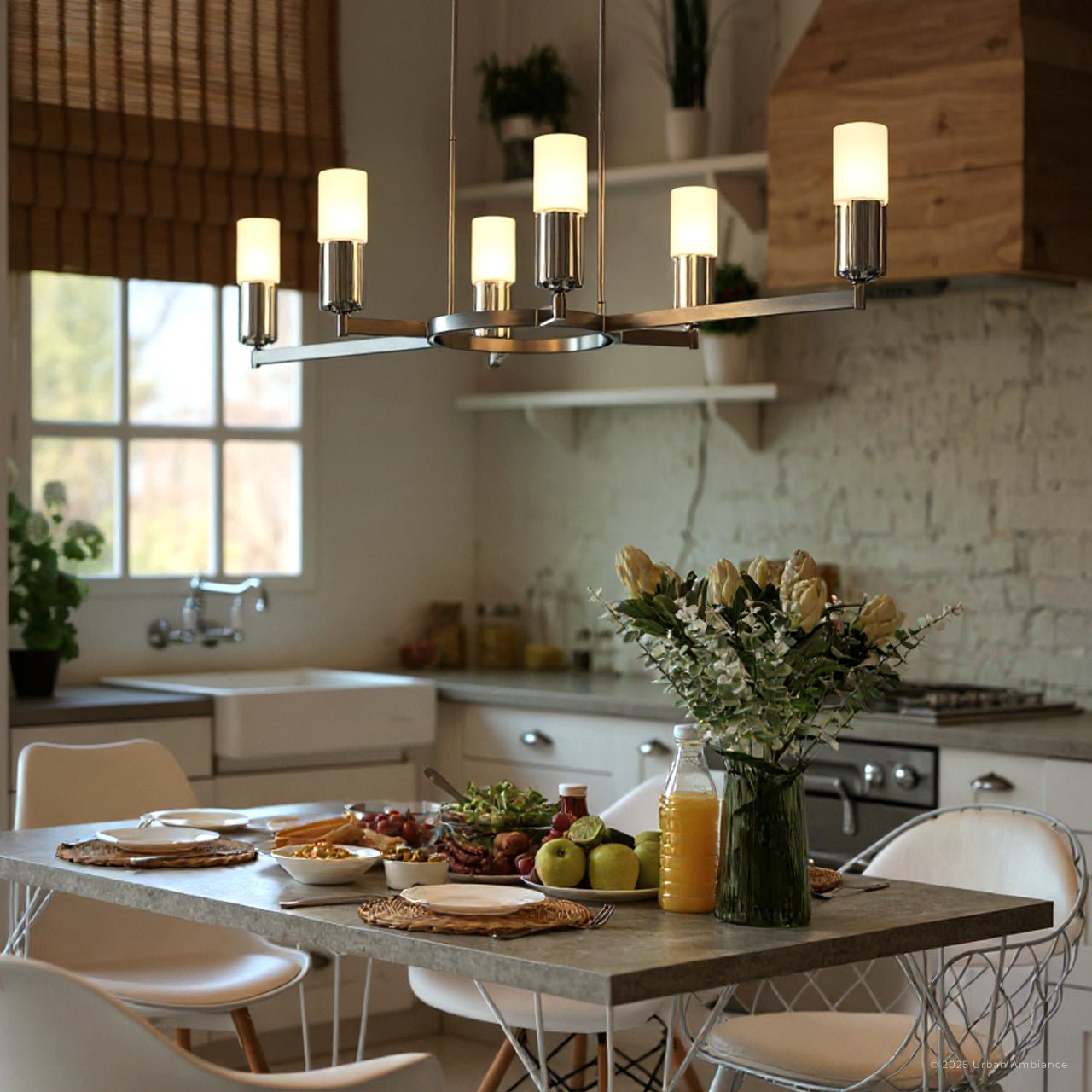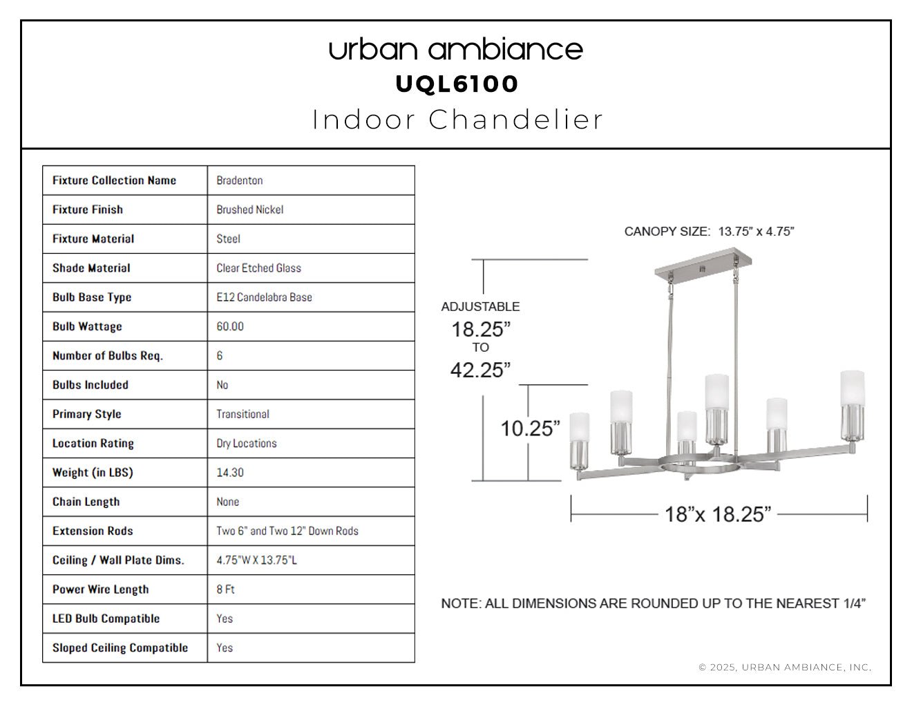 UQL6100 Transitional Indoor Chandelier, 10.25''H x 48.00''W x 18.25''Dep, Brushed Nickel Finish, Bradenton Collection