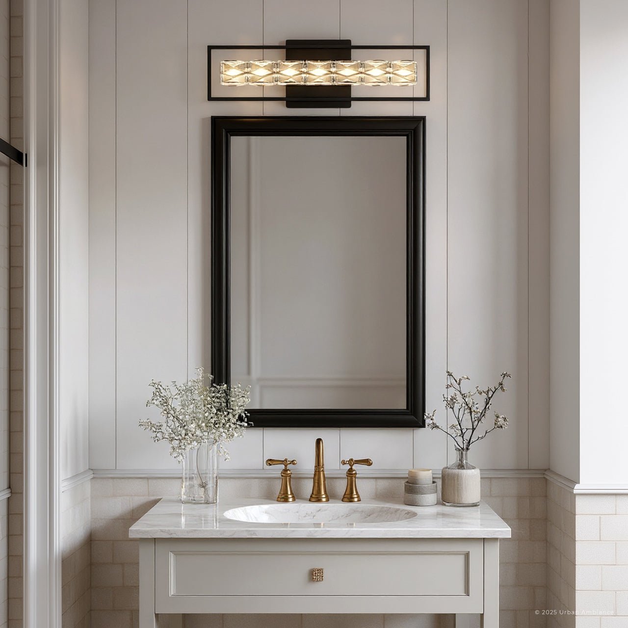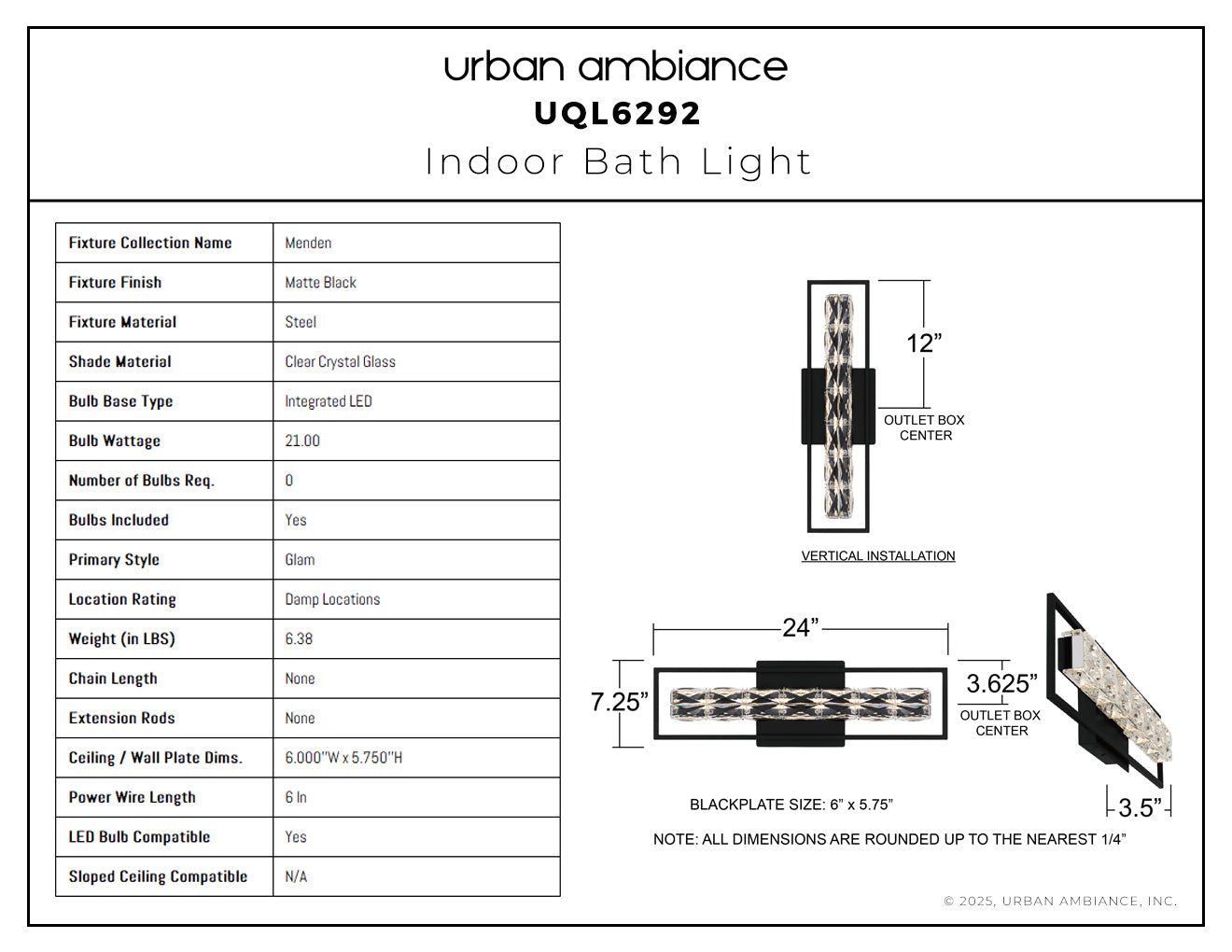 UQL6292 Glam Indoor Bath Light, 7.25''H x 24.00''W x 3.50''Dep, Matte Black Finish, Menden Collection