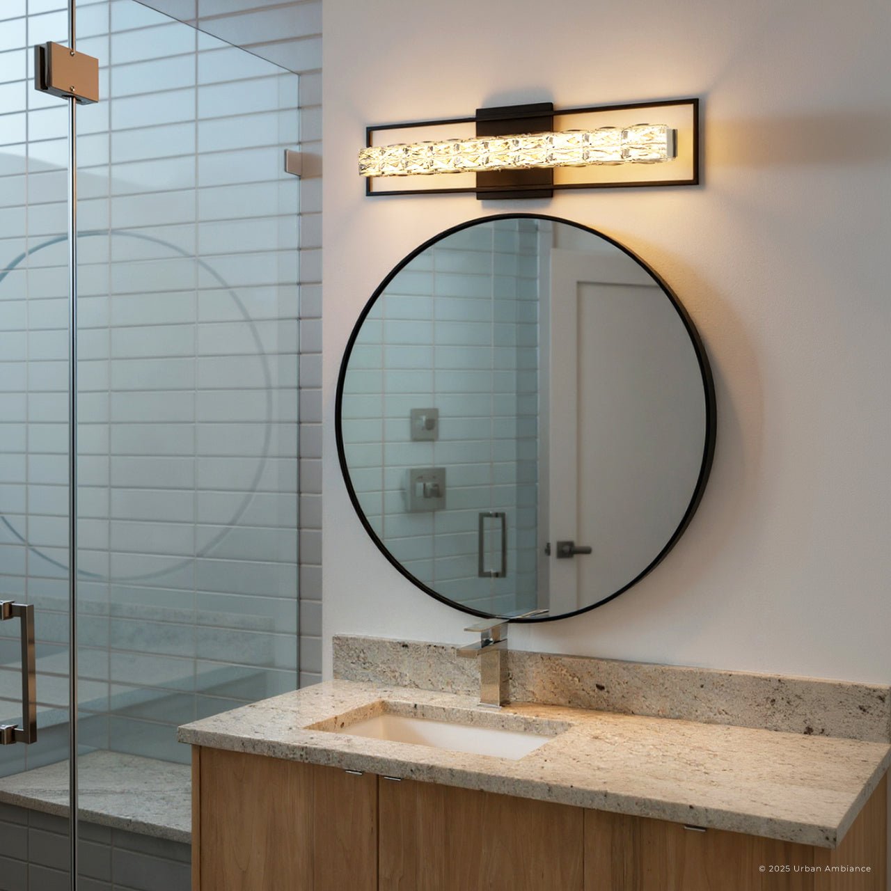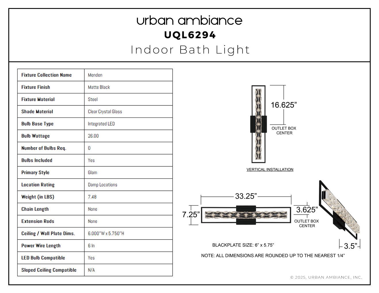 UQL6294 Glam Indoor Bath Light, 7.25''H x 33.25''W x 3.50''Dep, Matte Black Finish, Menden Collection