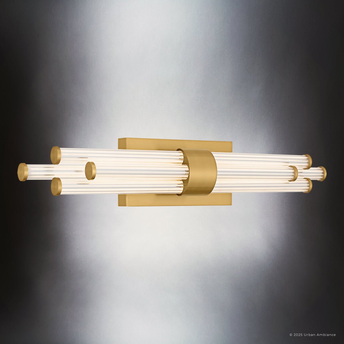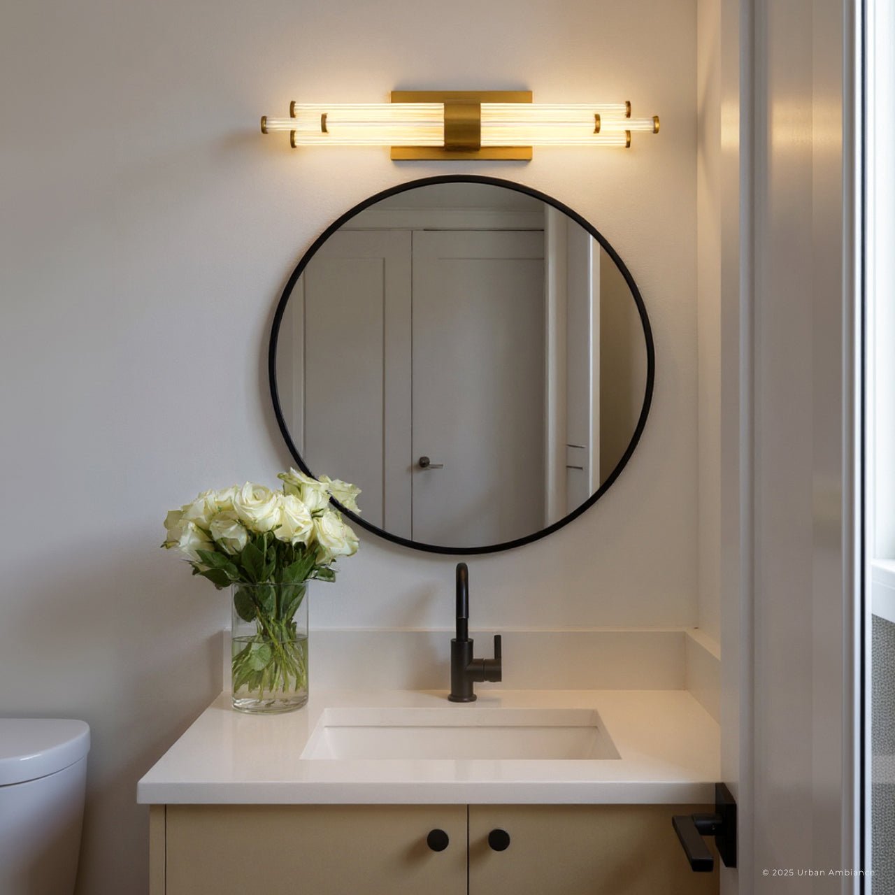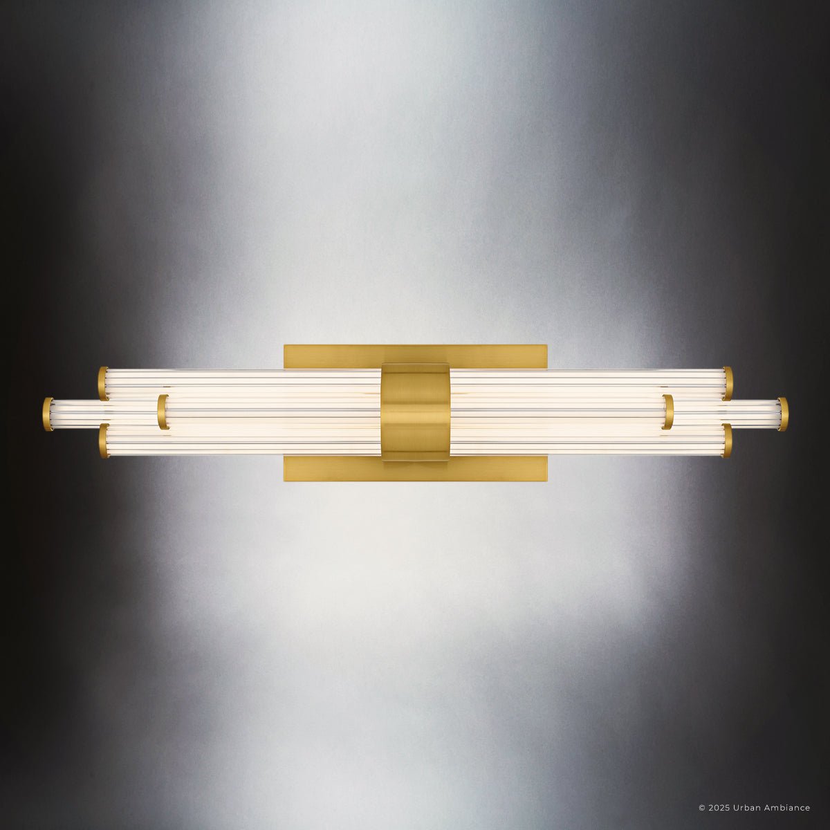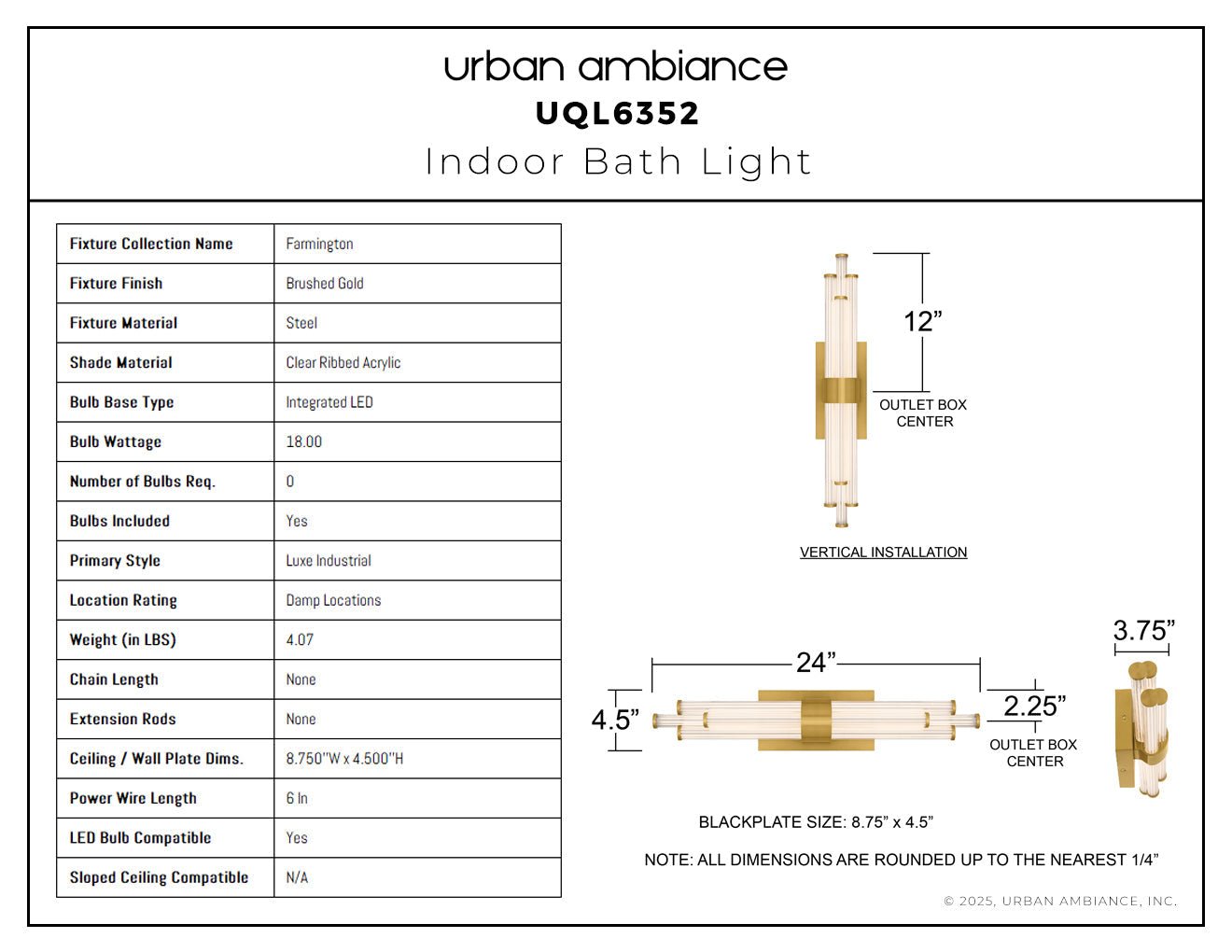 UQL6352 Luxe Industrial Indoor Bath Light, 4.50''H x 24.00''W x 3.75''Dep, Brushed Gold Finish, Farmington Collection