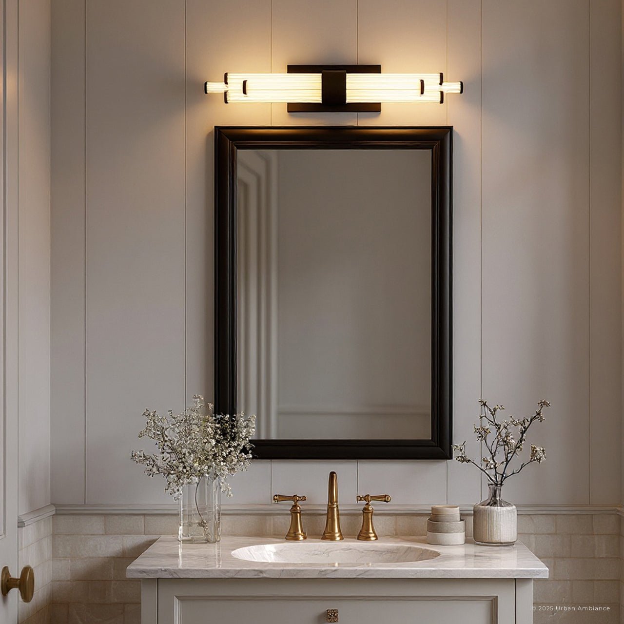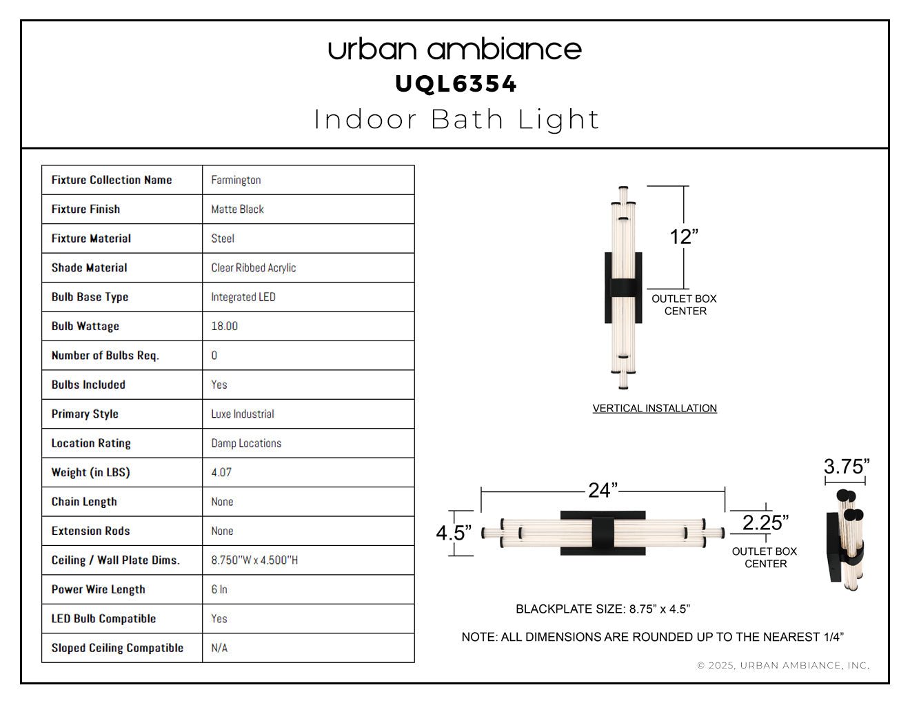 UQL6354 Luxe Industrial Indoor Bath Light, 4.50''H x 24.00''W x 3.75''Dep, Matte Black Finish, Farmington Collection