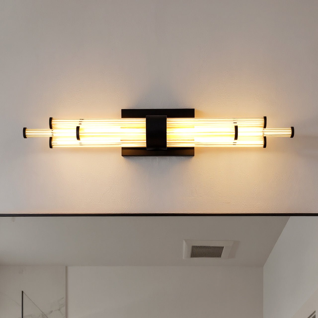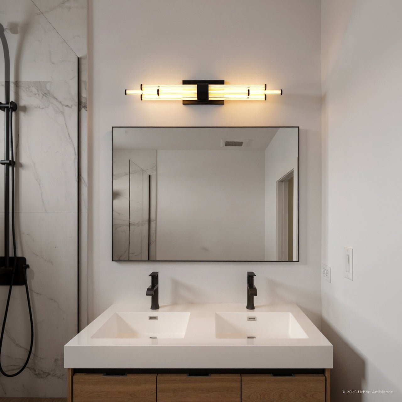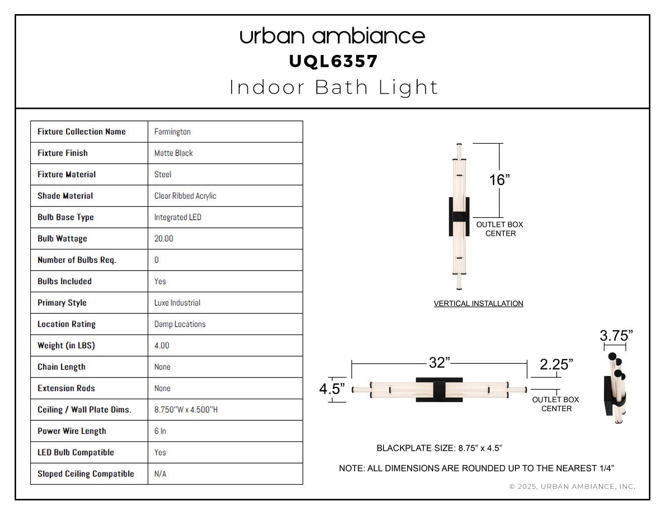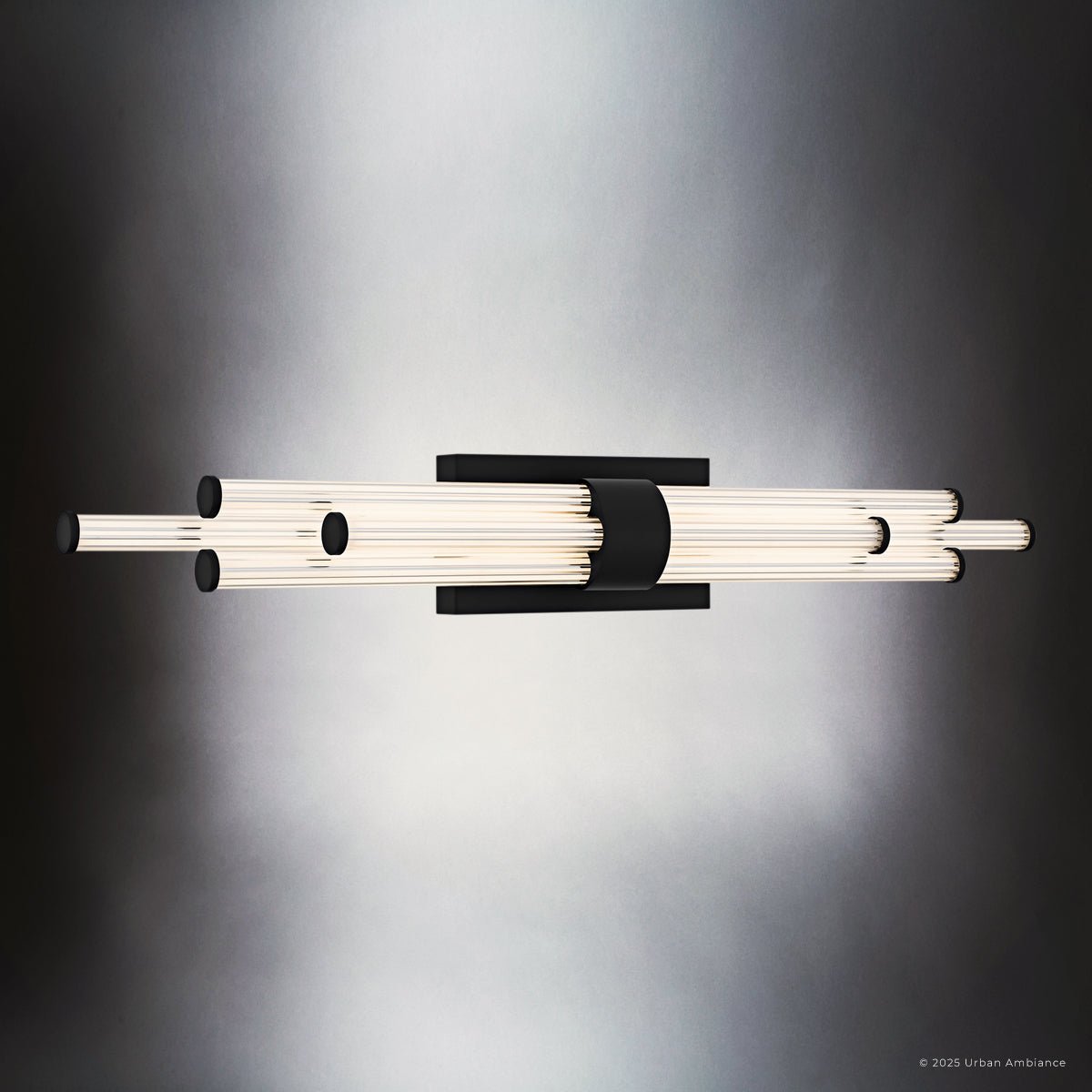 UQL6357 Luxe Industrial Indoor Bath Light, 4.50''H x 32.00''W x 3.75''Dep, Matte Black Finish, Farmington Collection