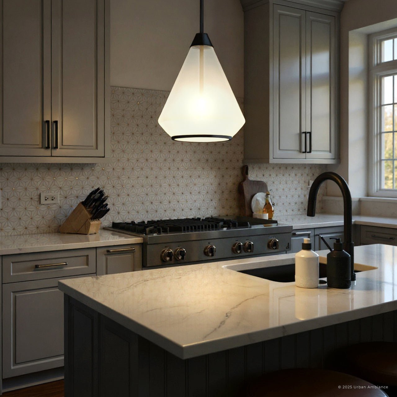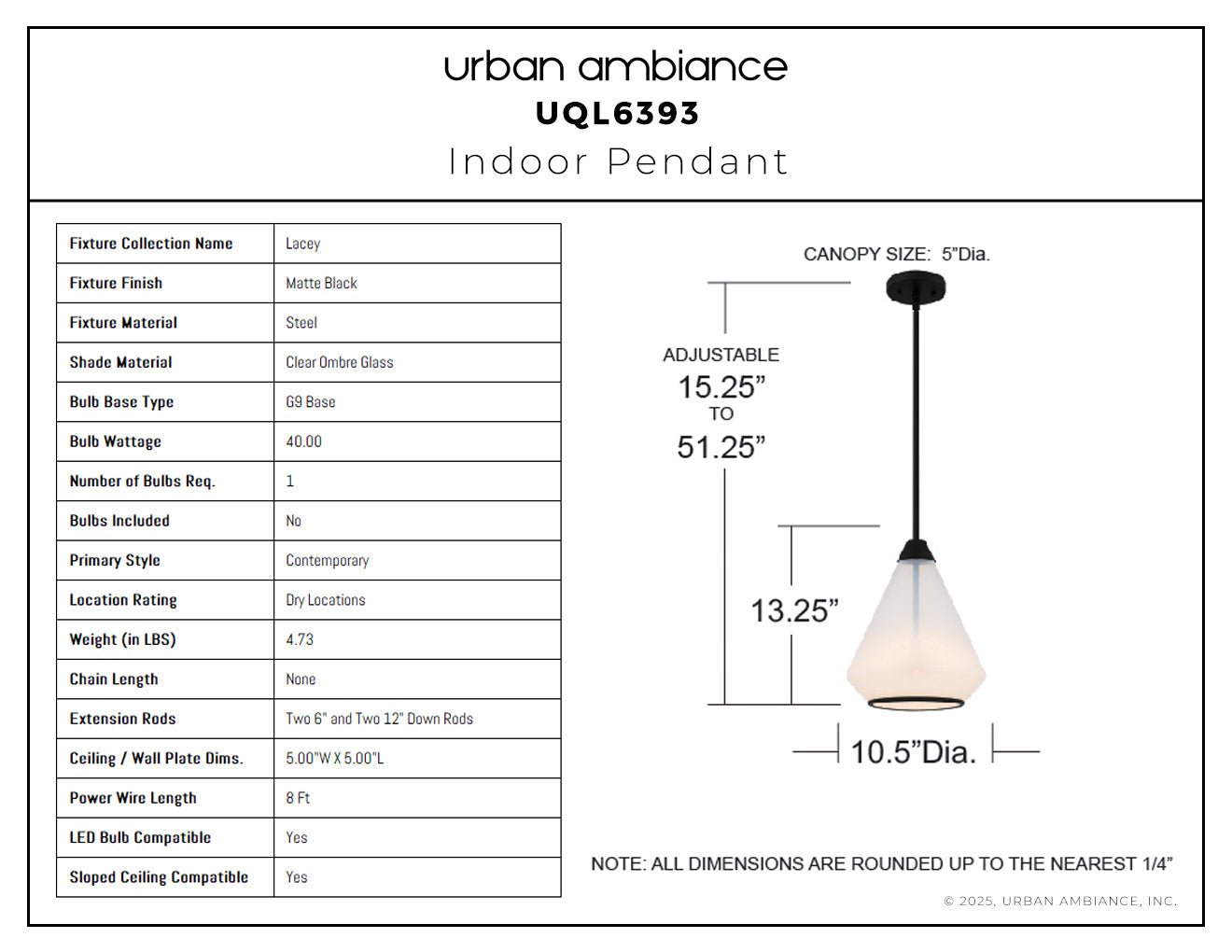 UQL6393 Contemporary Indoor Pendant, 13.25''H x 10.50''W x 10.50''Dep, Matte Black Finish, Lacey Collection